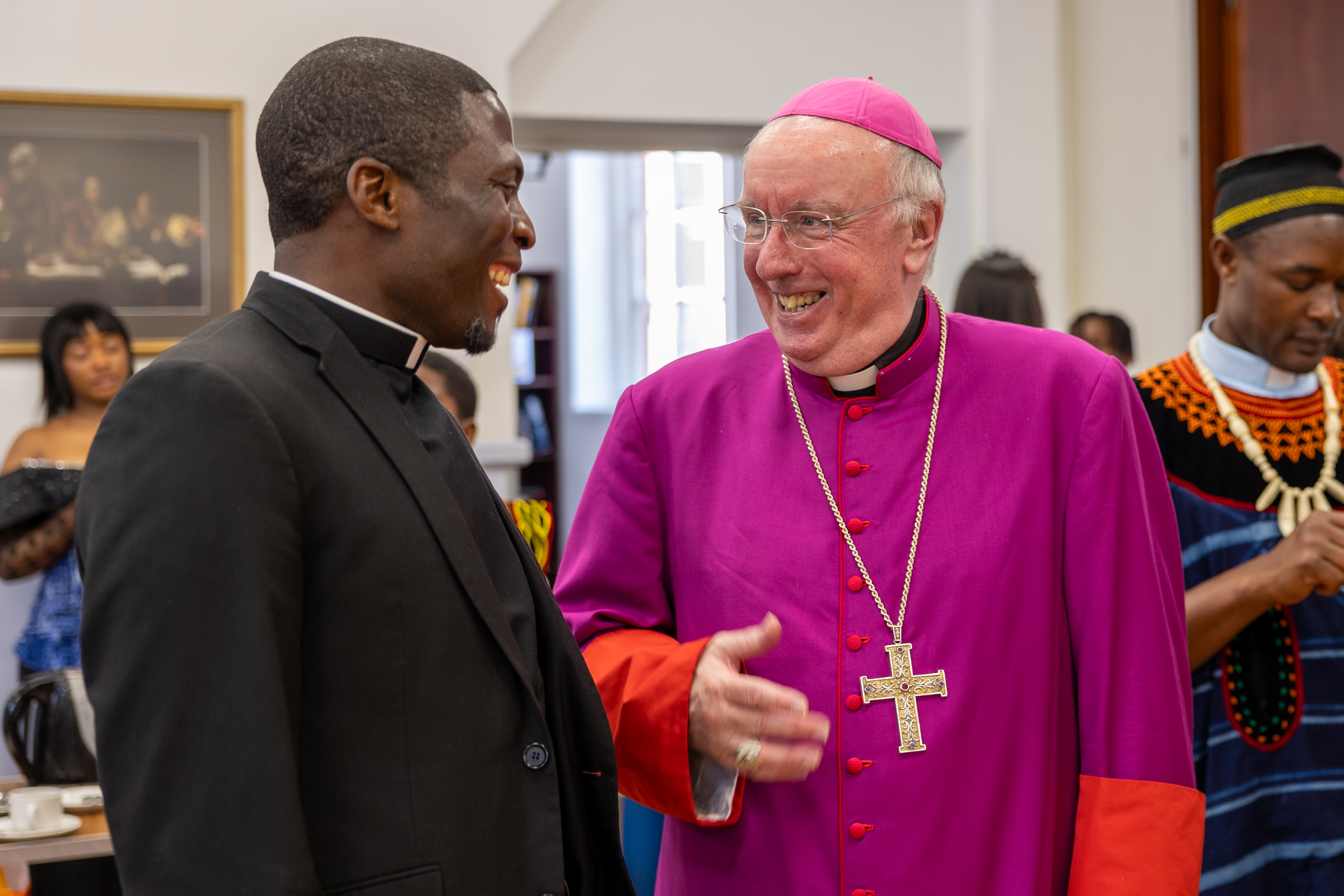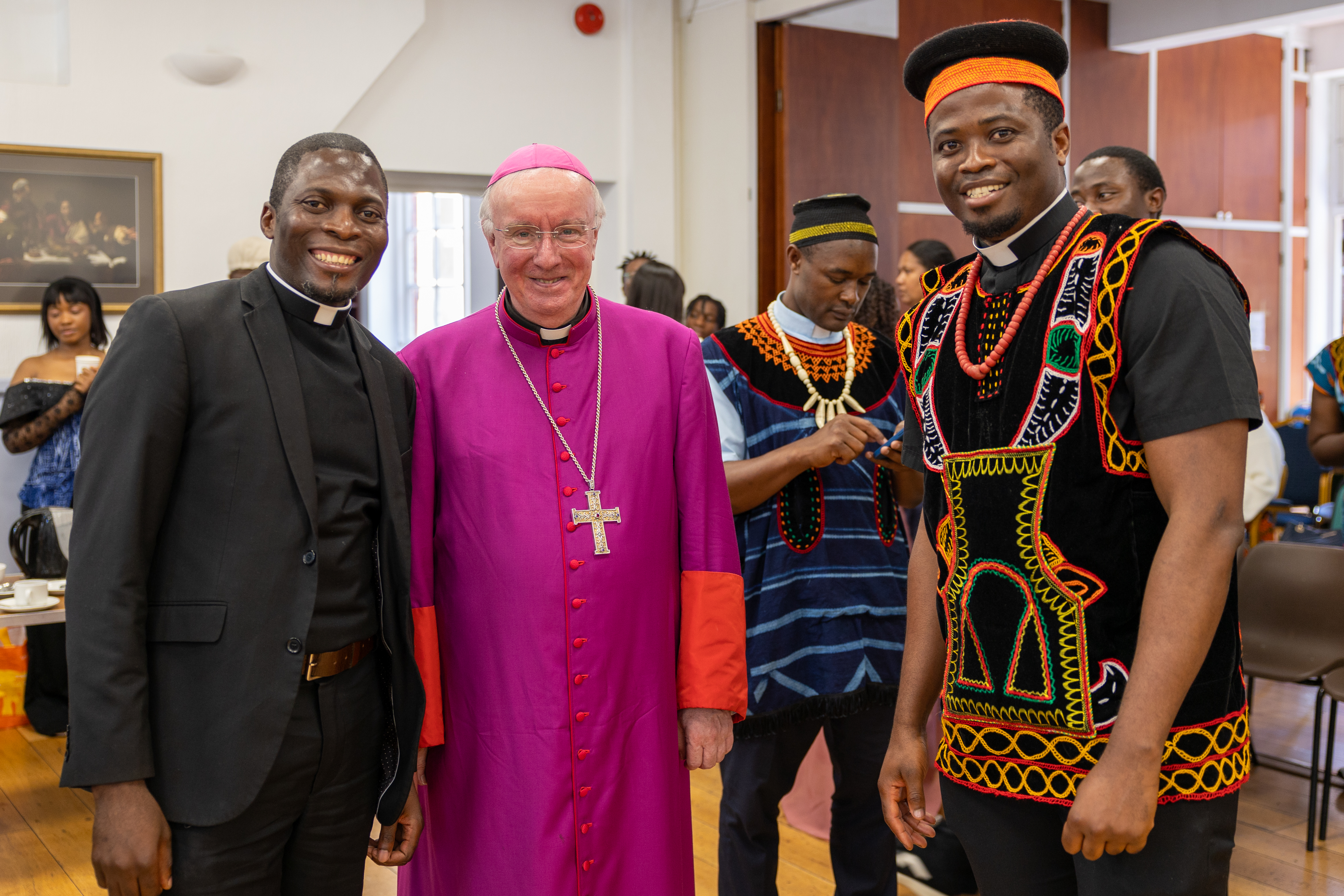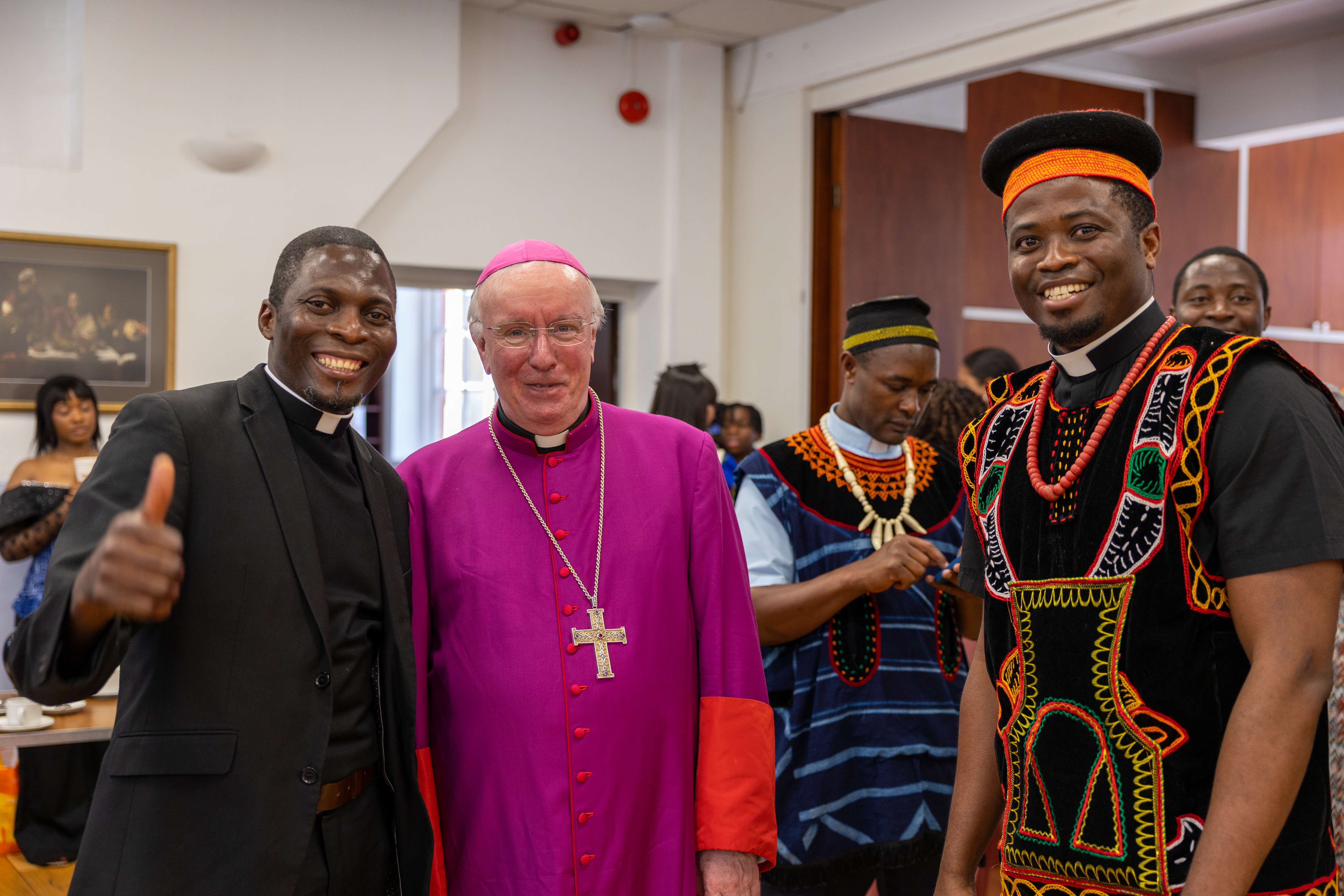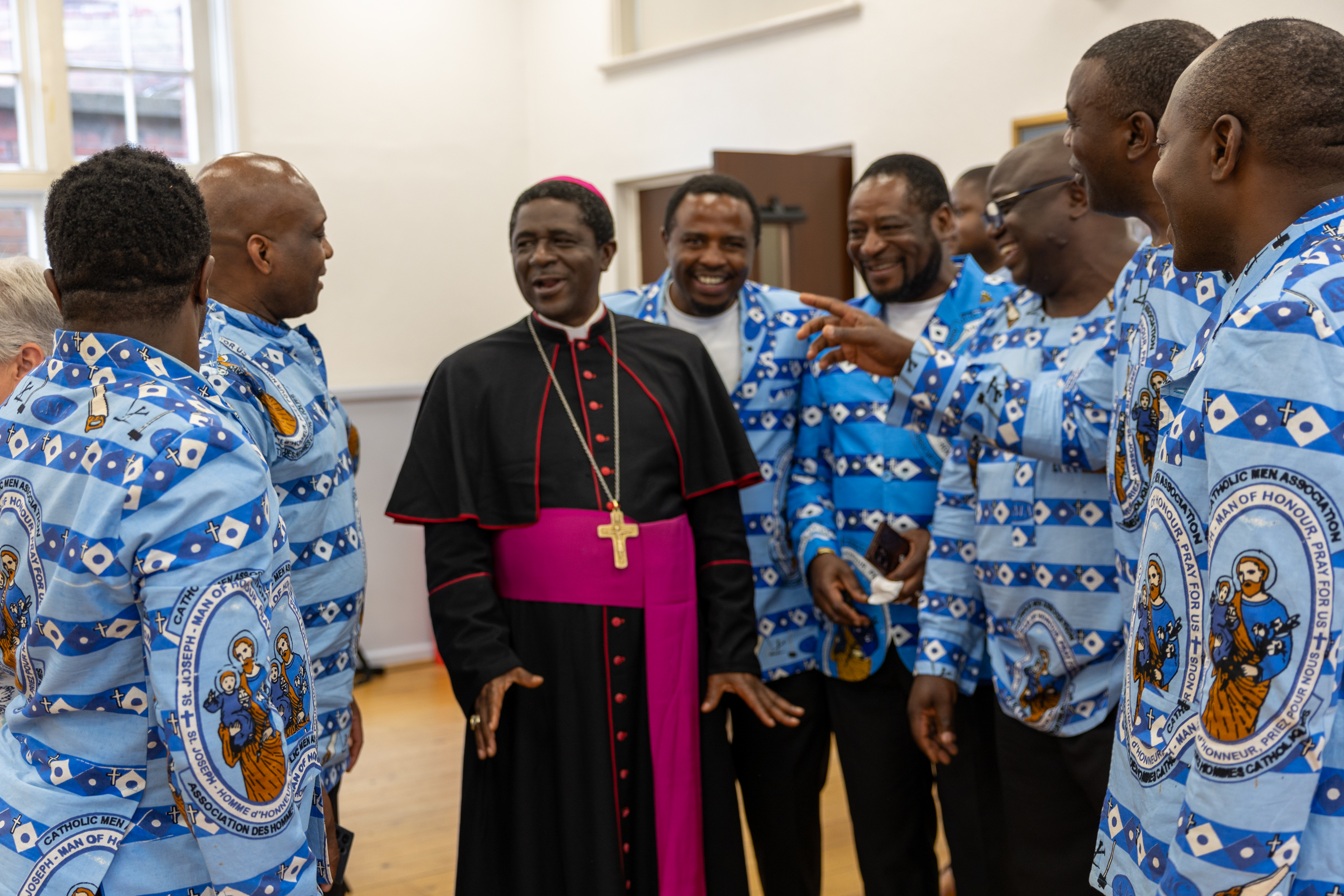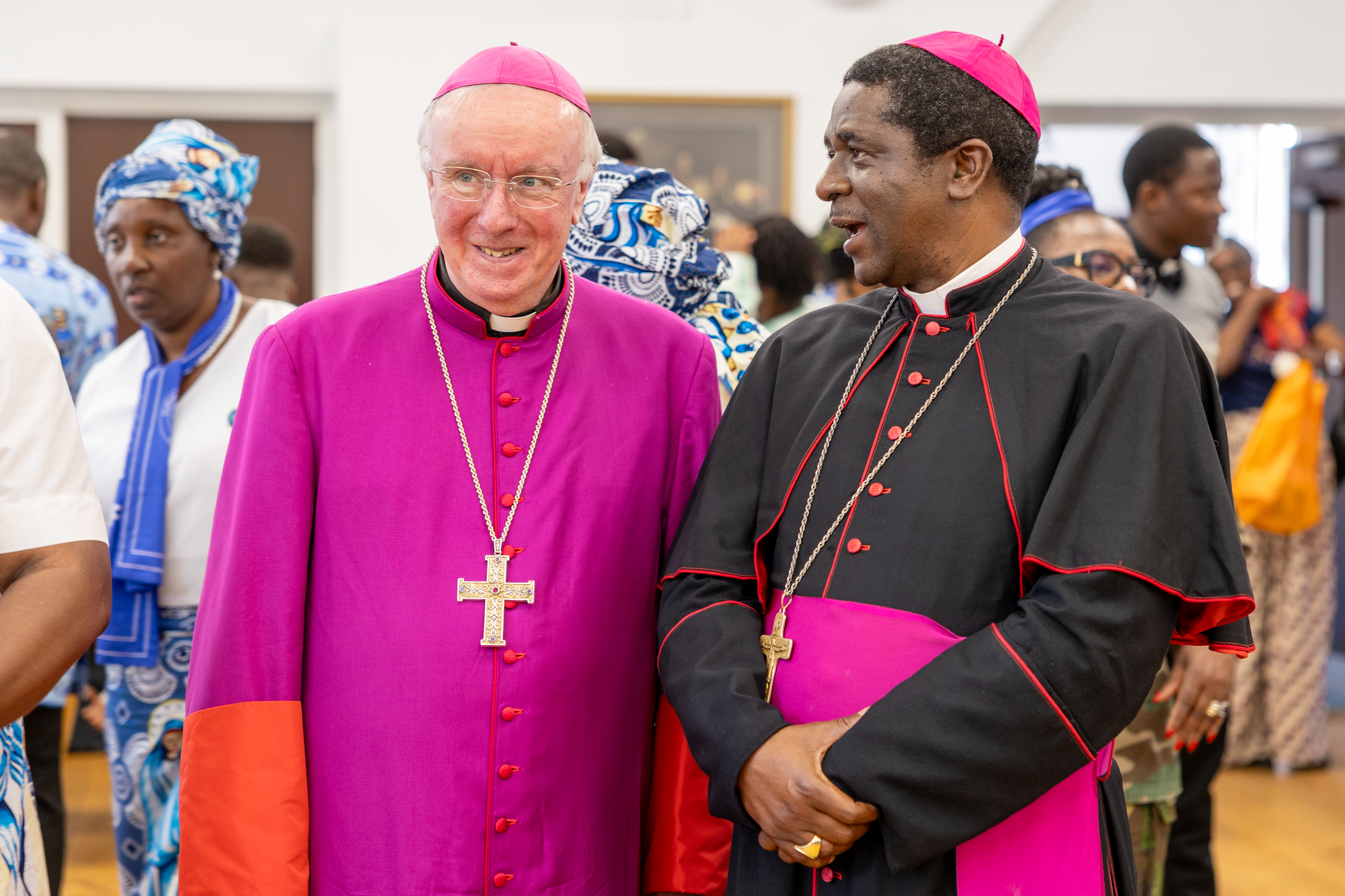 On Saturday, Bishop Philip welcomed Archbishop Andrew Nkea of Bamenda and Fr Bernardine Nsom to celebrate the Golden Jubilee Link between the Diocese of Portsmouth and the Archdiocese of Bamenda. Father Ron Hishon and Father Peter Codd attended the celebrations. They were the first missionary priests from Portsmouth who went out to Bamenda in the 1970's to spread the Gospel along with Father Frank Isherwood (RIP). Many Cameroonians from across the Diocese joined in the joyful and colourful celebration of singing, dancing, drumming whilst enjoying its delicious food.