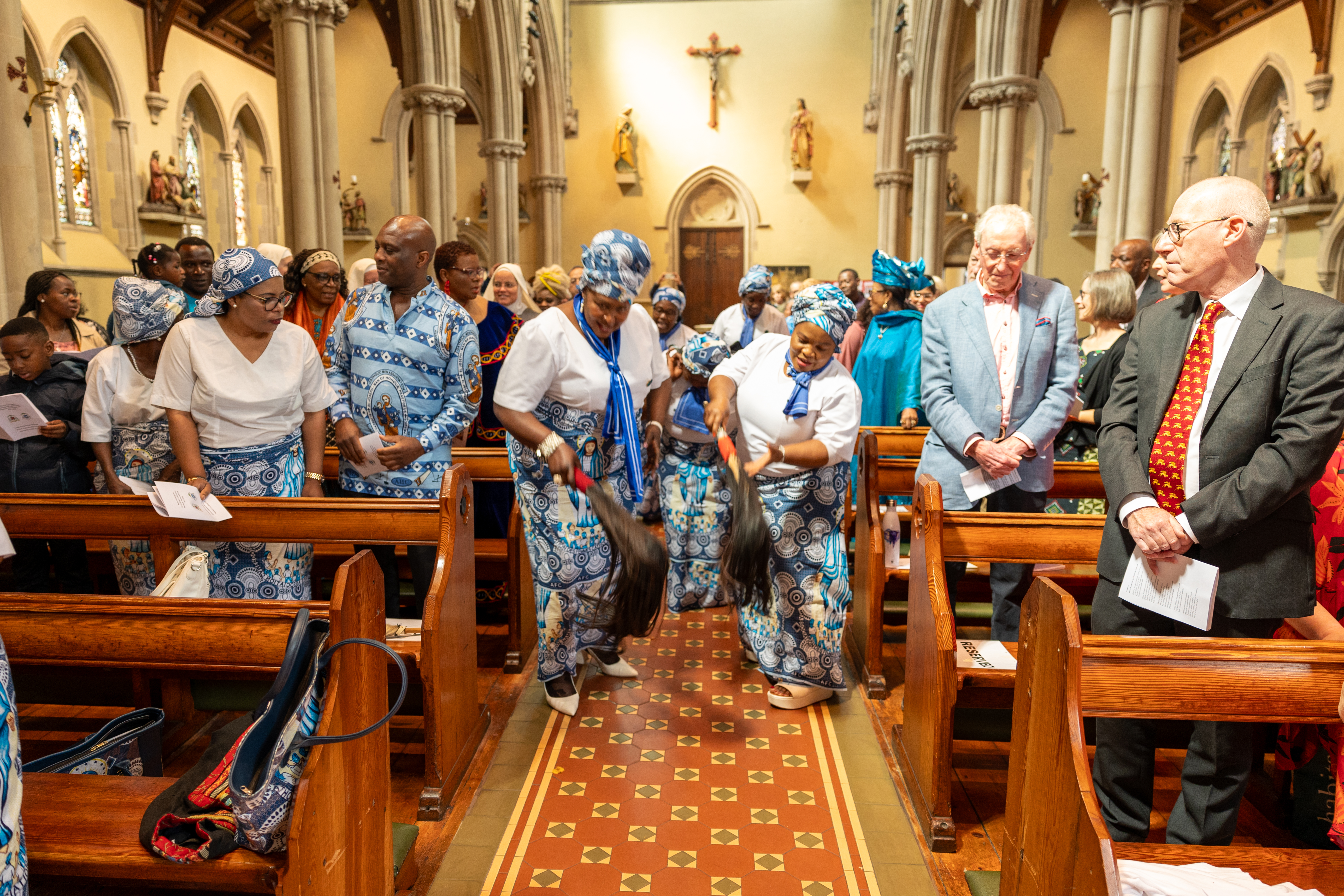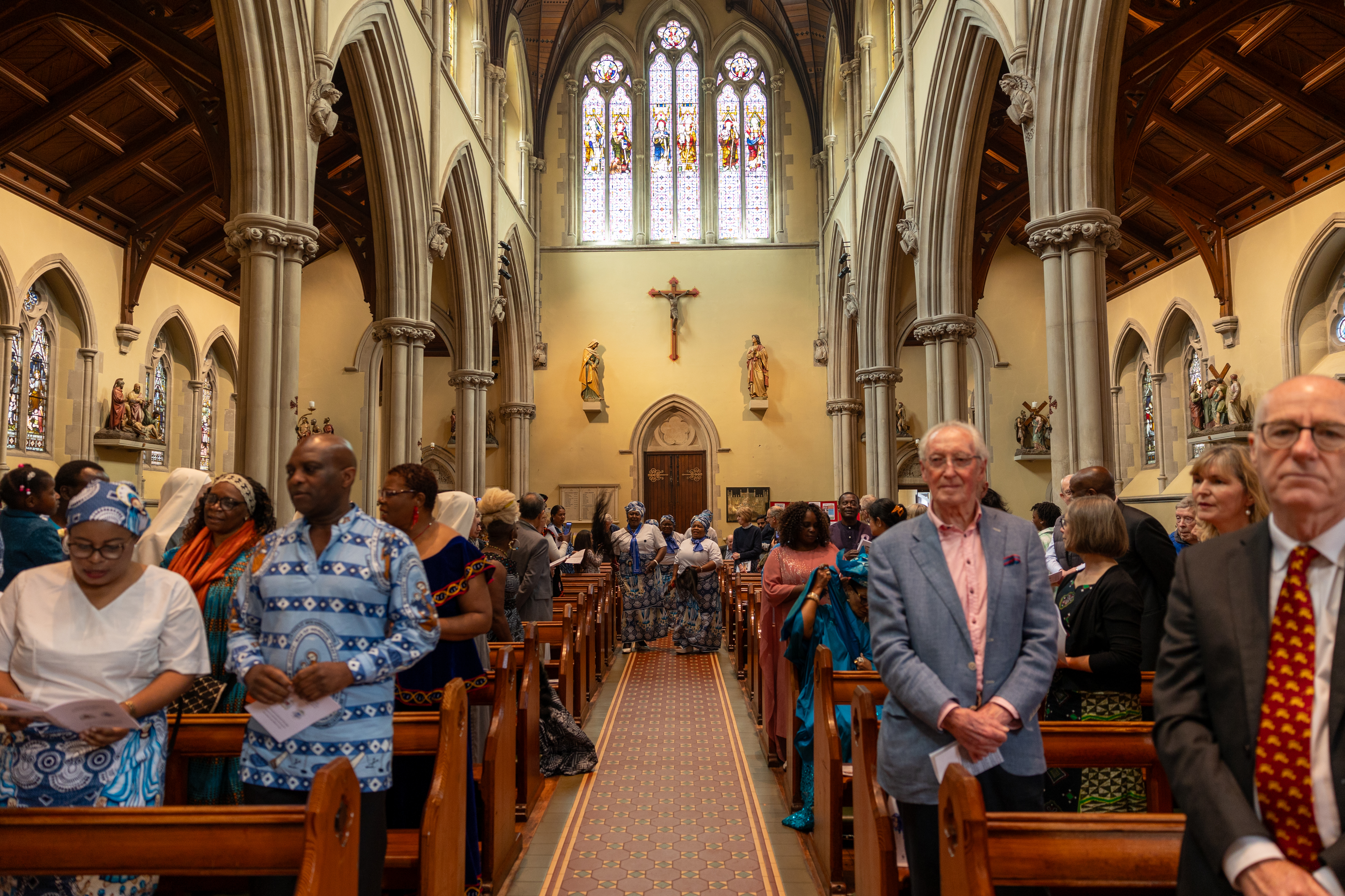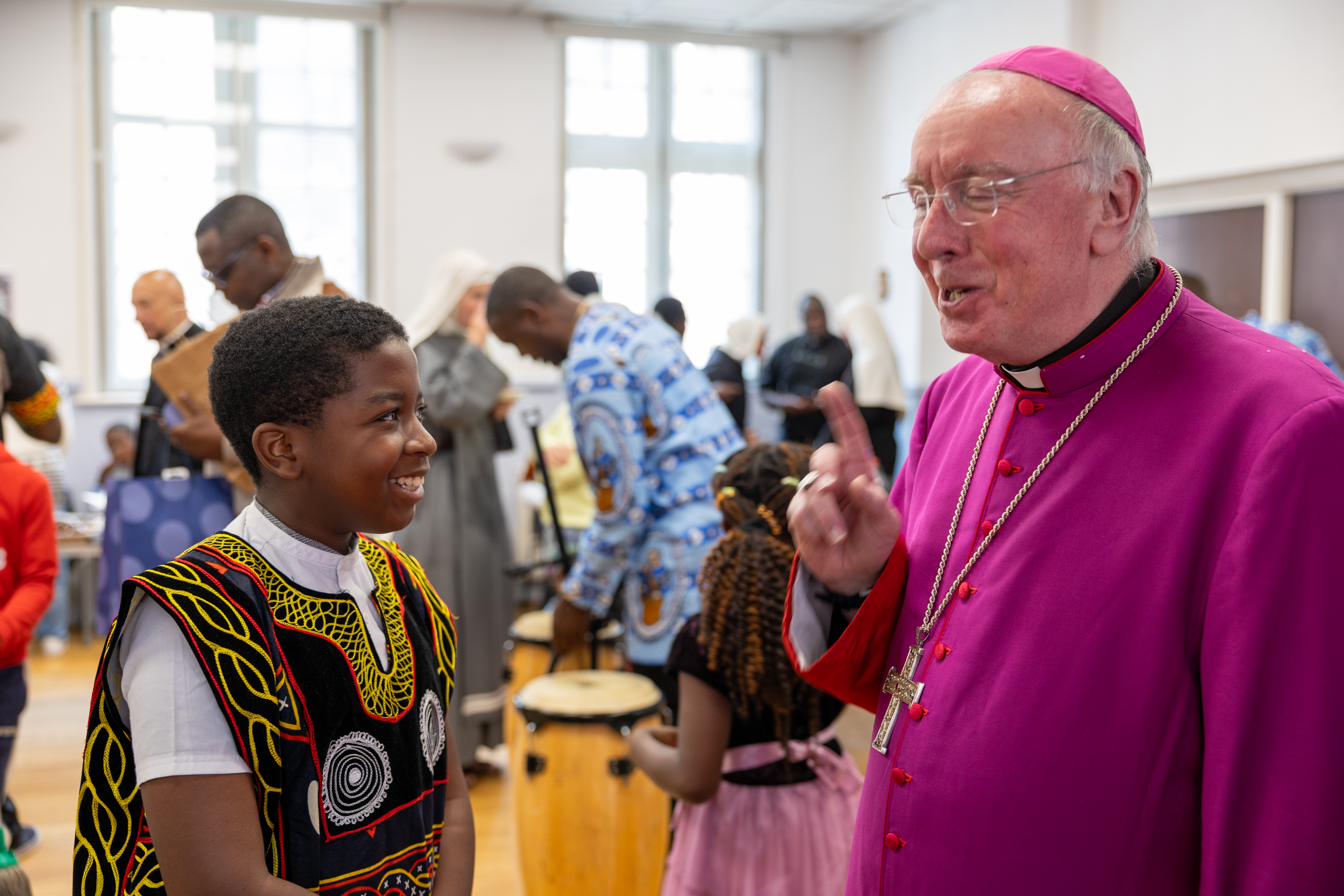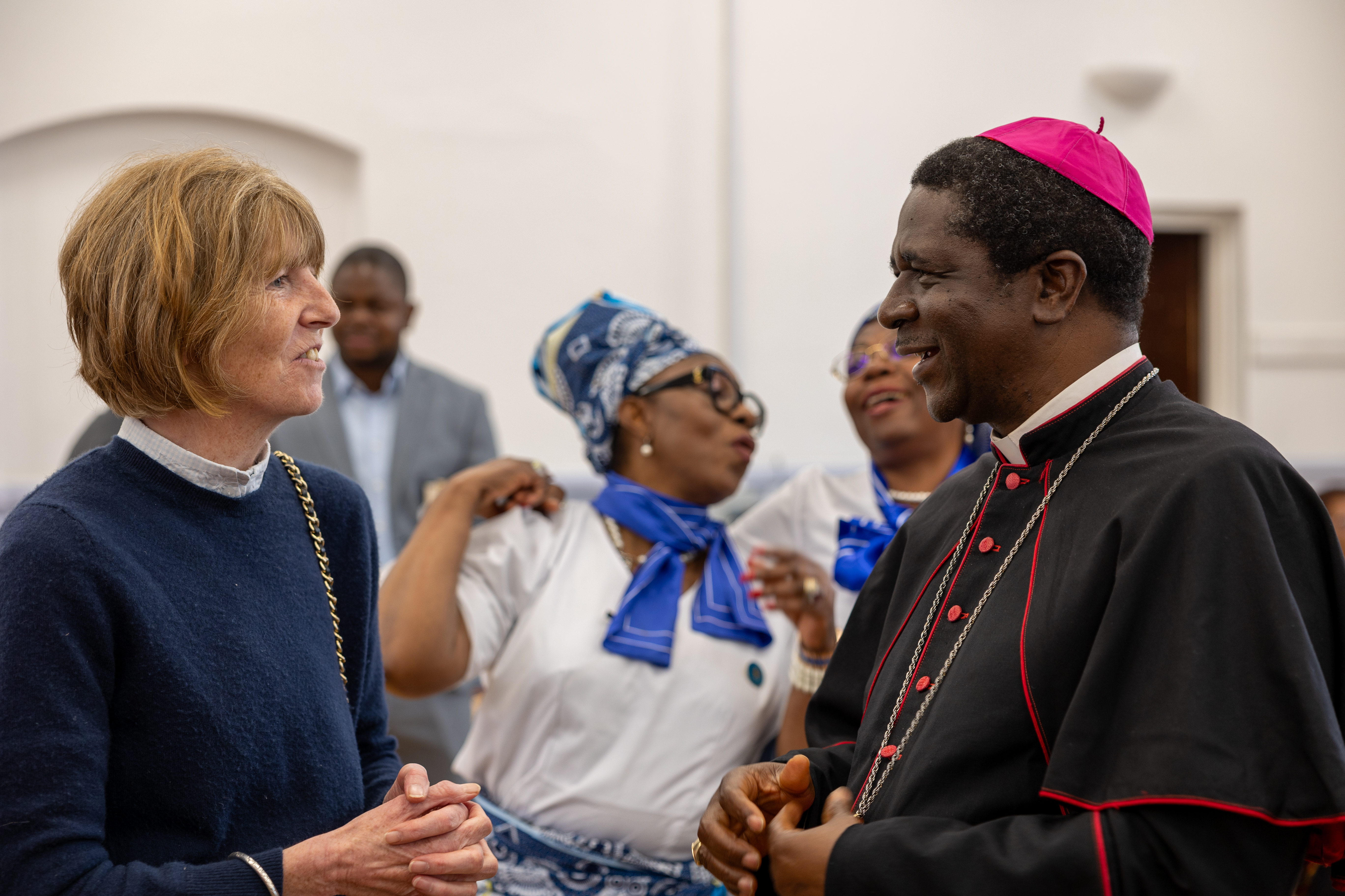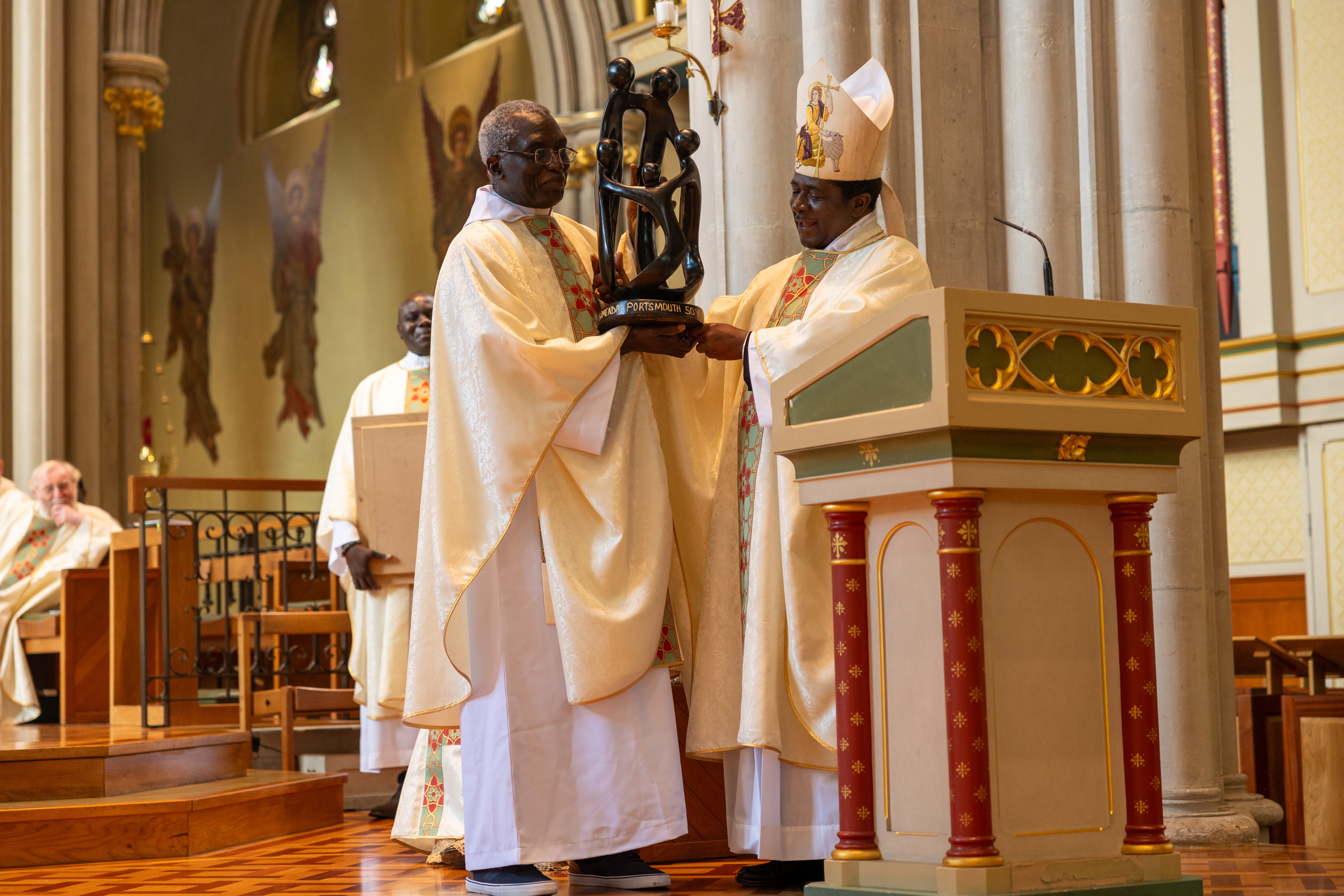 On Saturday, Bishop Philip welcomed Archbishop Andrew Nkea of Bamenda and Fr Bernardine Nsom to celebrate the Golden Jubilee Link between the Diocese of Portsmouth and the Archdiocese of Bamenda. Father Ron Hishon and Father Peter Codd attended the celebrations. They were the first missionary priests from Portsmouth who went out to Bamenda in the 1970's to spread the Gospel along with Father Frank Isherwood (RIP). Many Cameroonians from across the Diocese joined in the joyful and colourful celebration of singing, dancing, drumming whilst enjoying its delicious food.