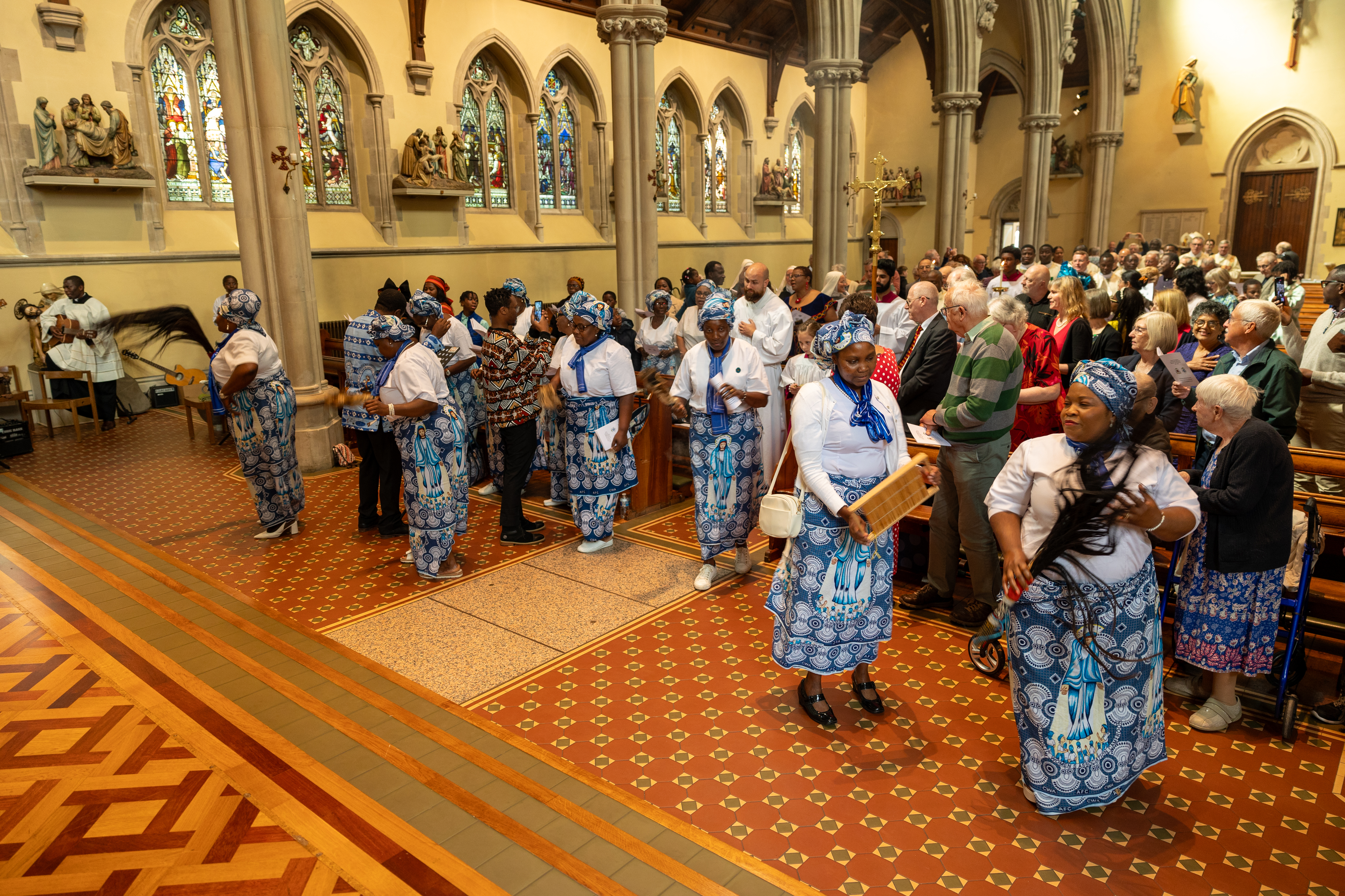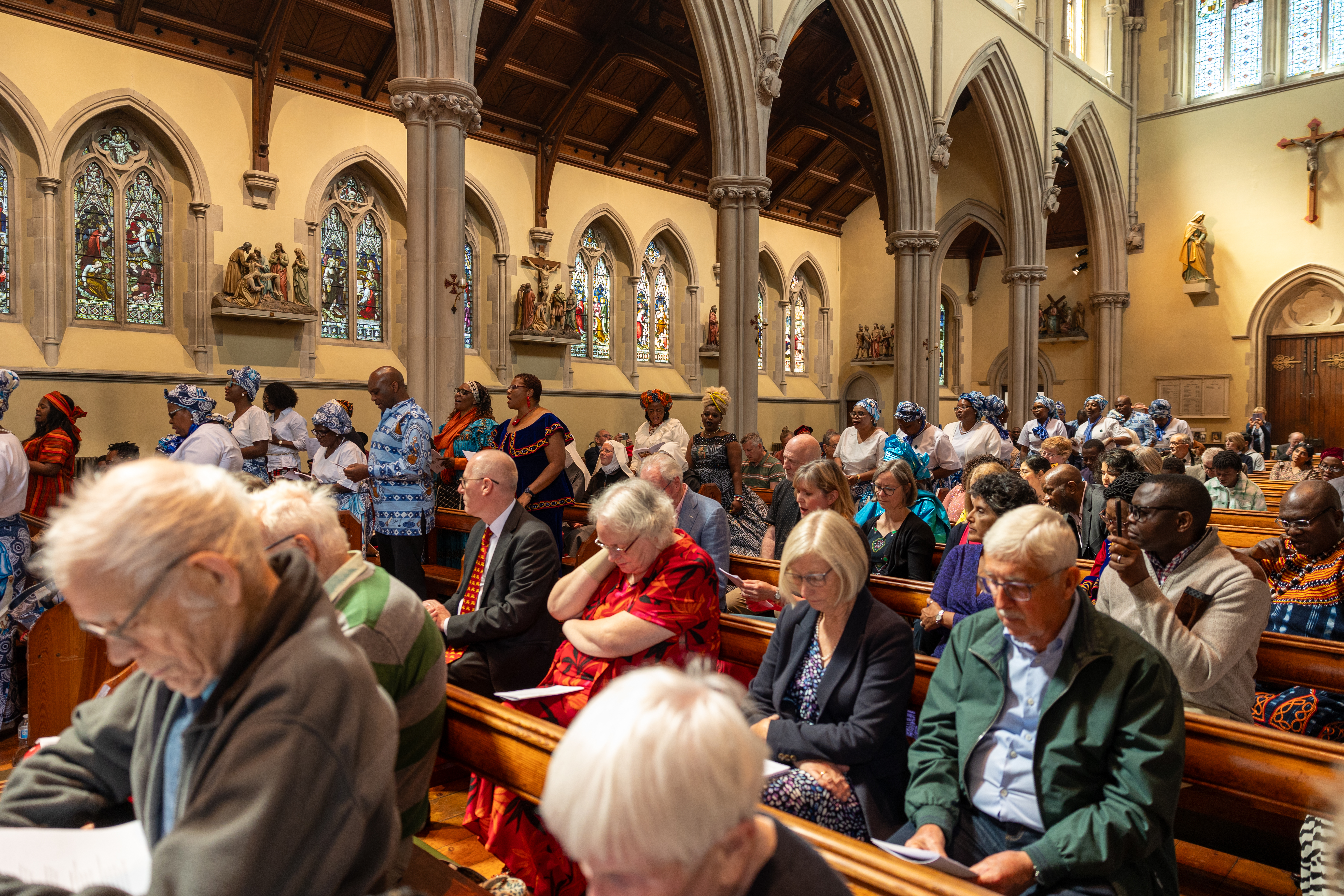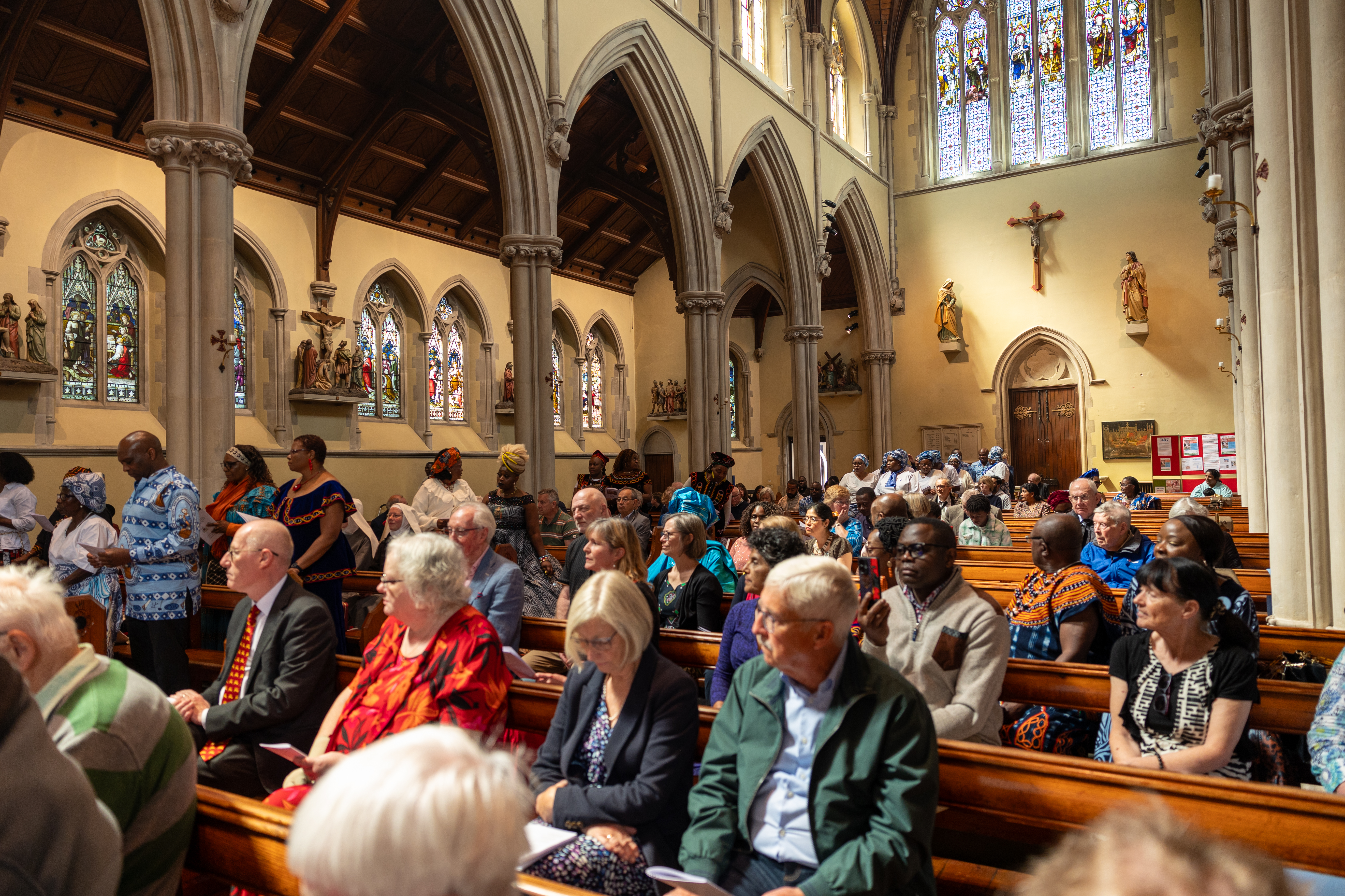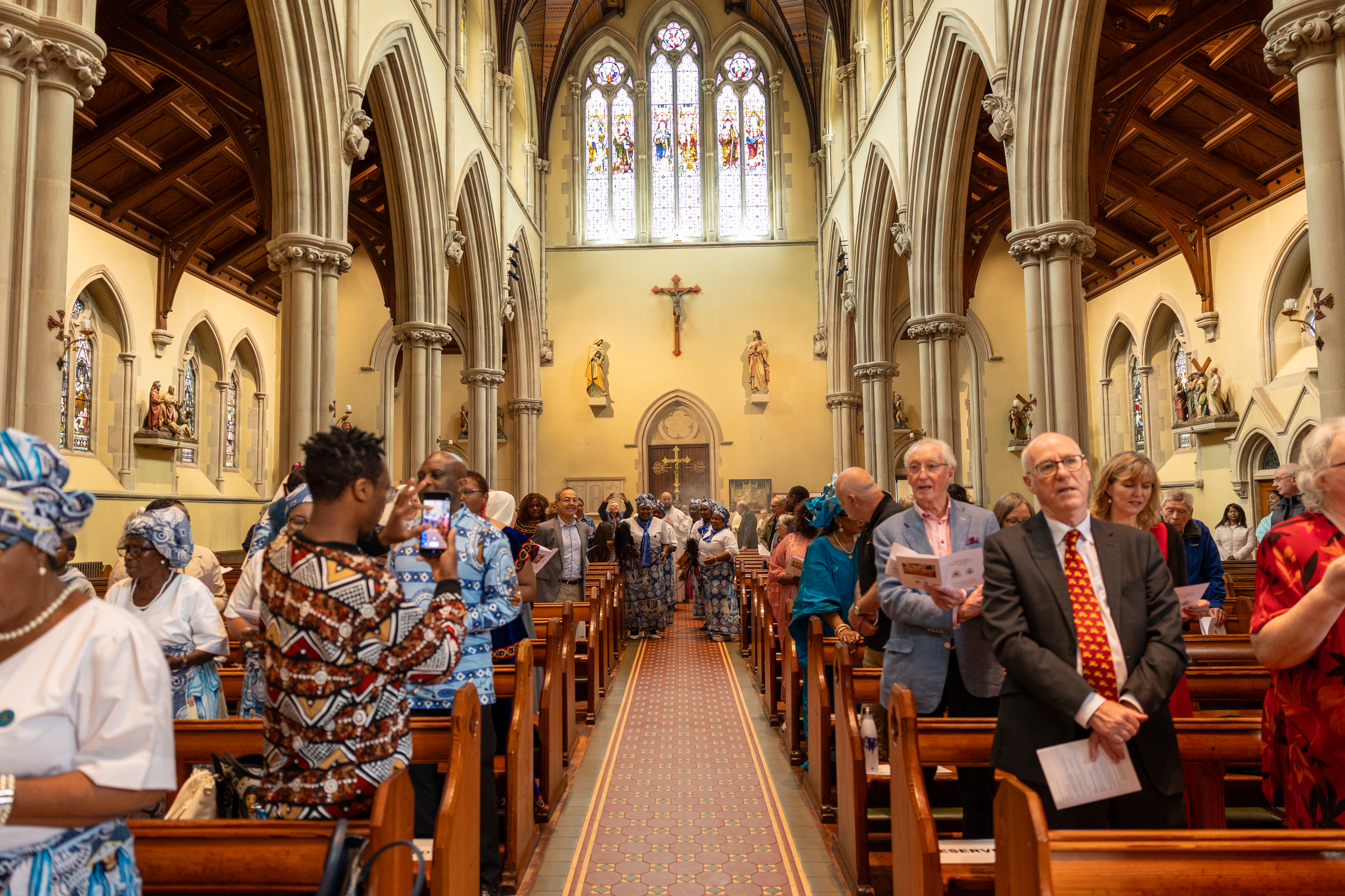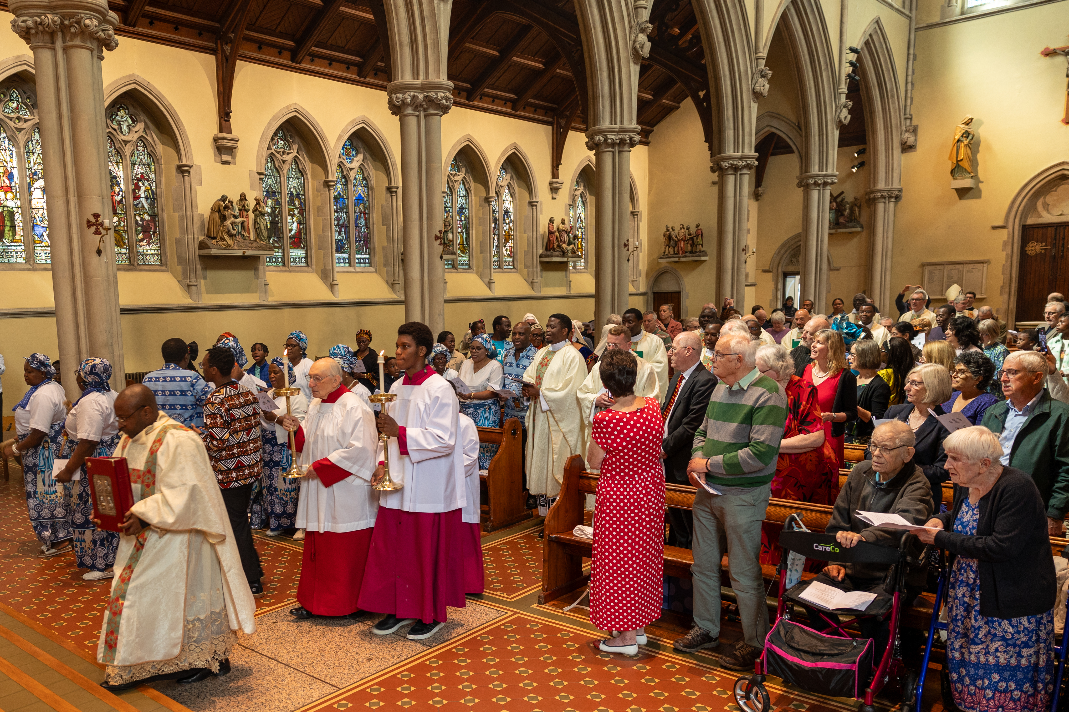 On Saturday, Bishop Philip welcomed Archbishop Andrew Nkea of Bamenda and Fr Bernardine Nsom to celebrate the Golden Jubilee Link between the Diocese of Portsmouth and the Archdiocese of Bamenda. Father Ron Hishon and Father Peter Codd attended the celebrations. They were the first missionary priests from Portsmouth who went out to Bamenda in the 1970's to spread the Gospel along with Father Frank Isherwood (RIP). Many Cameroonians from across the Diocese joined in the joyful and colourful celebration of singing, dancing, drumming whilst enjoying its delicious food.