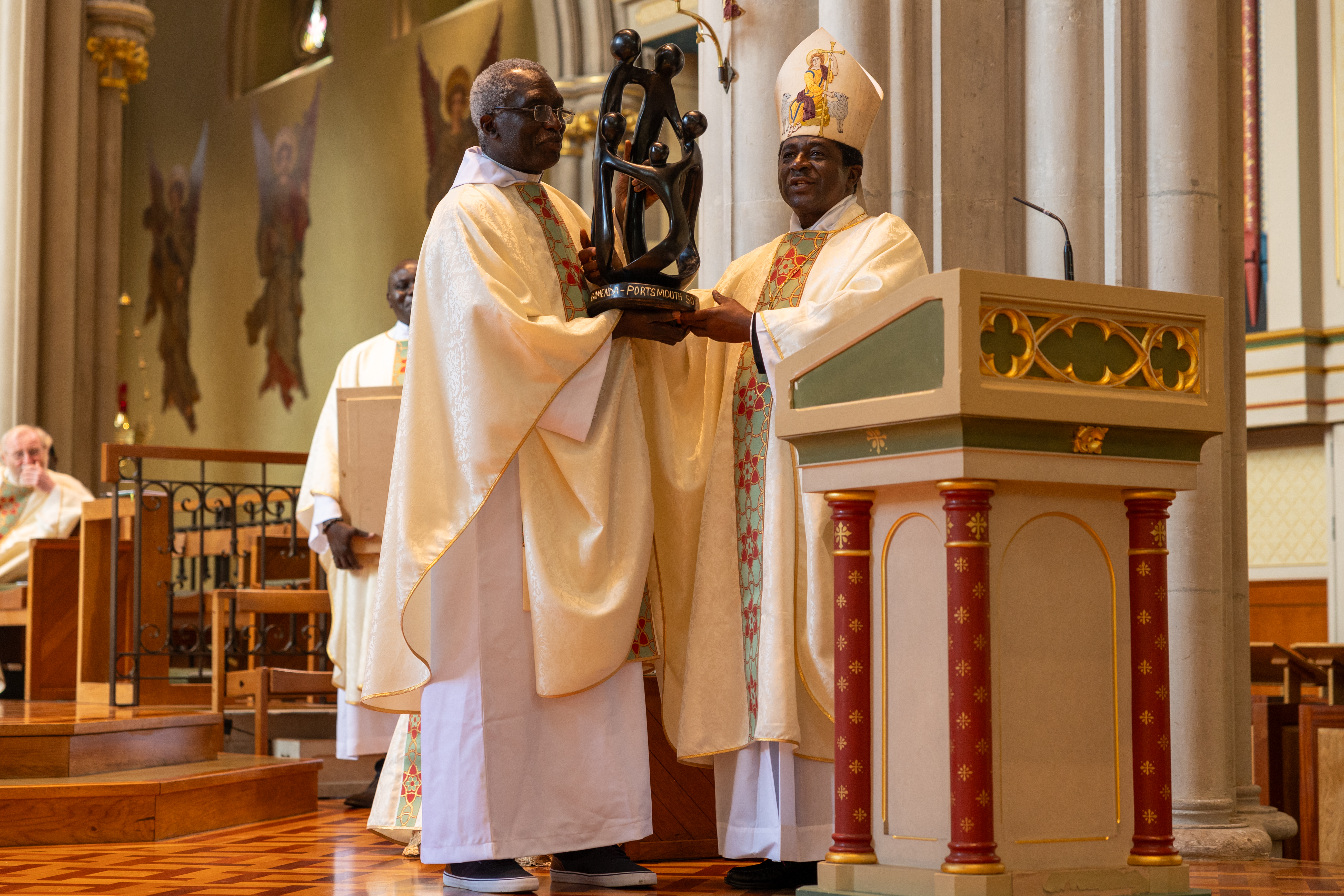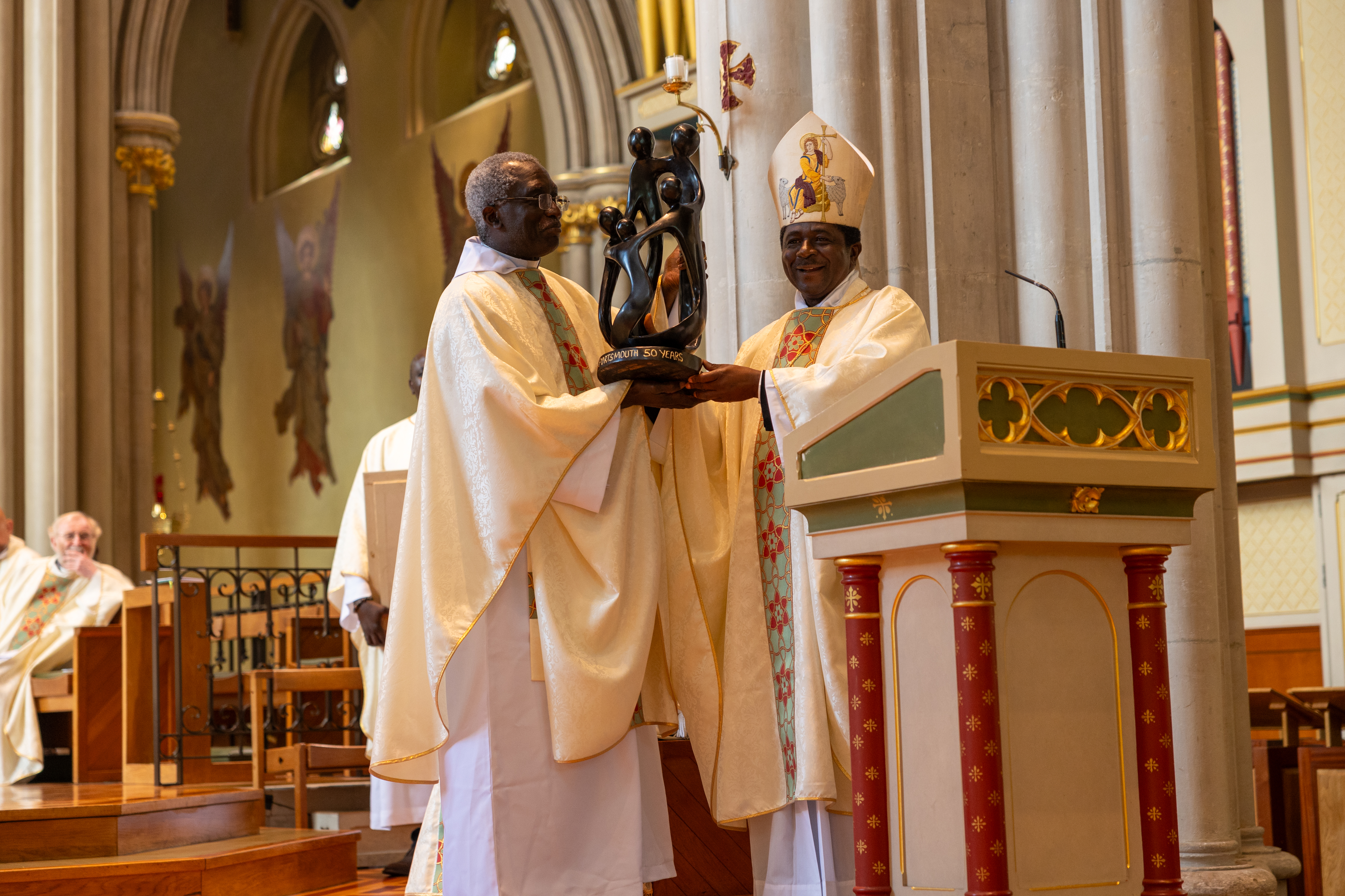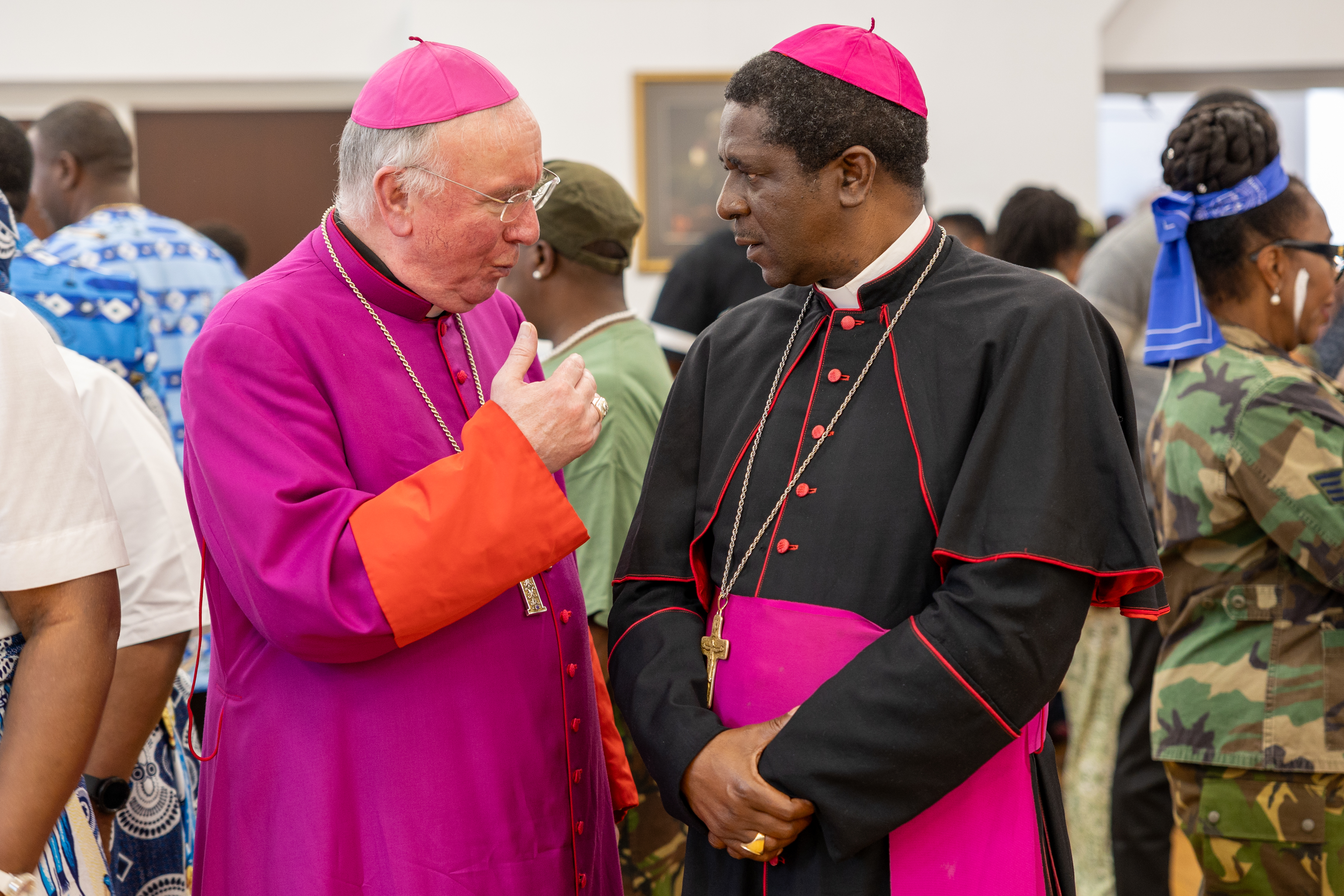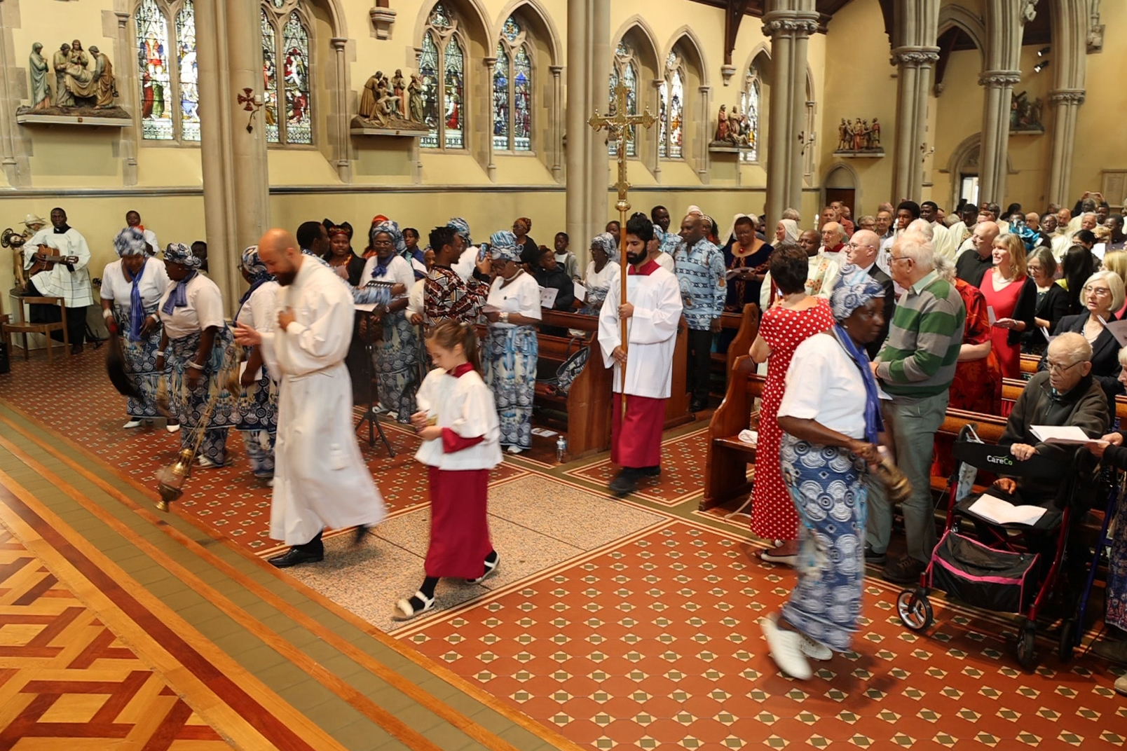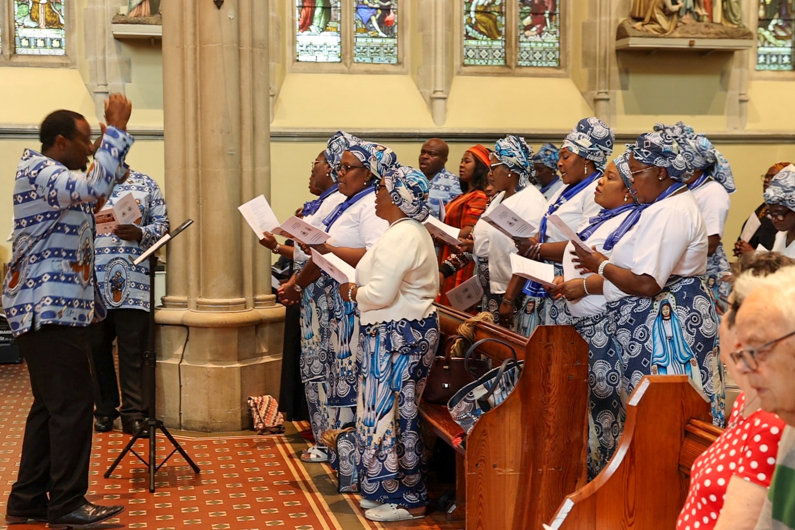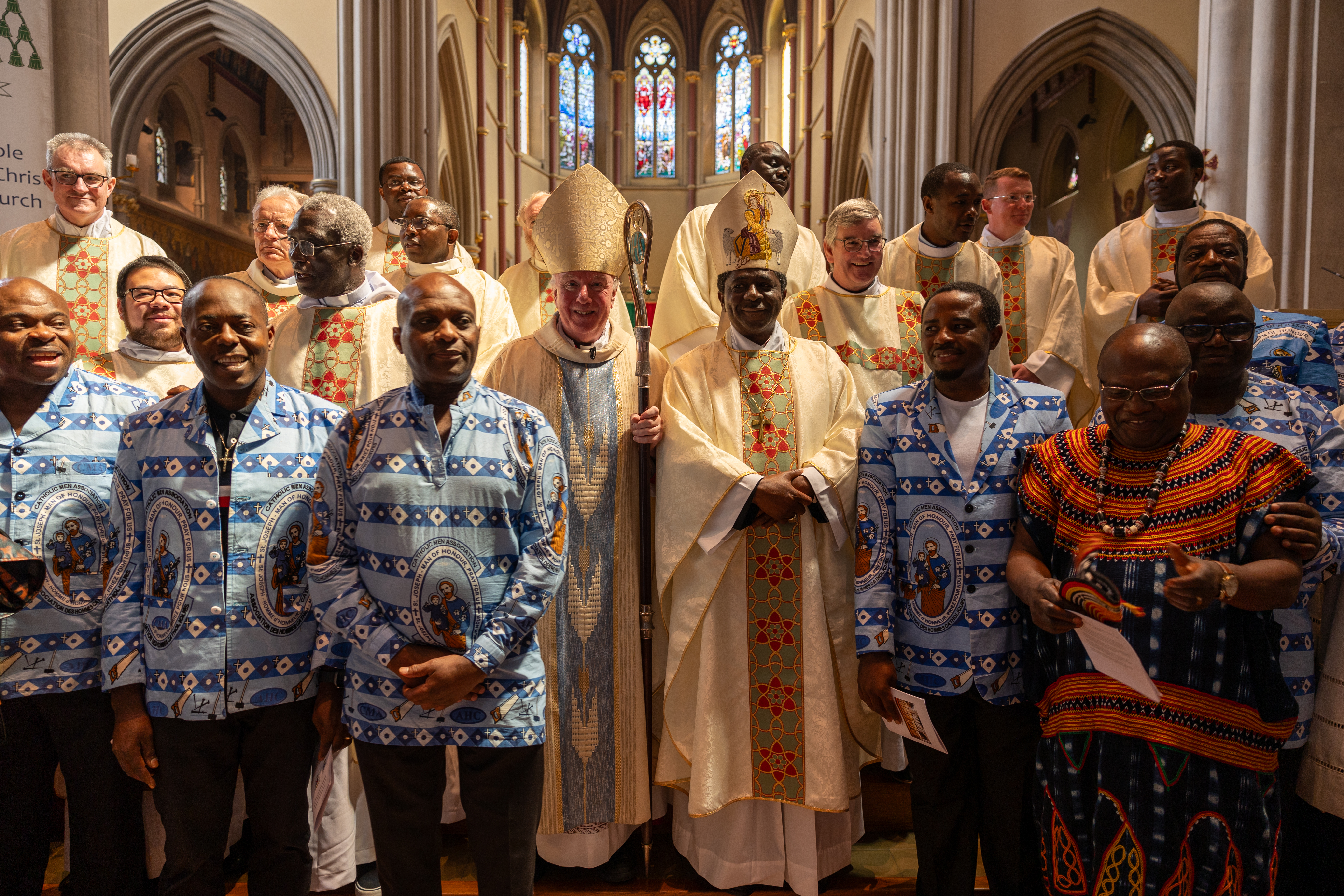 On Saturday, Bishop Philip welcomed Archbishop Andrew Nkea of Bamenda and Fr Bernardine Nsom to celebrate the Golden Jubilee Link between the Diocese of Portsmouth and the Archdiocese of Bamenda. Father Ron Hishon and Father Peter Codd attended the celebrations. They were the first missionary priests from Portsmouth who went out to Bamenda in the 1970's to spread the Gospel along with Father Frank Isherwood (RIP). Many Cameroonians from across the Diocese joined in the joyful and colourful celebration of singing, dancing, drumming whilst enjoying its delicious food.