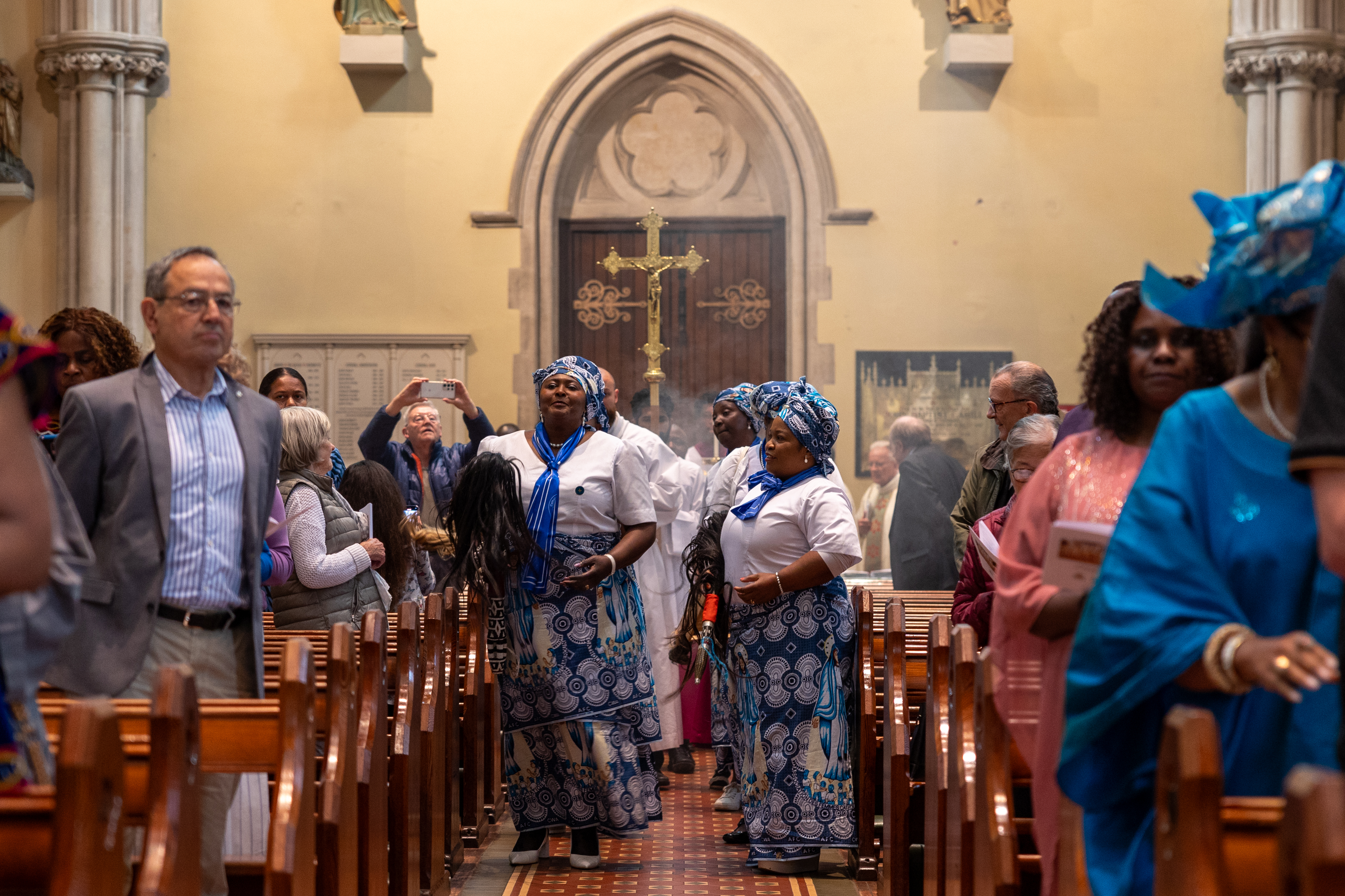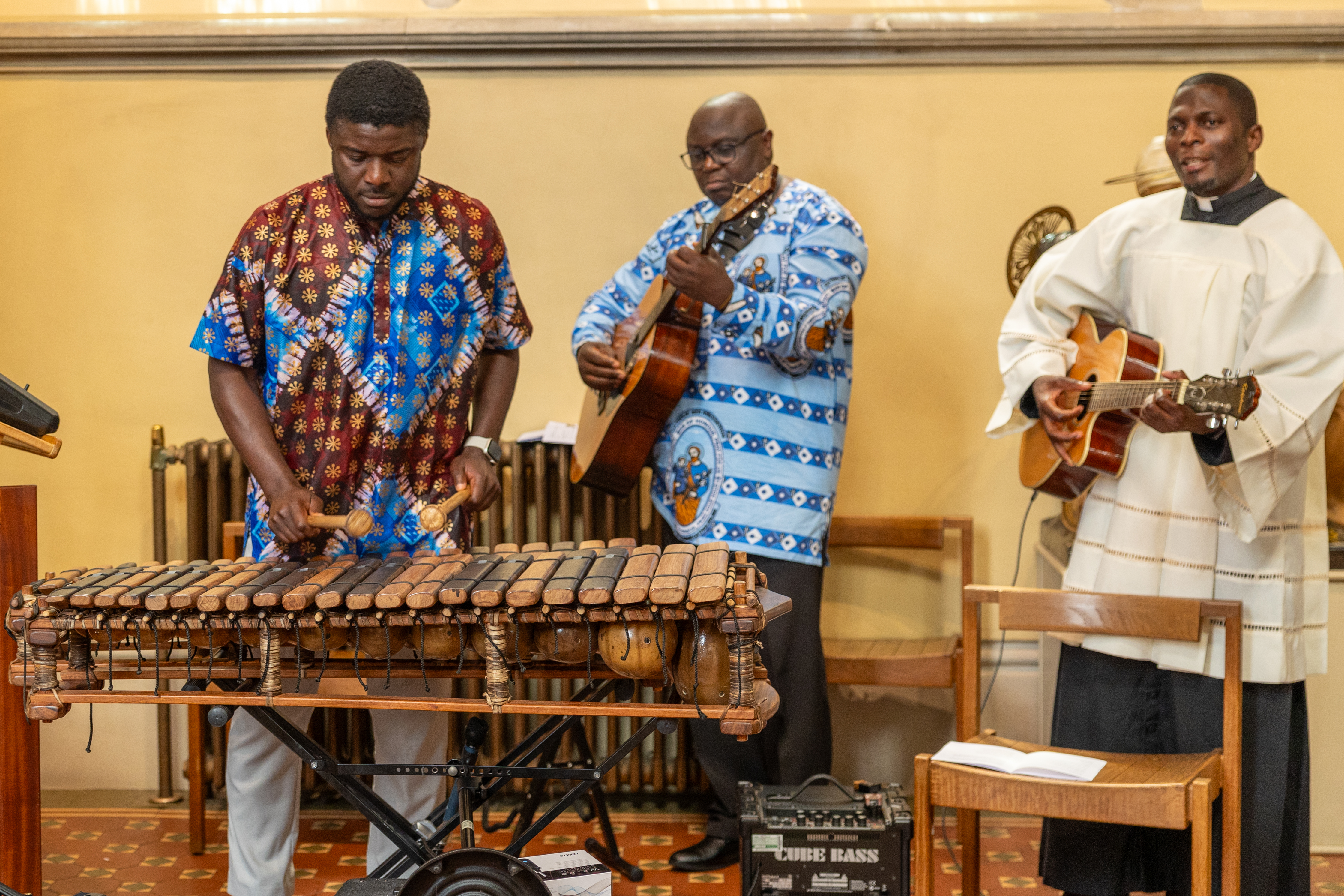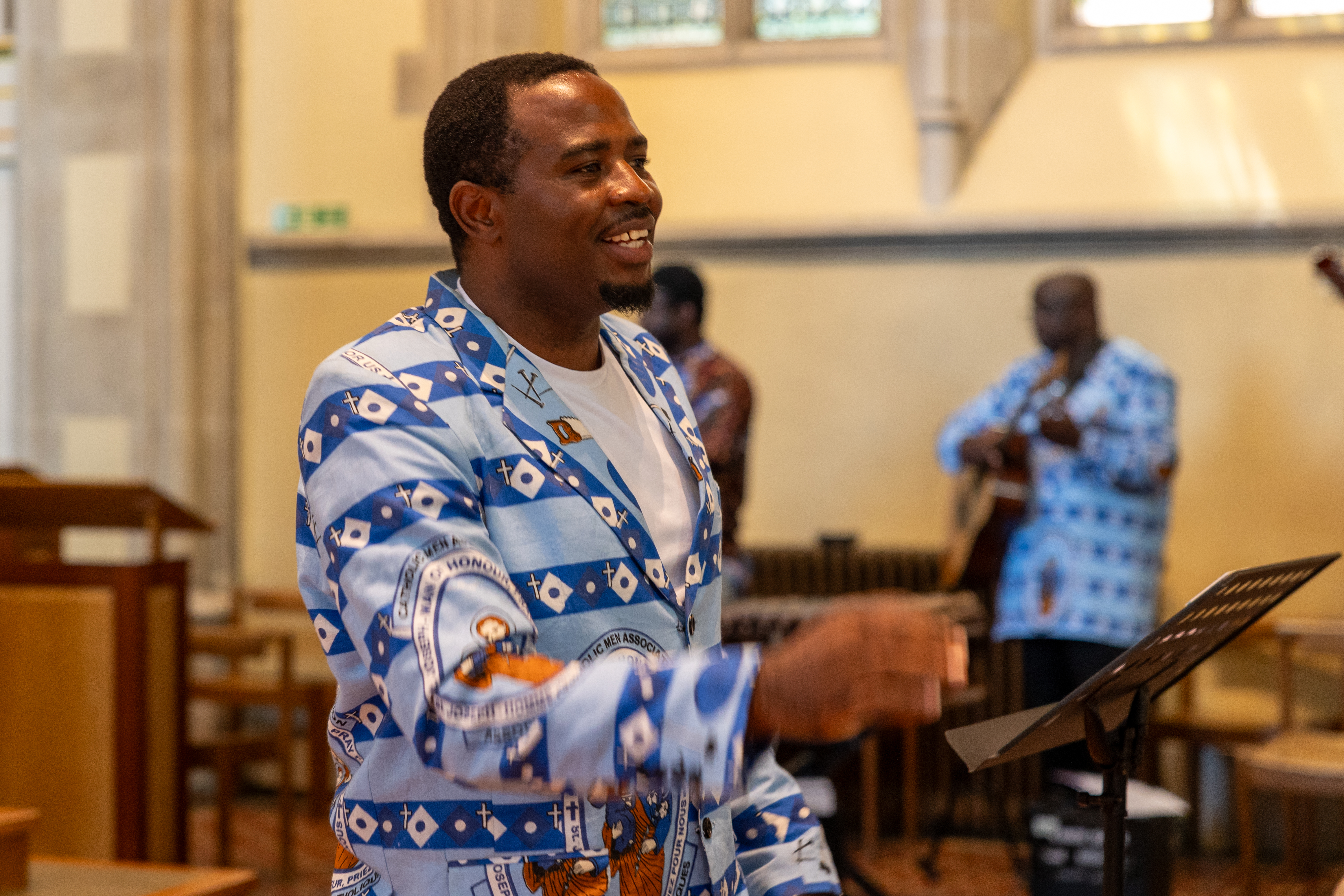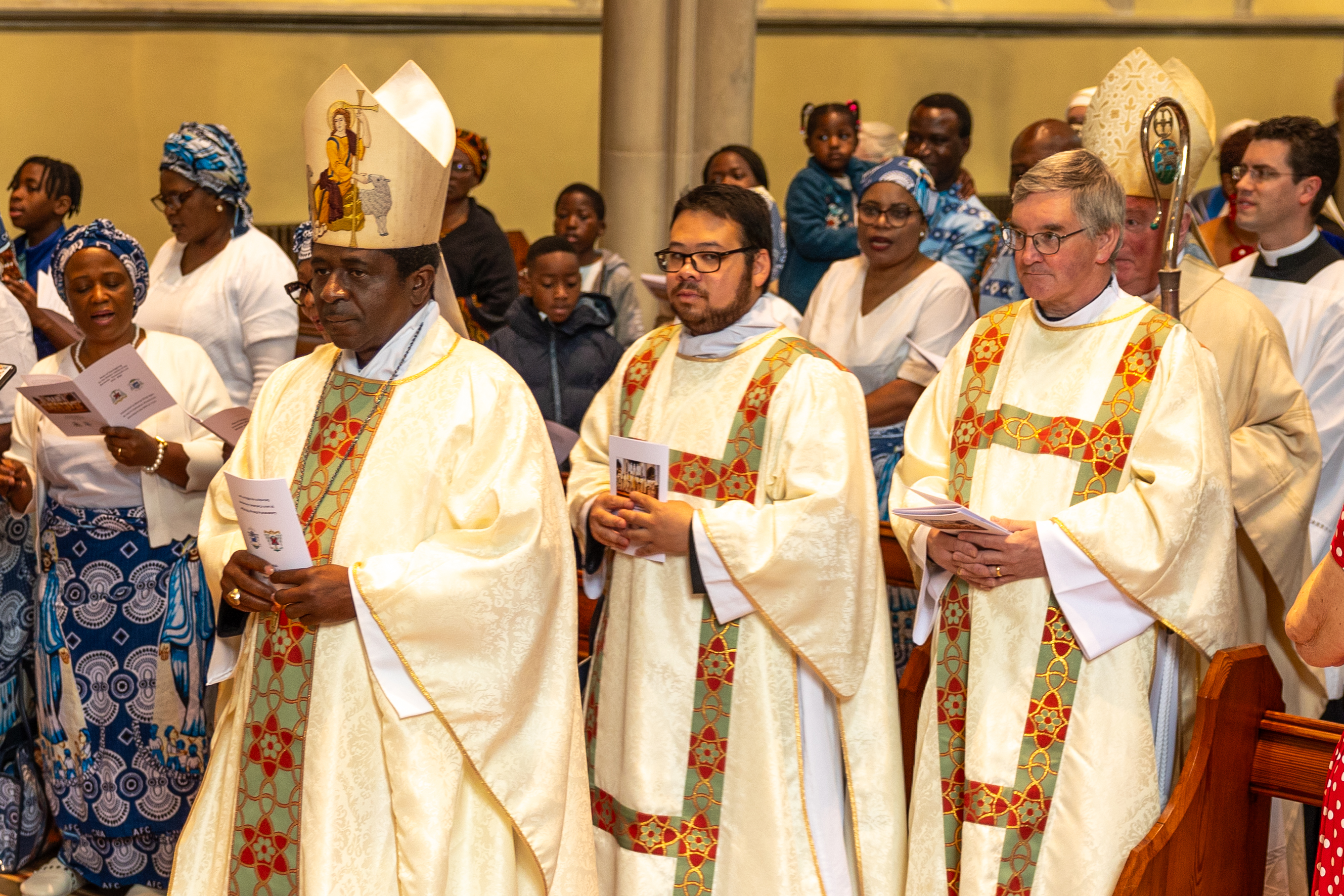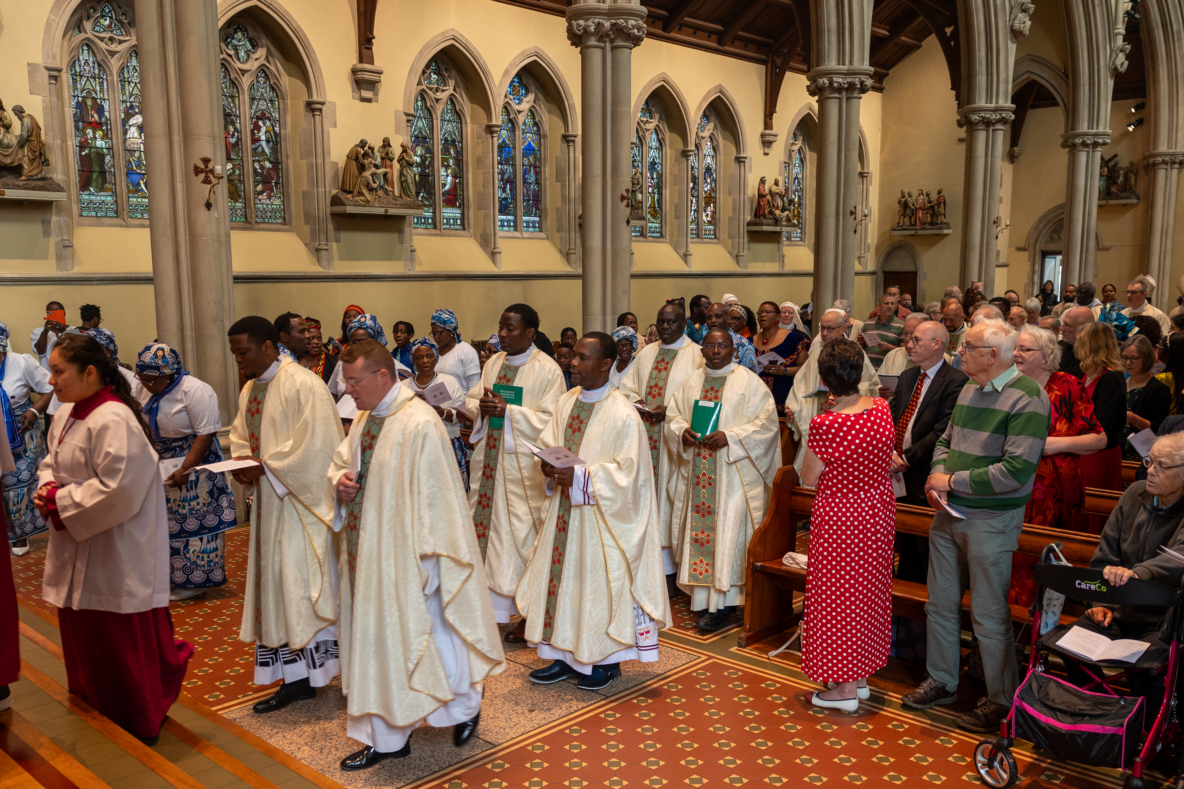 On Saturday, Bishop Philip welcomed Archbishop Andrew Nkea of Bamenda and Fr Bernardine Nsom to celebrate the Golden Jubilee Link between the Diocese of Portsmouth and the Archdiocese of Bamenda. Father Ron Hishon and Father Peter Codd attended the celebrations. They were the first missionary priests from Portsmouth who went out to Bamenda in the 1970's to spread the Gospel along with Father Frank Isherwood (RIP). Many Cameroonians from across the Diocese joined in the joyful and colourful celebration of singing, dancing, drumming whilst enjoying its delicious food.
