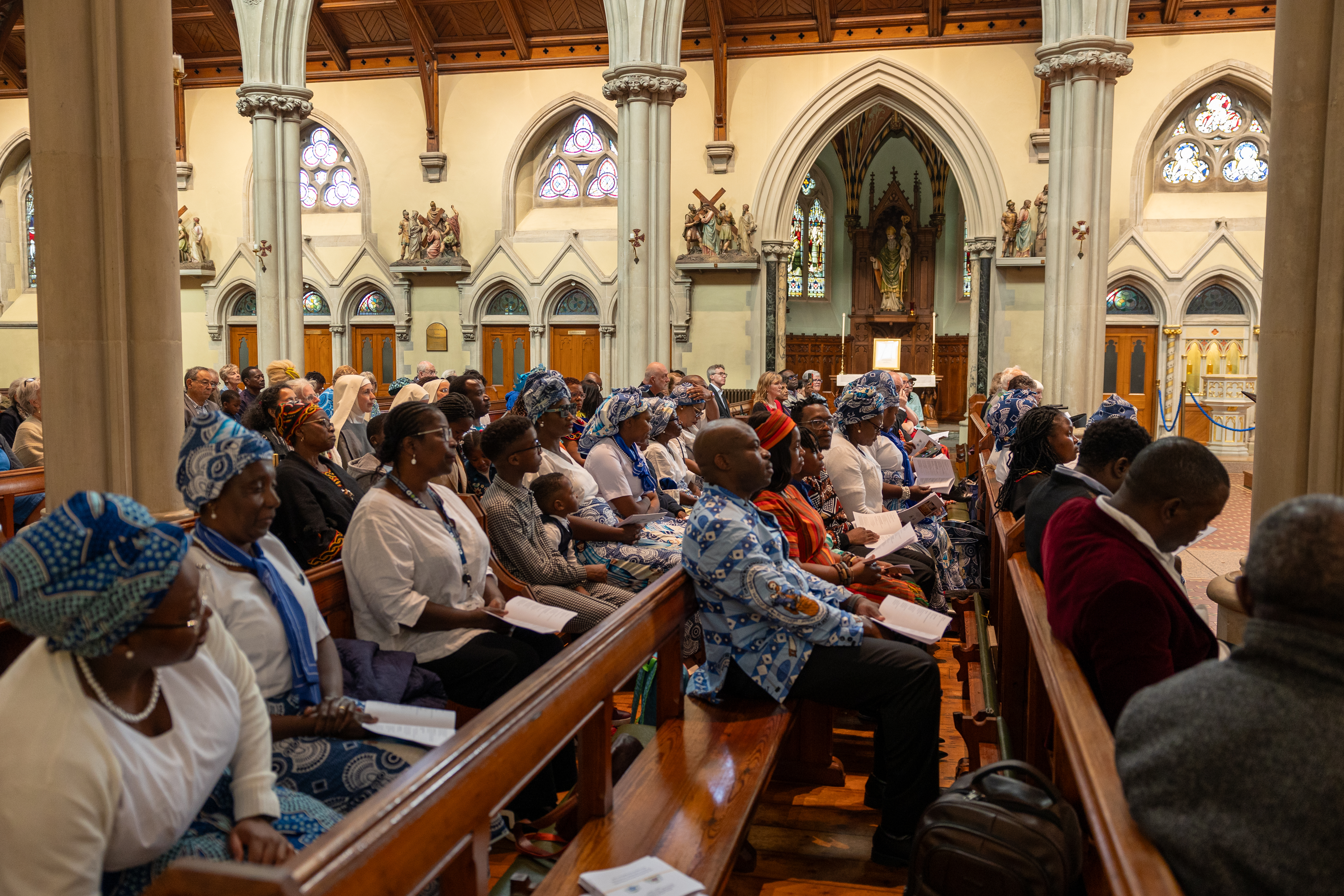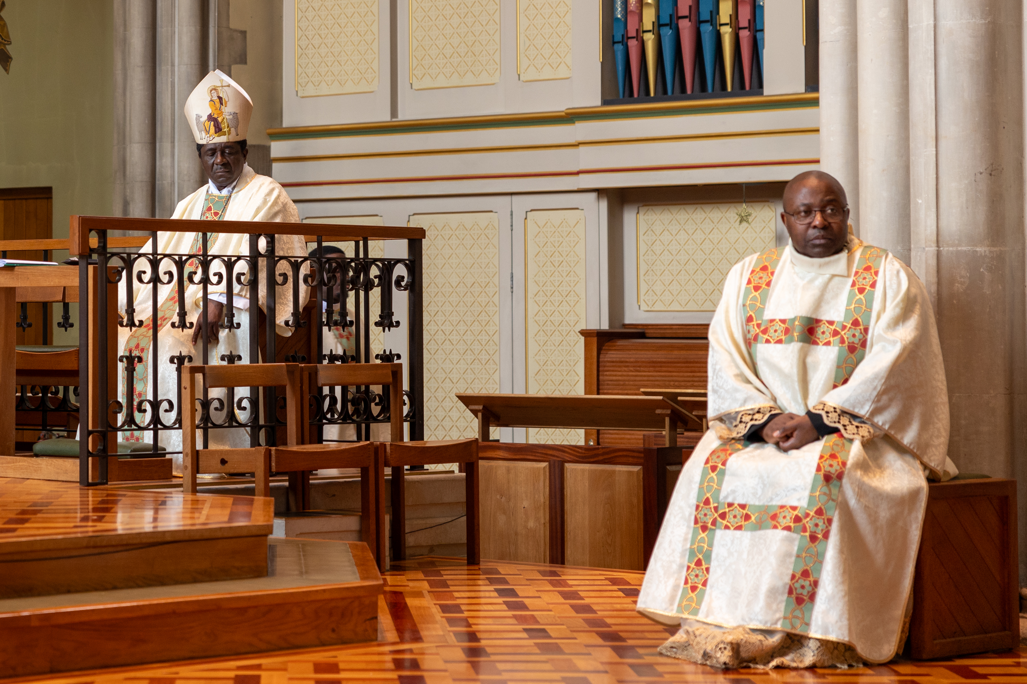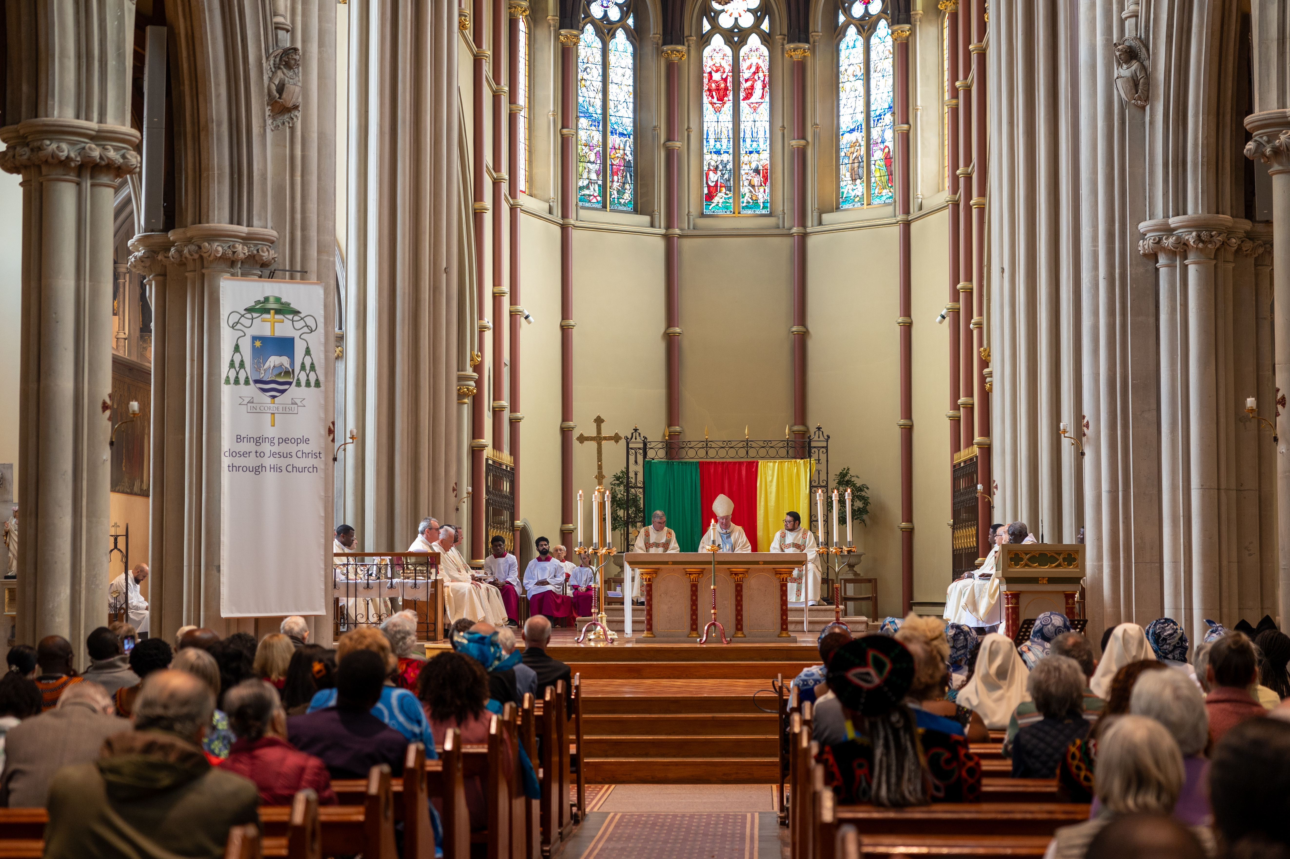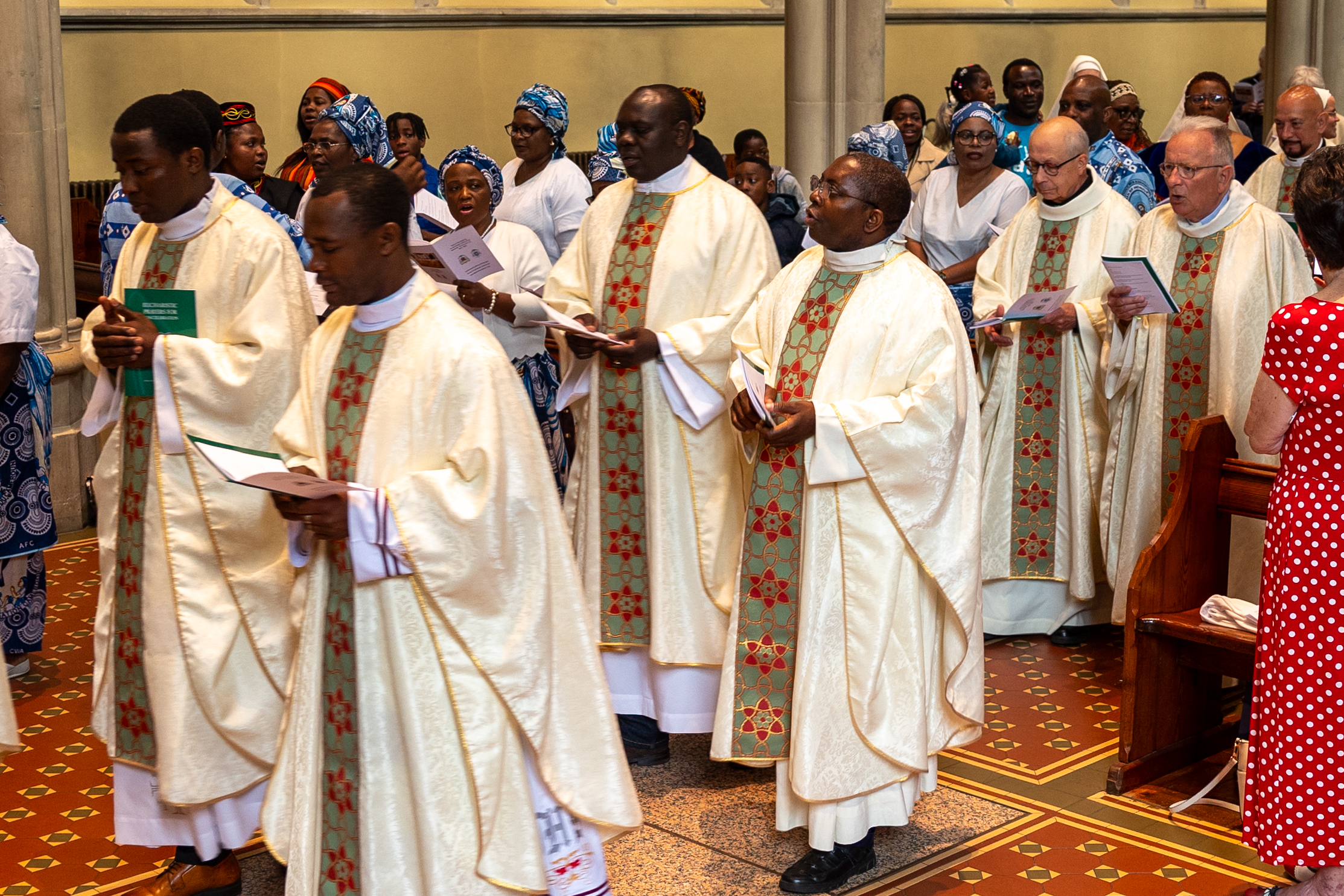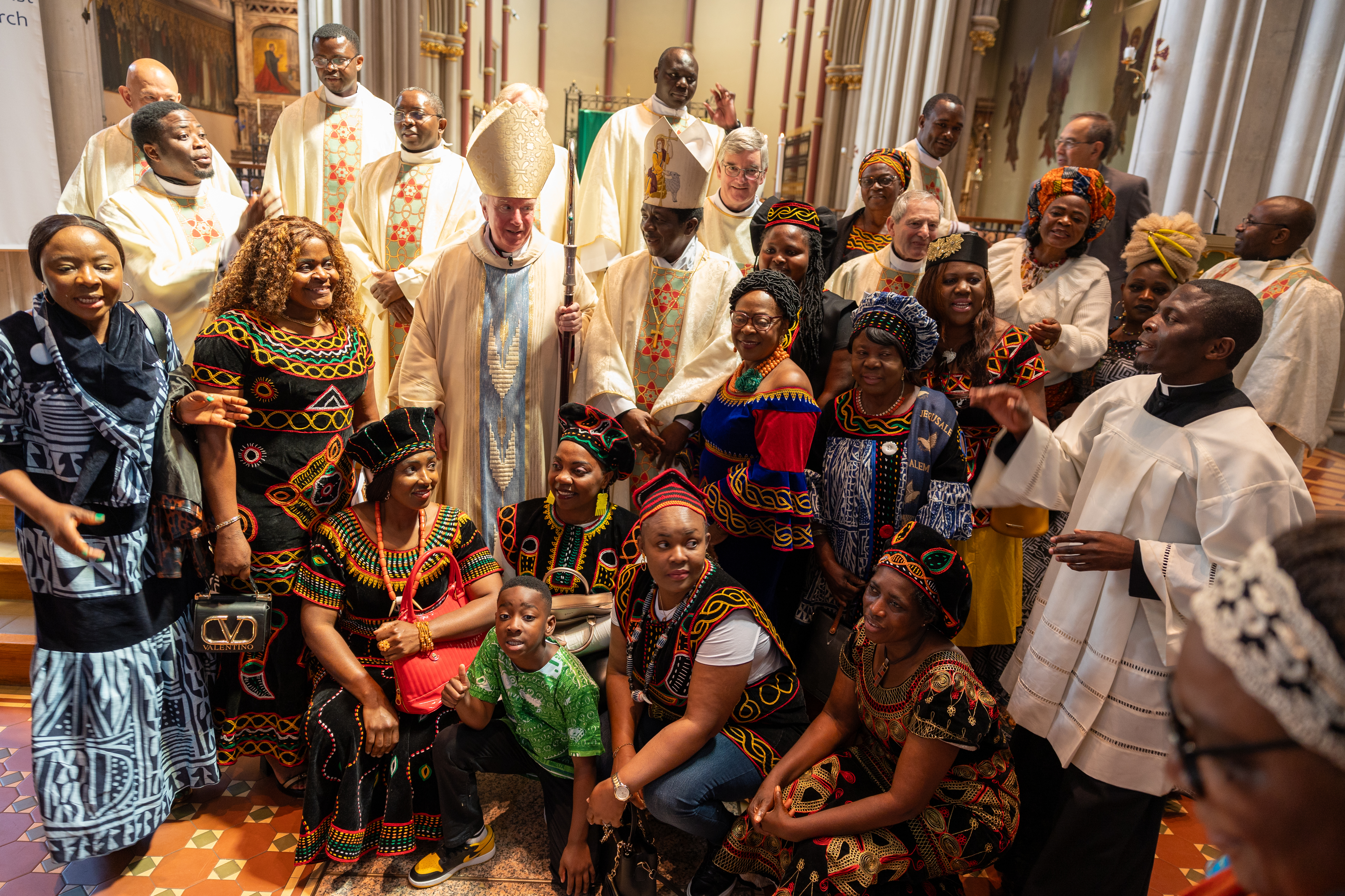 On Saturday, Bishop Philip welcomed Archbishop Andrew Nkea of Bamenda and Fr Bernardine Nsom to celebrate the Golden Jubilee Link between the Diocese of Portsmouth and the Archdiocese of Bamenda. Father Ron Hishon and Father Peter Codd attended the celebrations. They were the first missionary priests from Portsmouth who went out to Bamenda in the 1970's to spread the Gospel along with Father Frank Isherwood (RIP). Many Cameroonians from across the Diocese joined in the joyful and colourful celebration of singing, dancing, drumming whilst enjoying its delicious food.