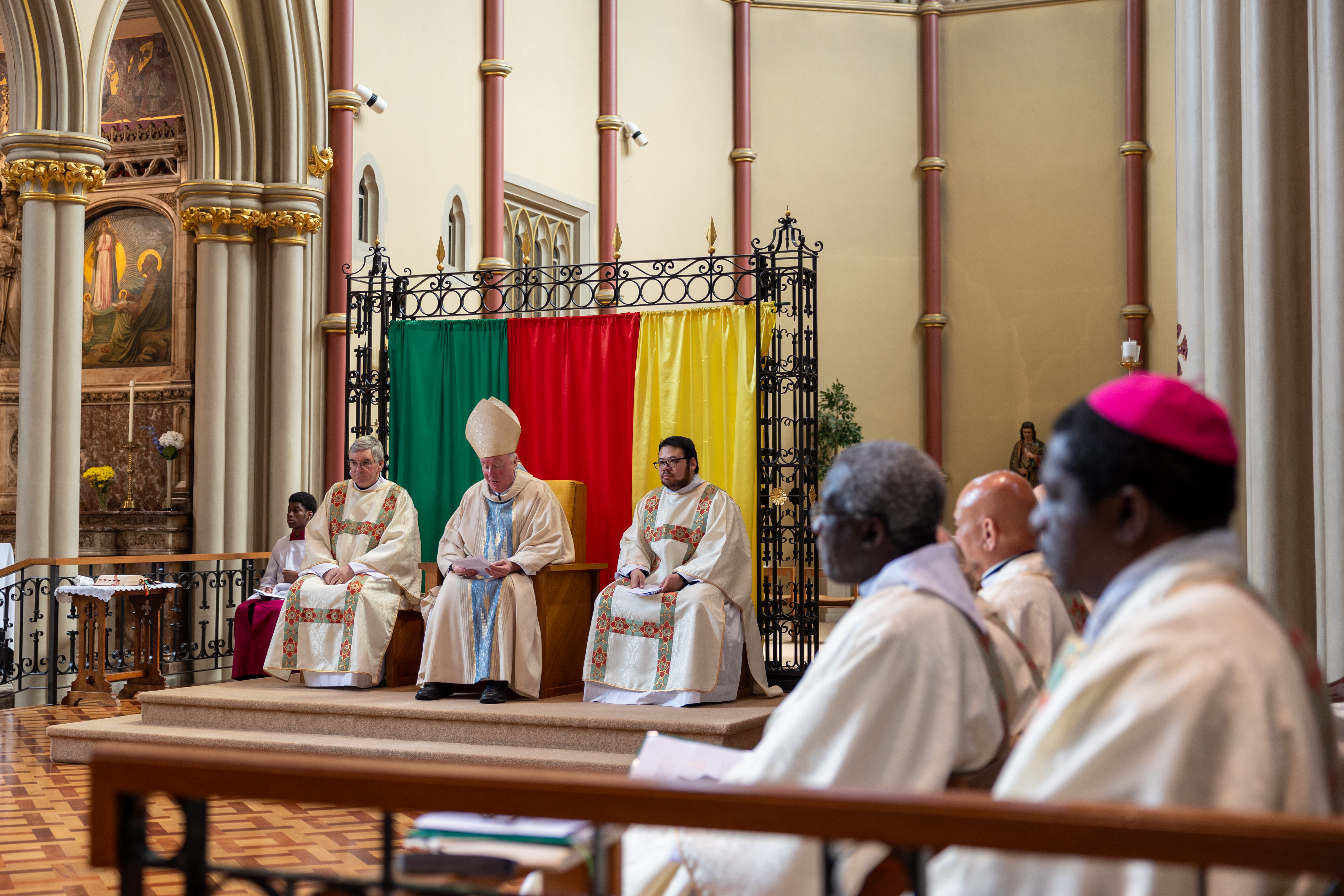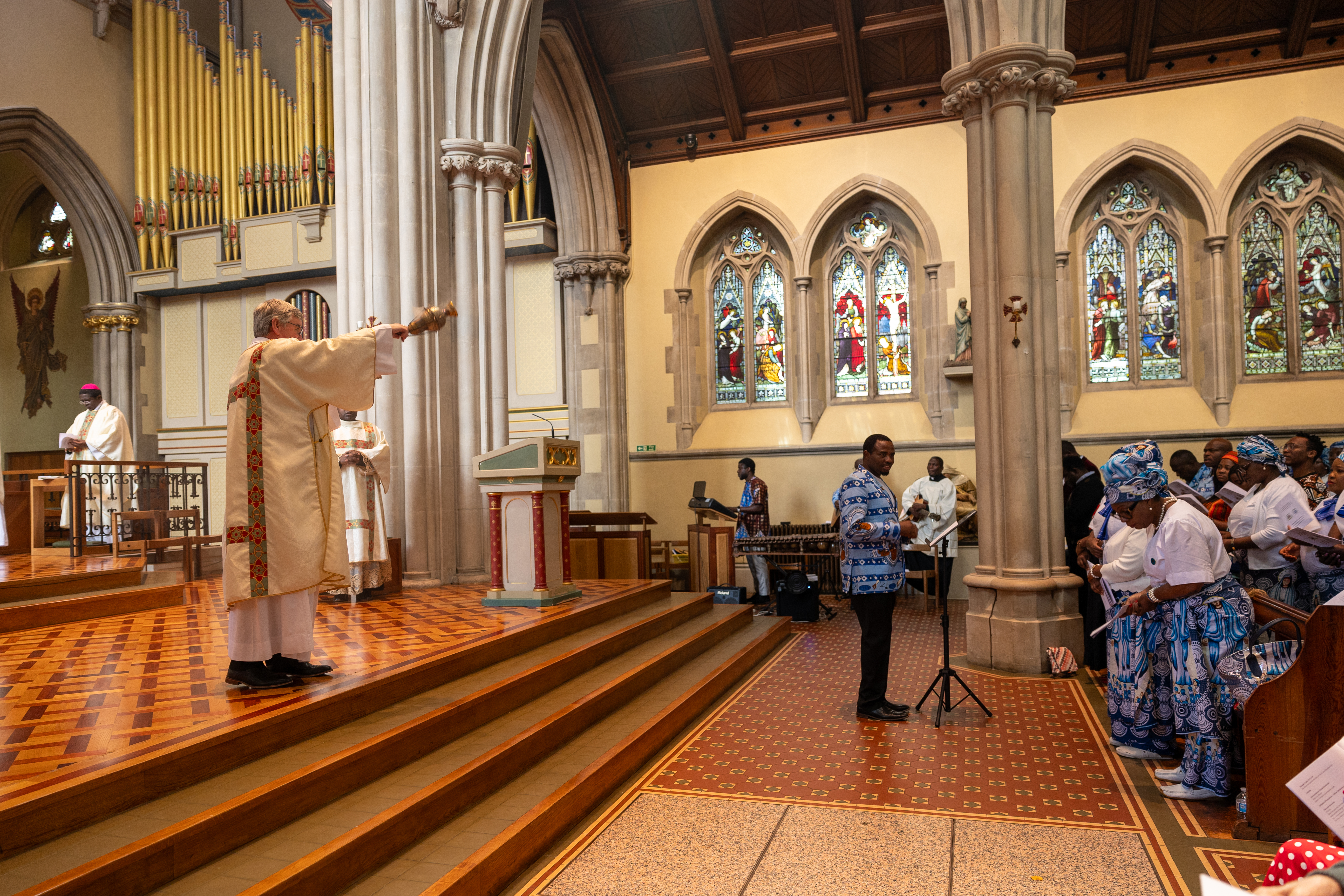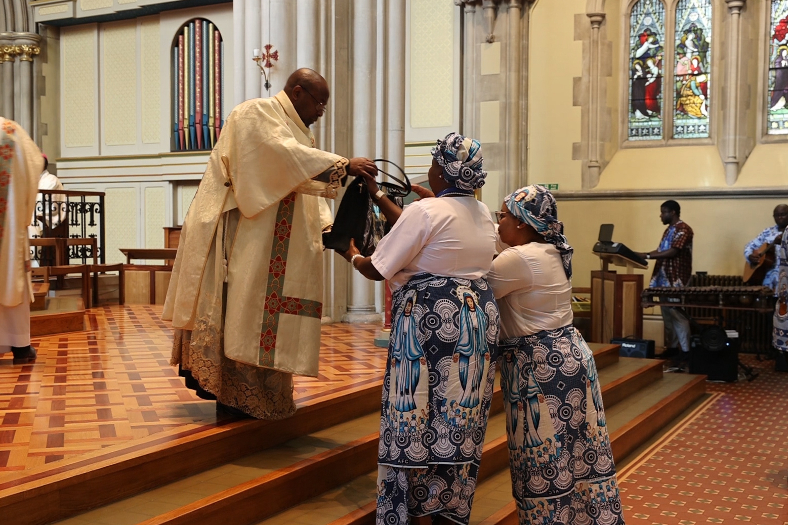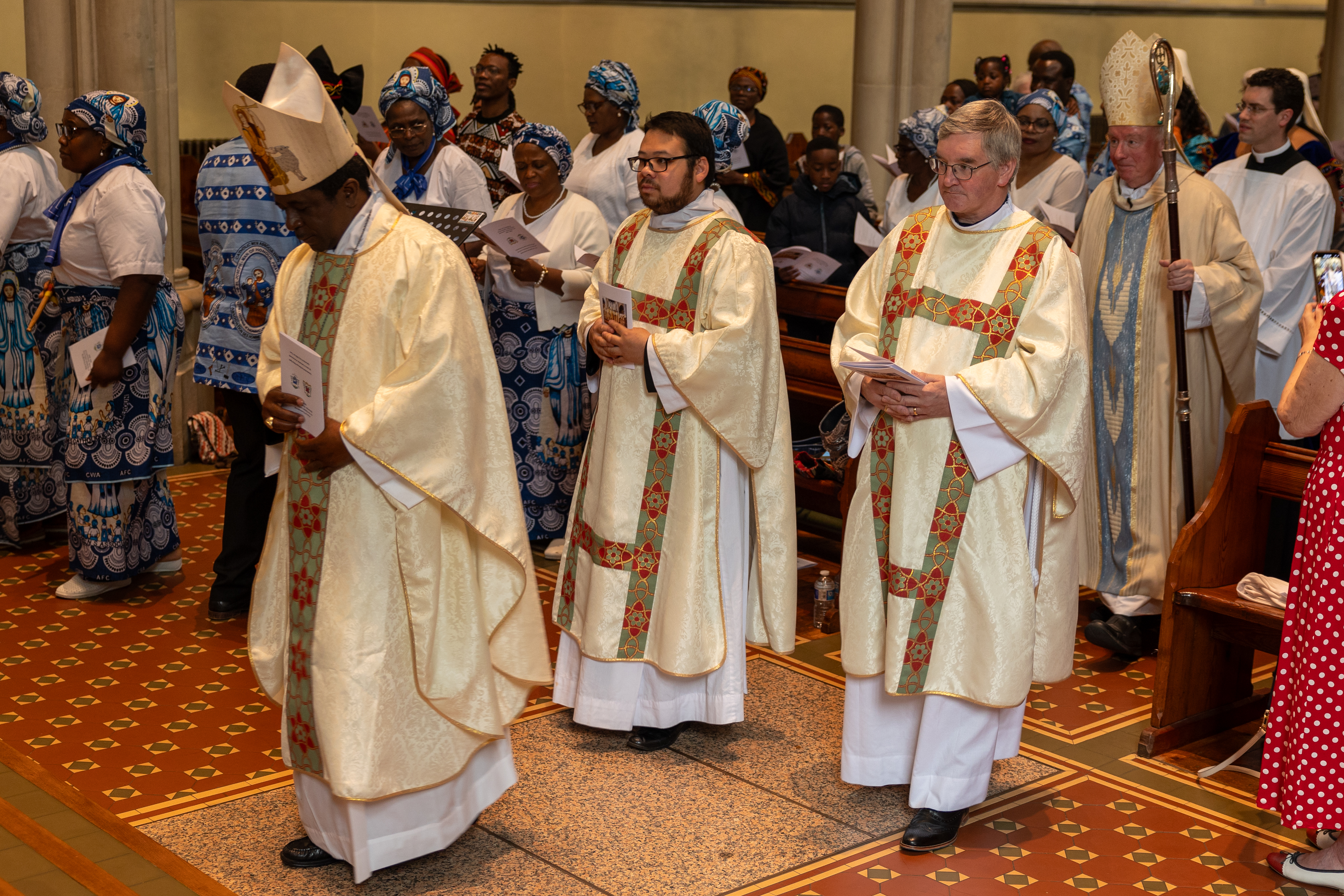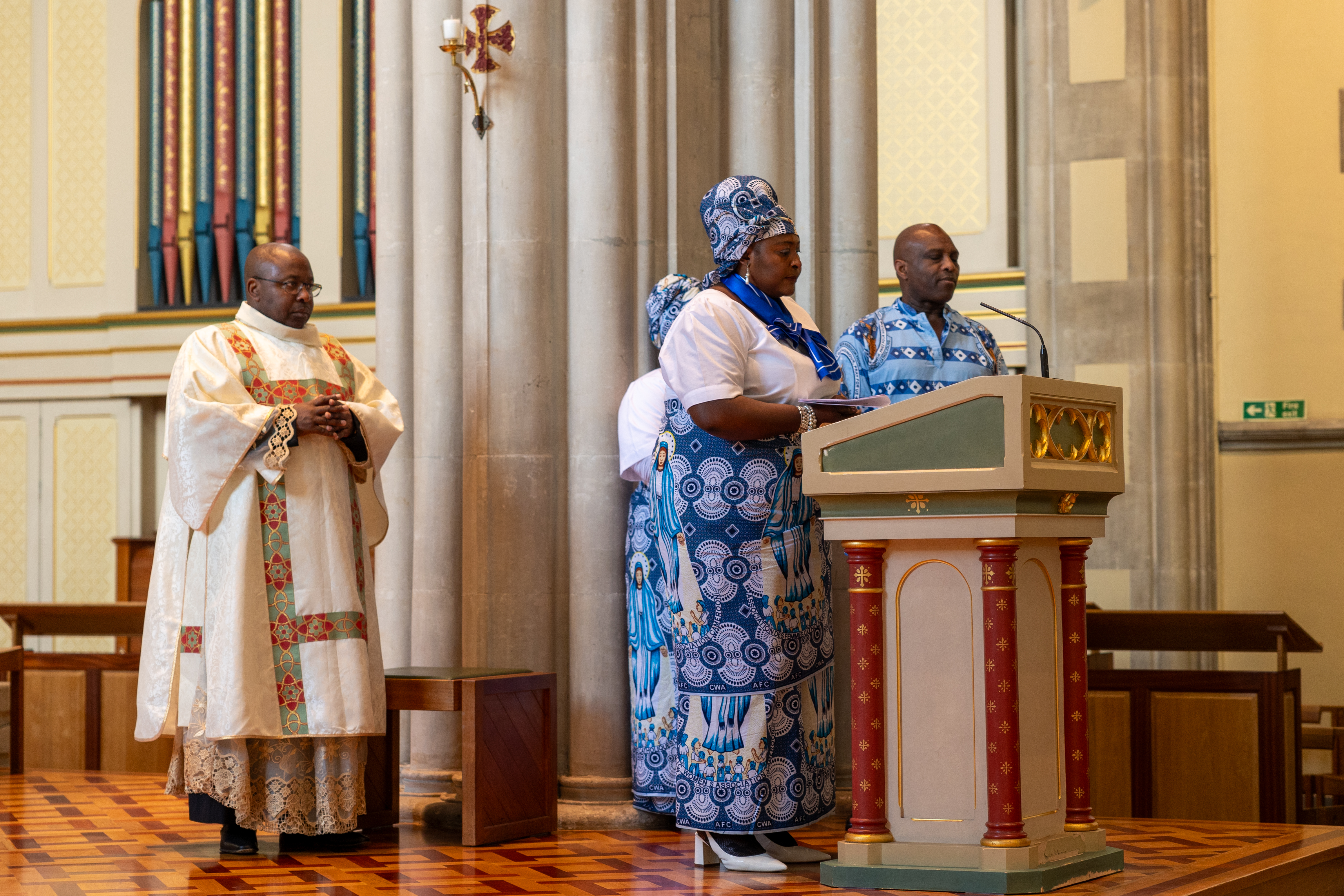 On Saturday, Bishop Philip welcomed Archbishop Andrew Nkea of Bamenda and Fr Bernardine Nsom to celebrate the Golden Jubilee Link between the Diocese of Portsmouth and the Archdiocese of Bamenda. Father Ron Hishon and Father Peter Codd attended the celebrations. They were the first missionary priests from Portsmouth who went out to Bamenda in the 1970's to spread the Gospel along with Father Frank Isherwood (RIP). Many Cameroonians from across the Diocese joined in the joyful and colourful celebration of singing, dancing, drumming whilst enjoying its delicious food.
