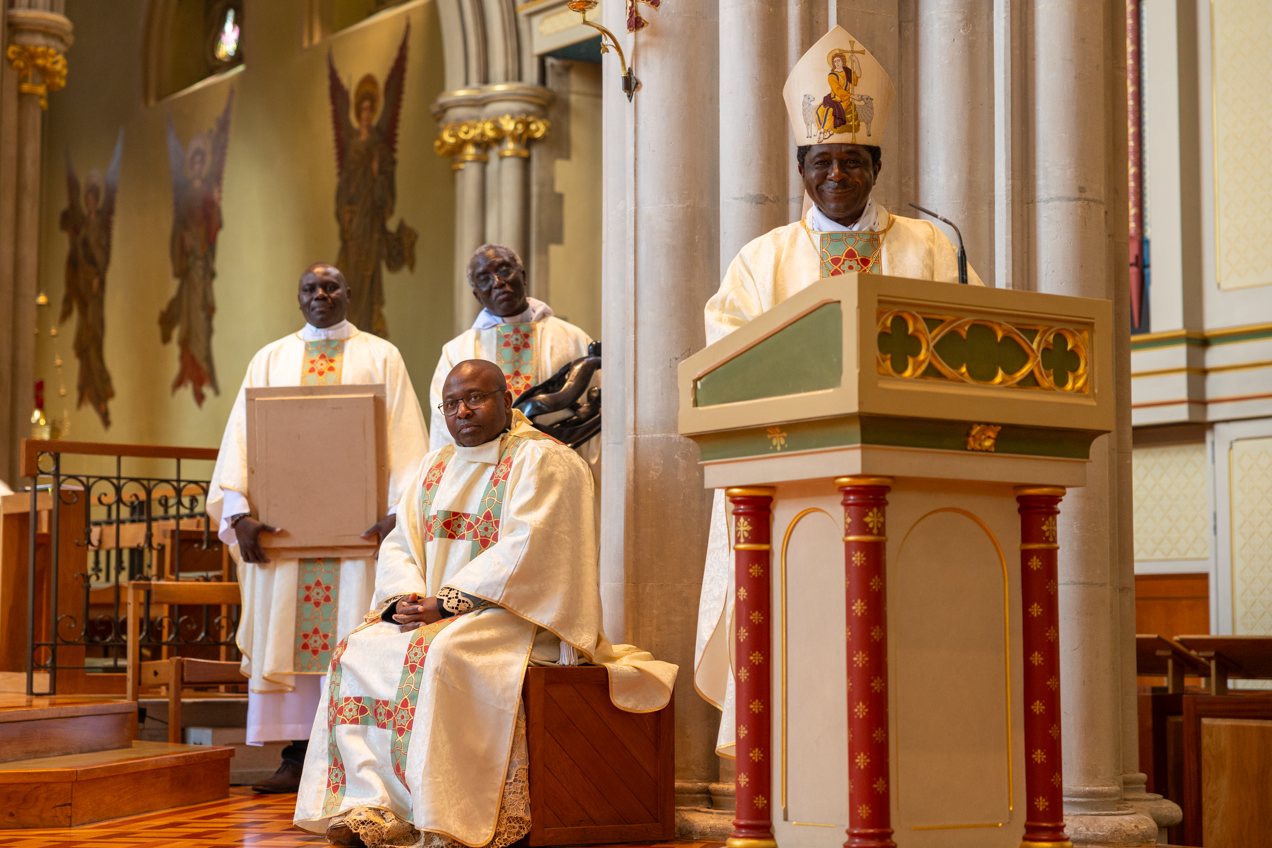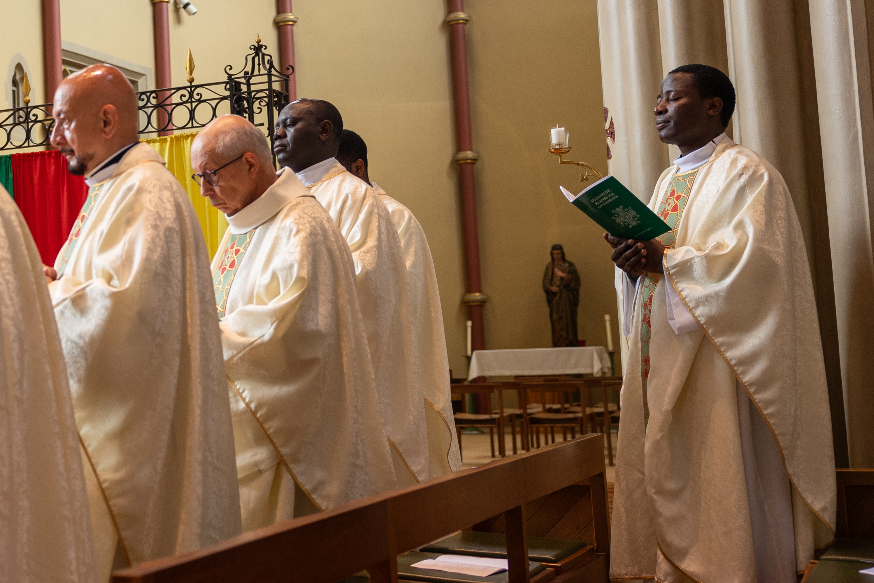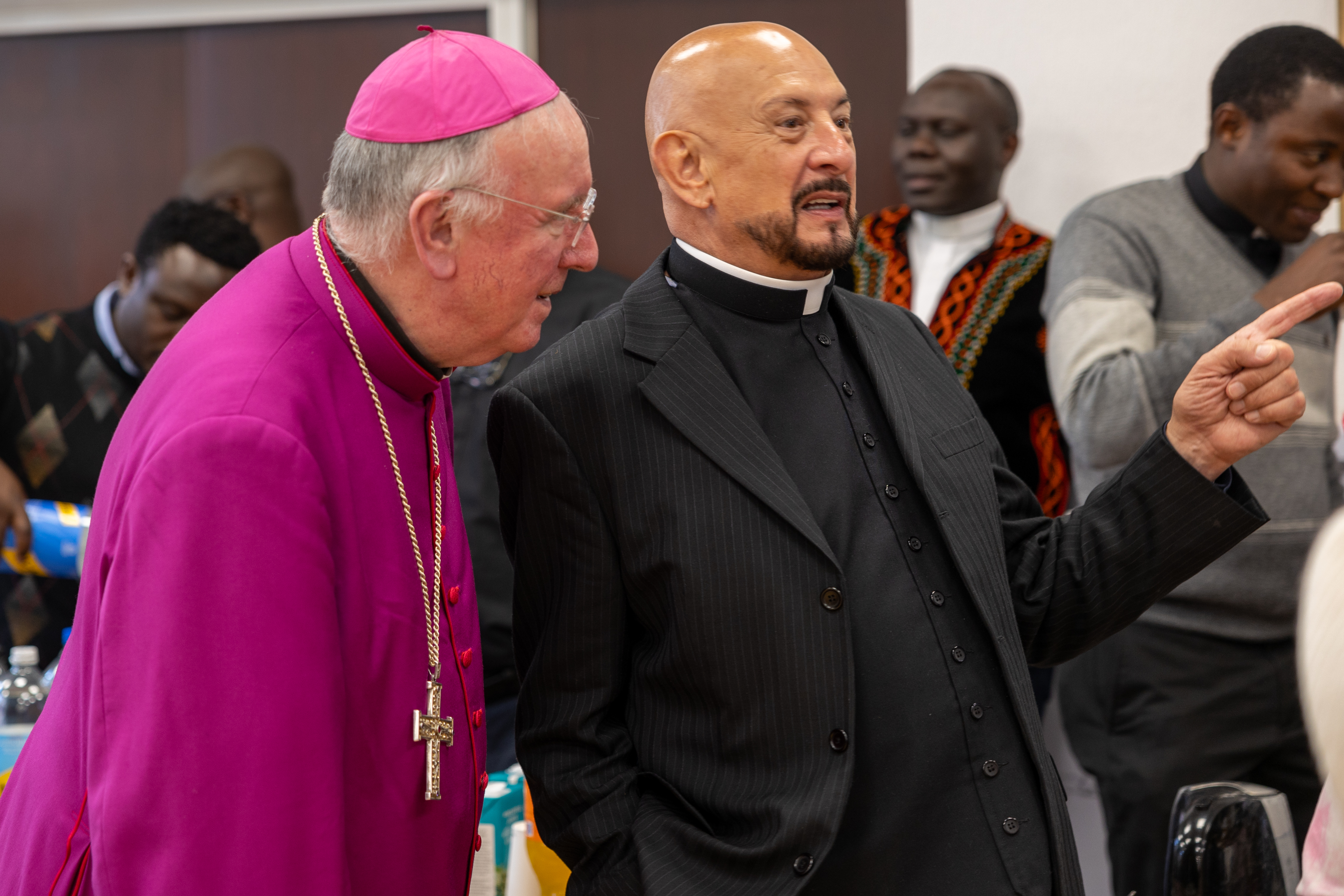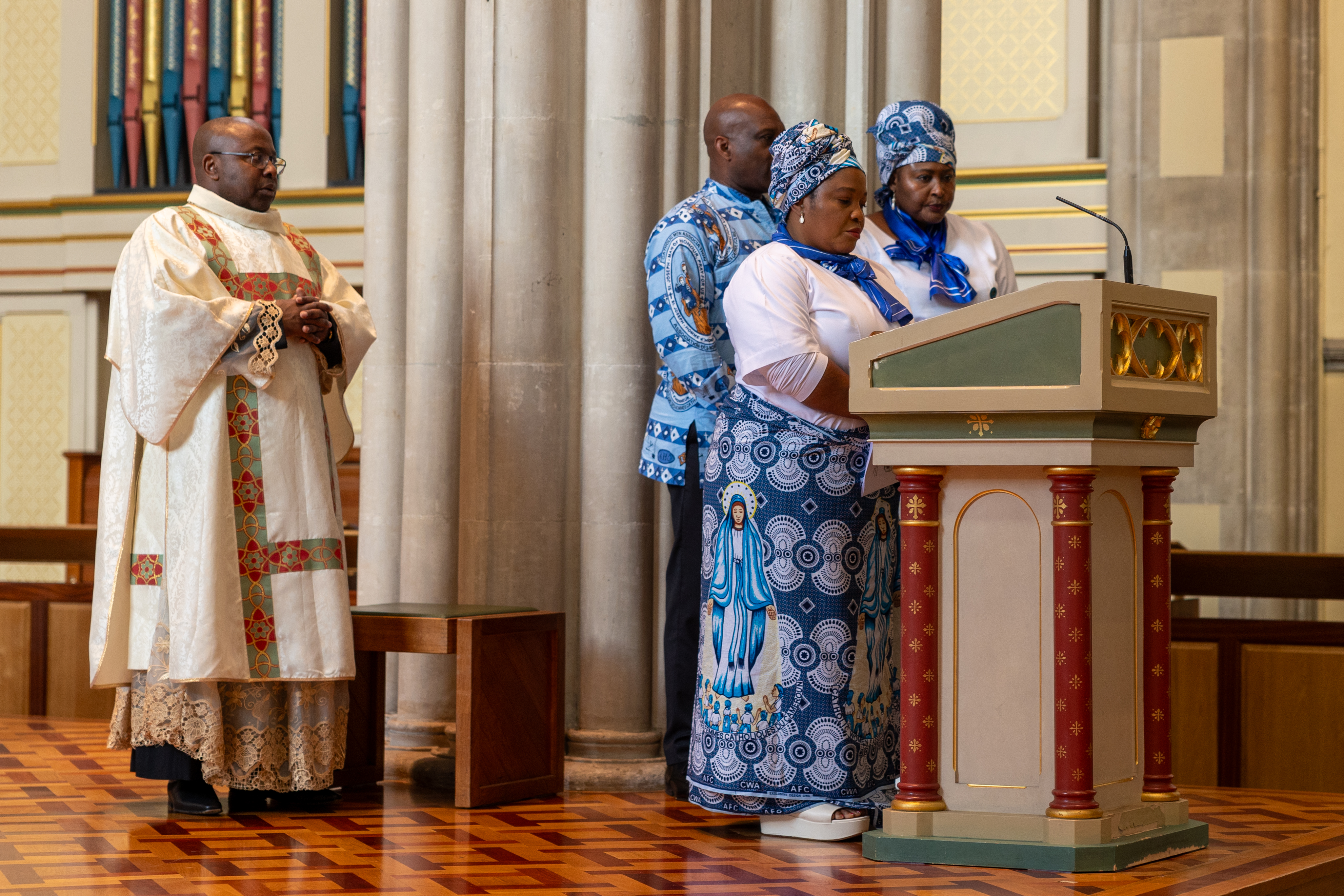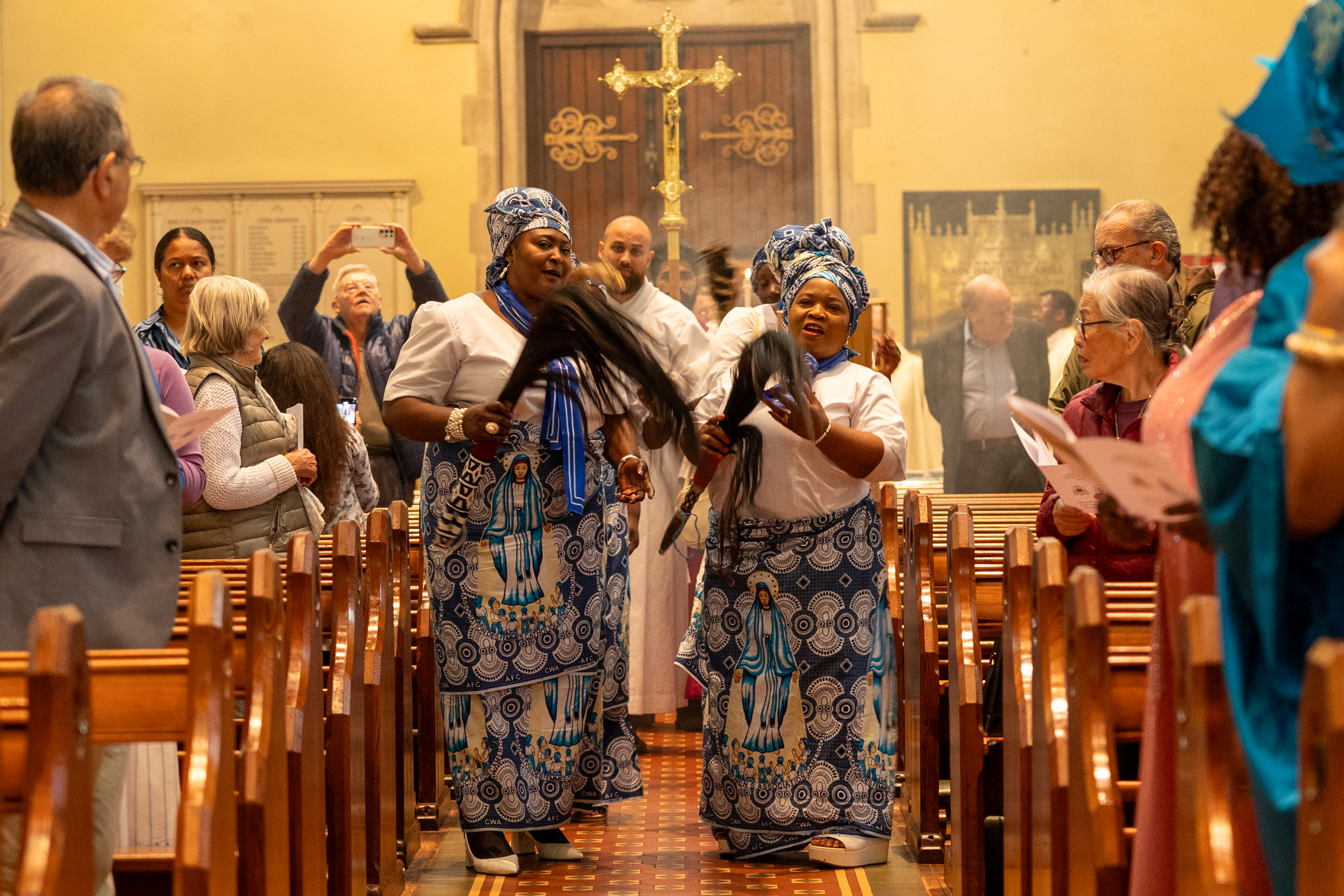 On Saturday, Bishop Philip welcomed Archbishop Andrew Nkea of Bamenda and Fr Bernardine Nsom to celebrate the Golden Jubilee Link between the Diocese of Portsmouth and the Archdiocese of Bamenda. Father Ron Hishon and Father Peter Codd attended the celebrations. They were the first missionary priests from Portsmouth who went out to Bamenda in the 1970's to spread the Gospel along with Father Frank Isherwood (RIP). Many Cameroonians from across the Diocese joined in the joyful and colourful celebration of singing, dancing, drumming whilst enjoying its delicious food.