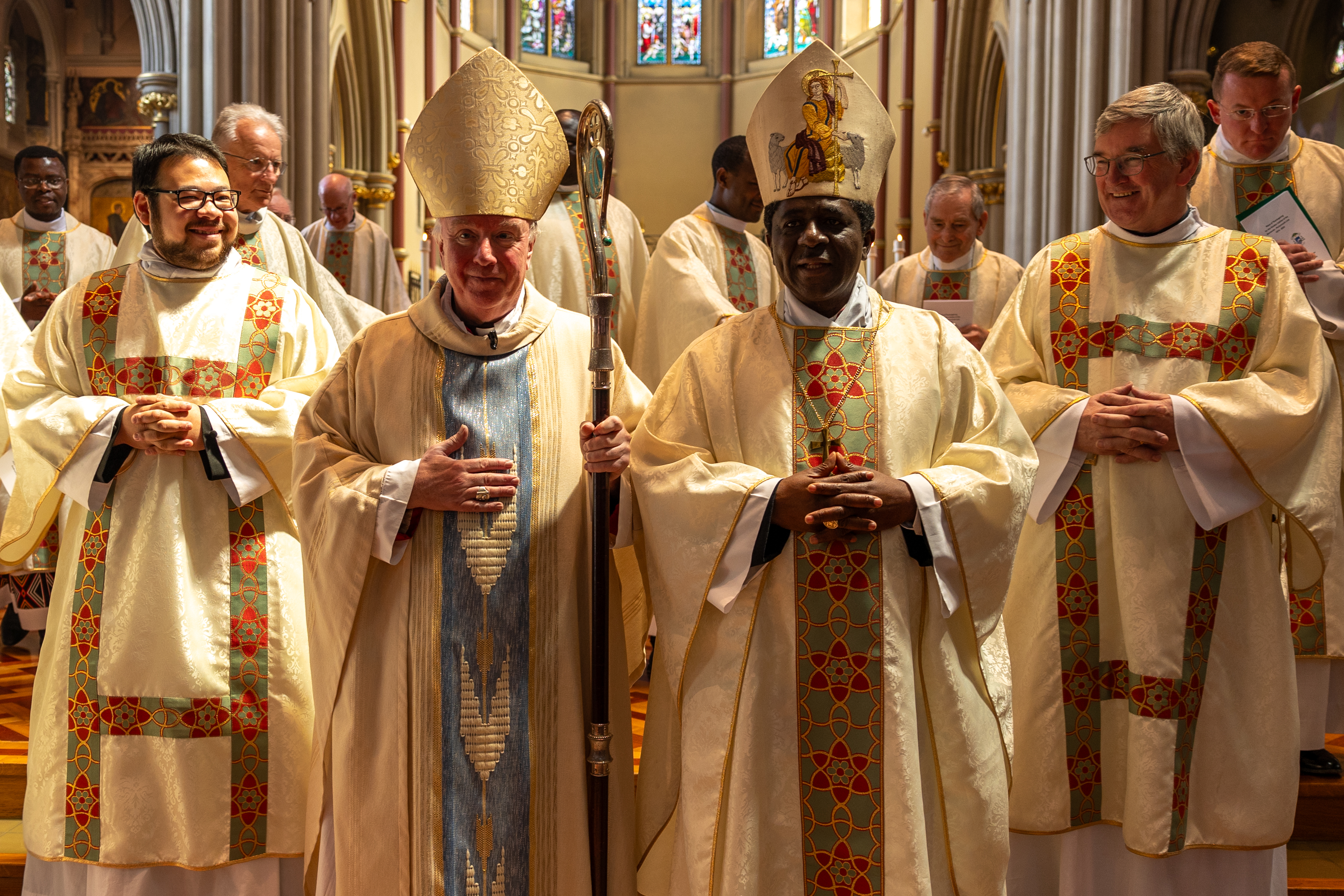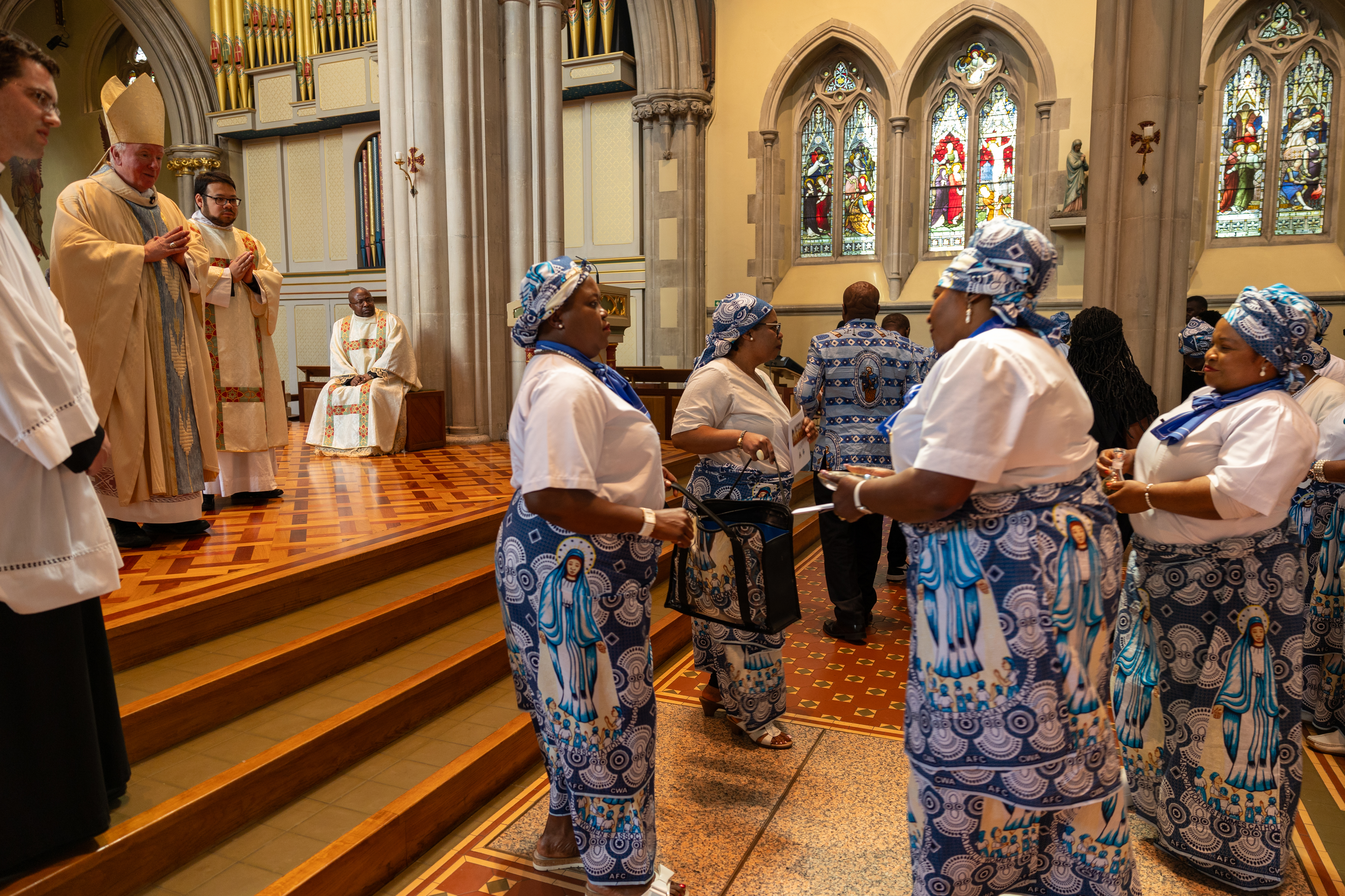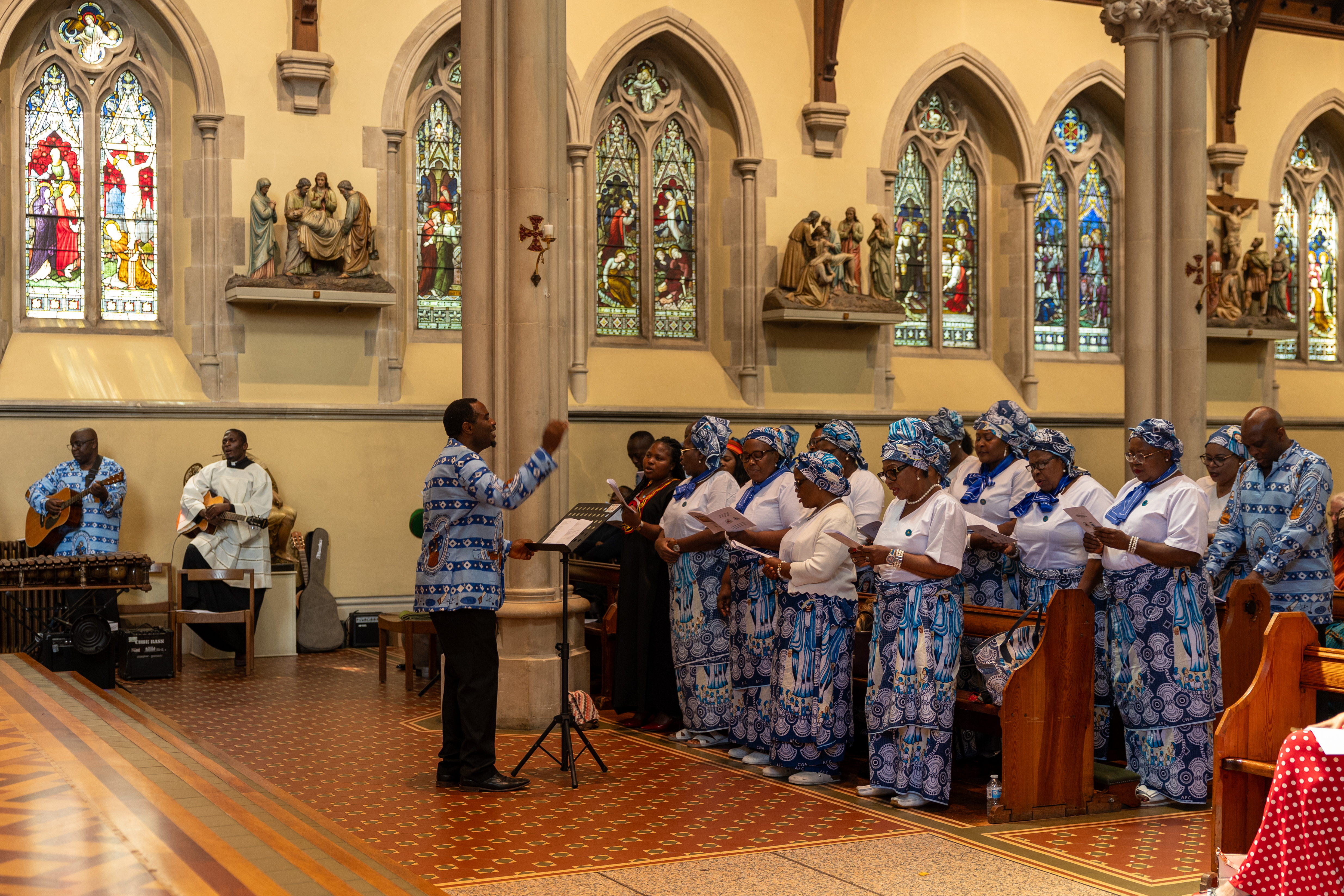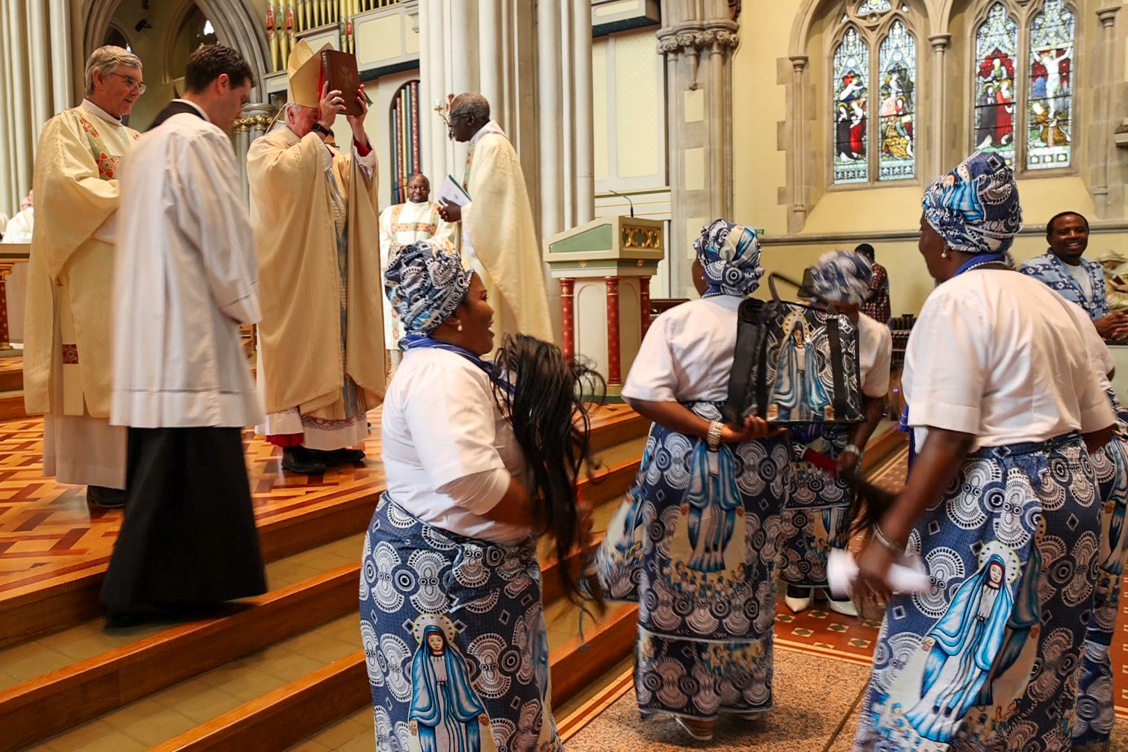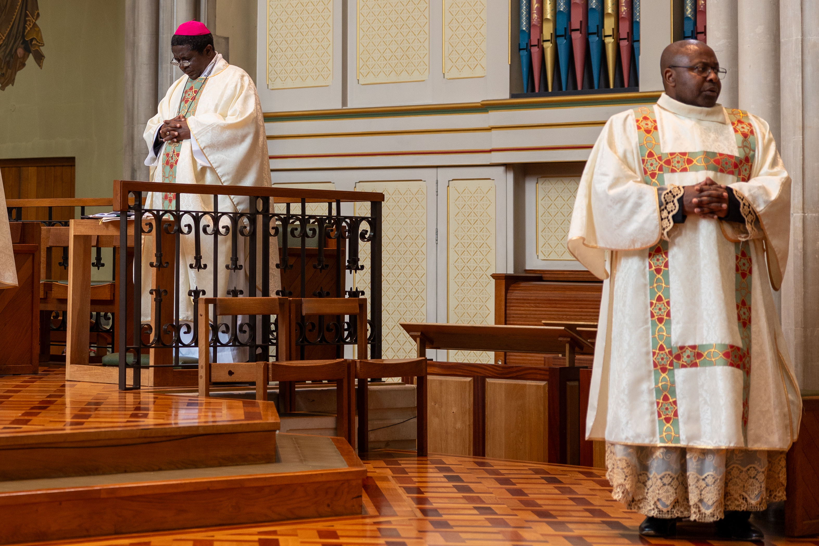 On Saturday, Bishop Philip welcomed Archbishop Andrew Nkea of Bamenda and Fr Bernardine Nsom to celebrate the Golden Jubilee Link between the Diocese of Portsmouth and the Archdiocese of Bamenda. Father Ron Hishon and Father Peter Codd attended the celebrations. They were the first missionary priests from Portsmouth who went out to Bamenda in the 1970's to spread the Gospel along with Father Frank Isherwood (RIP). Many Cameroonians from across the Diocese joined in the joyful and colourful celebration of singing, dancing, drumming whilst enjoying its delicious food.