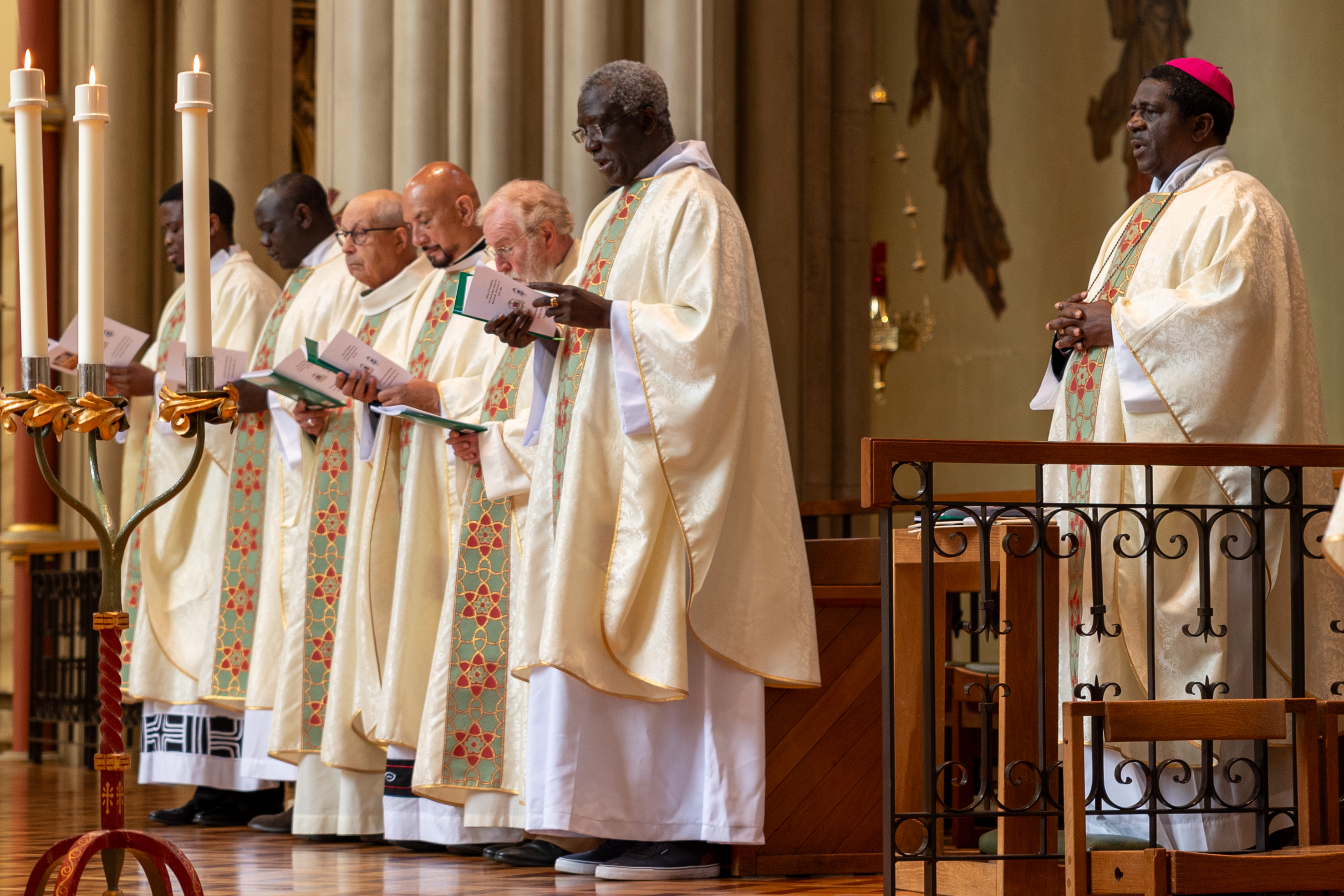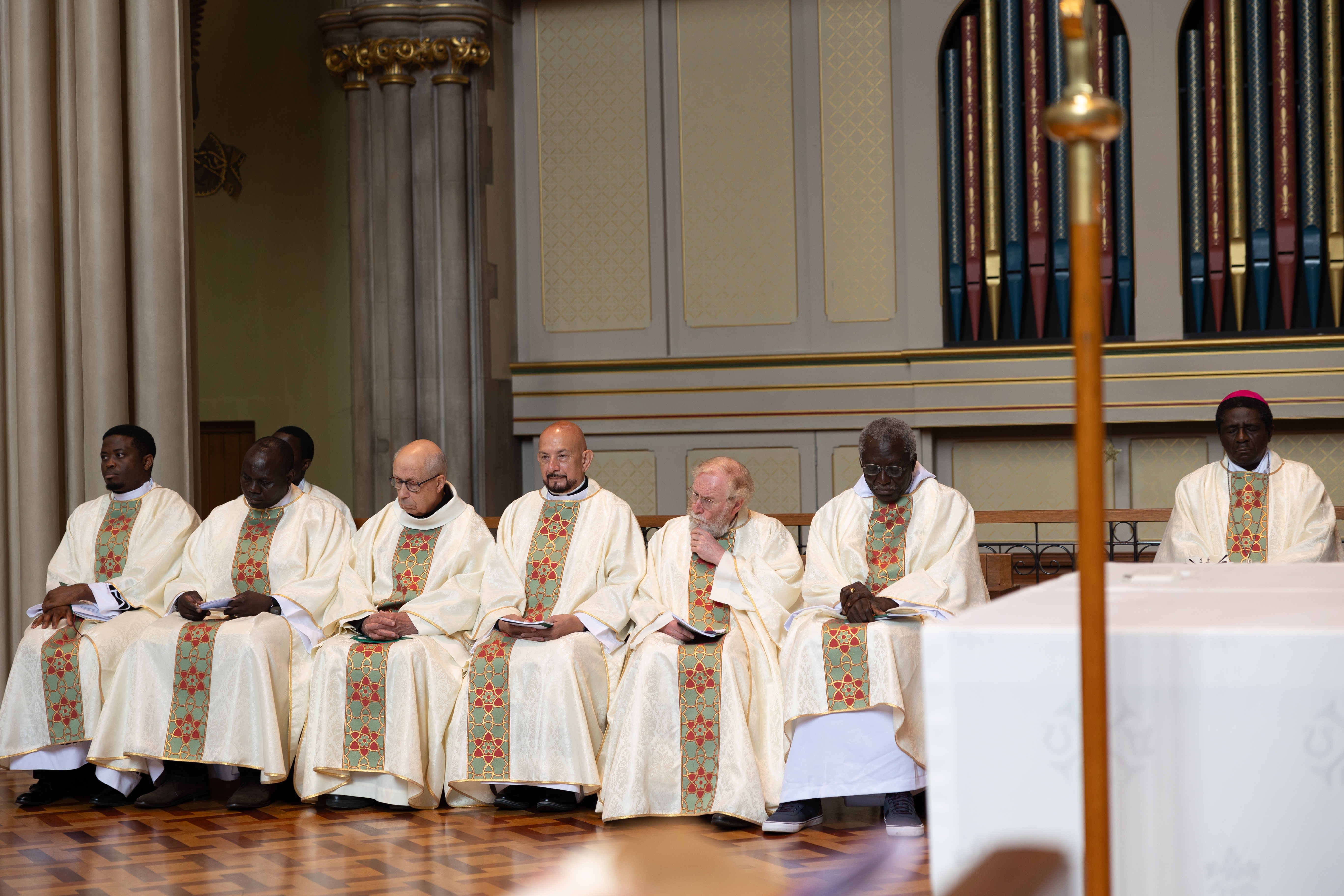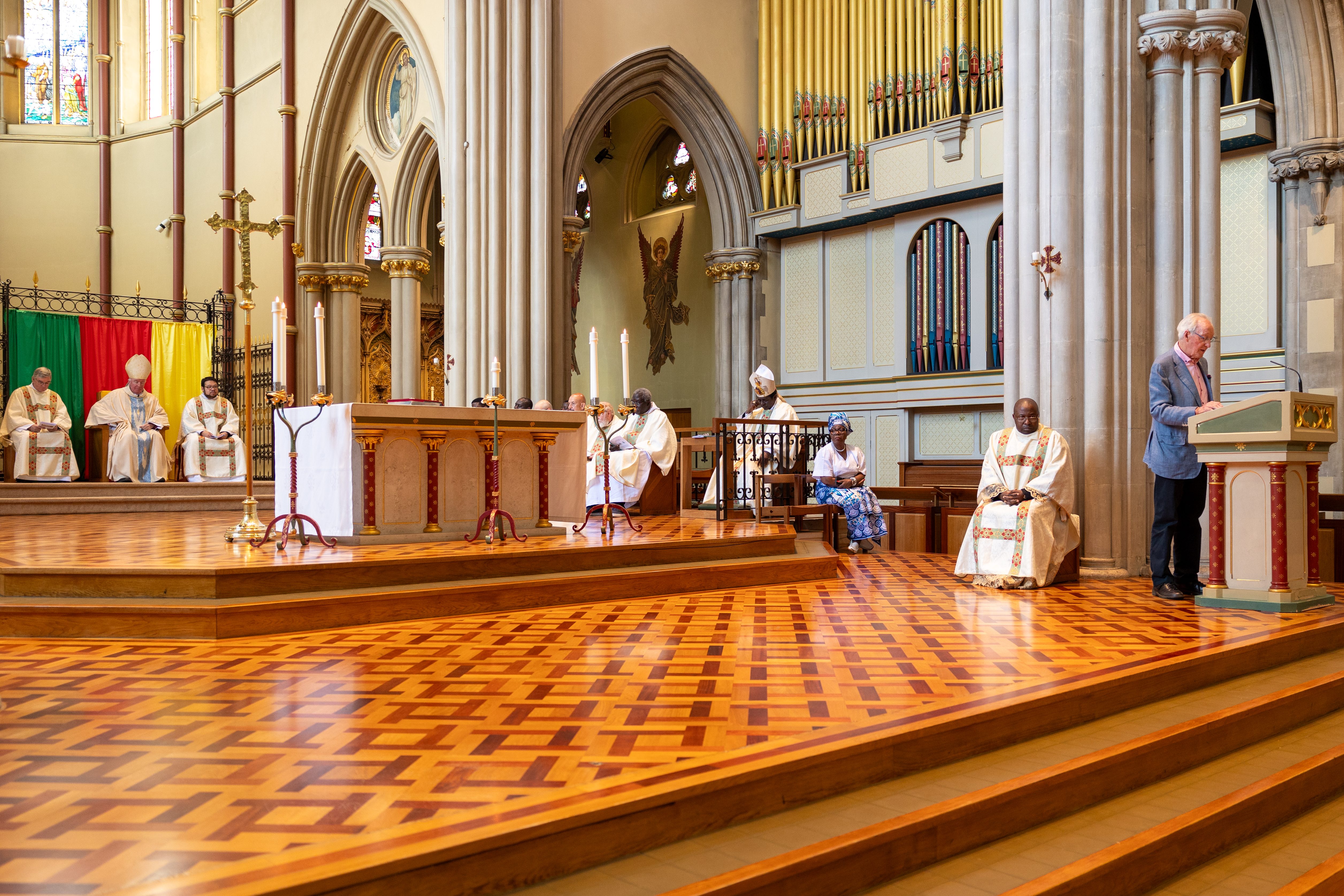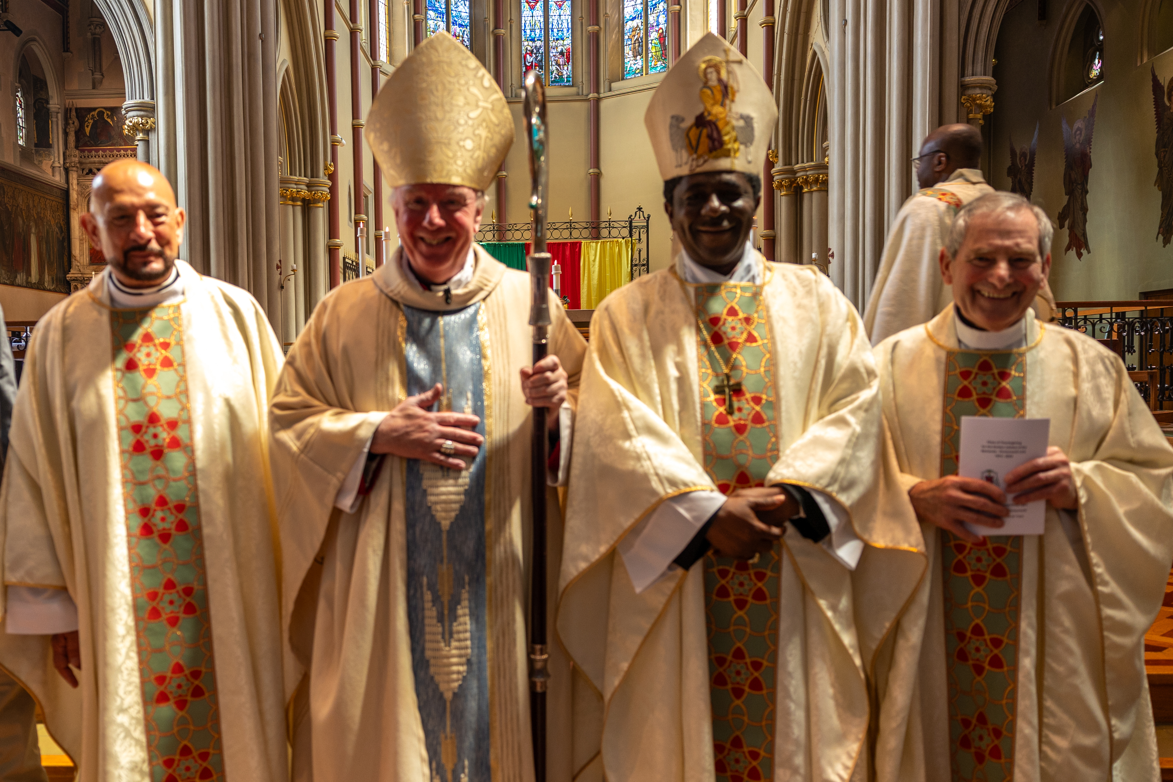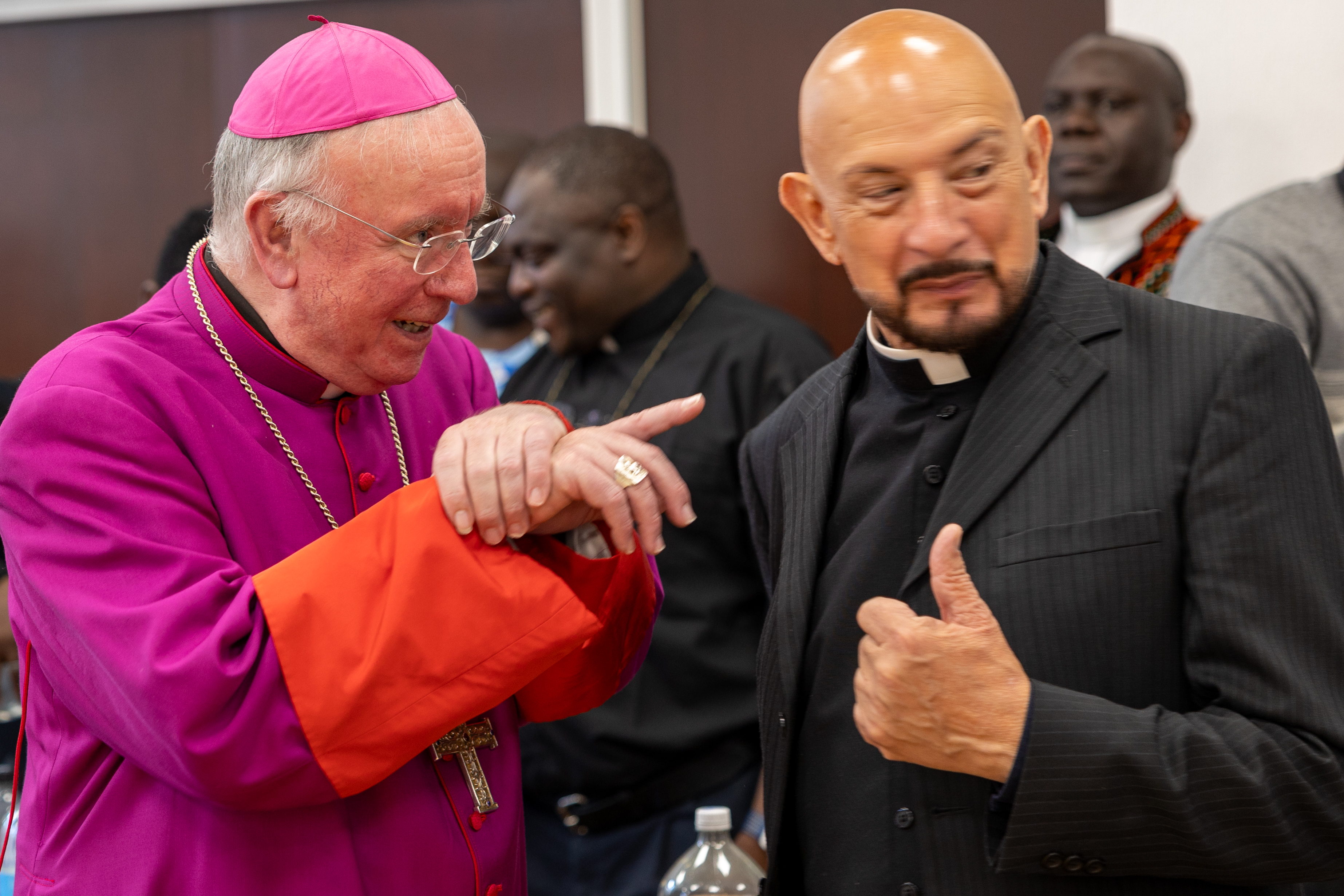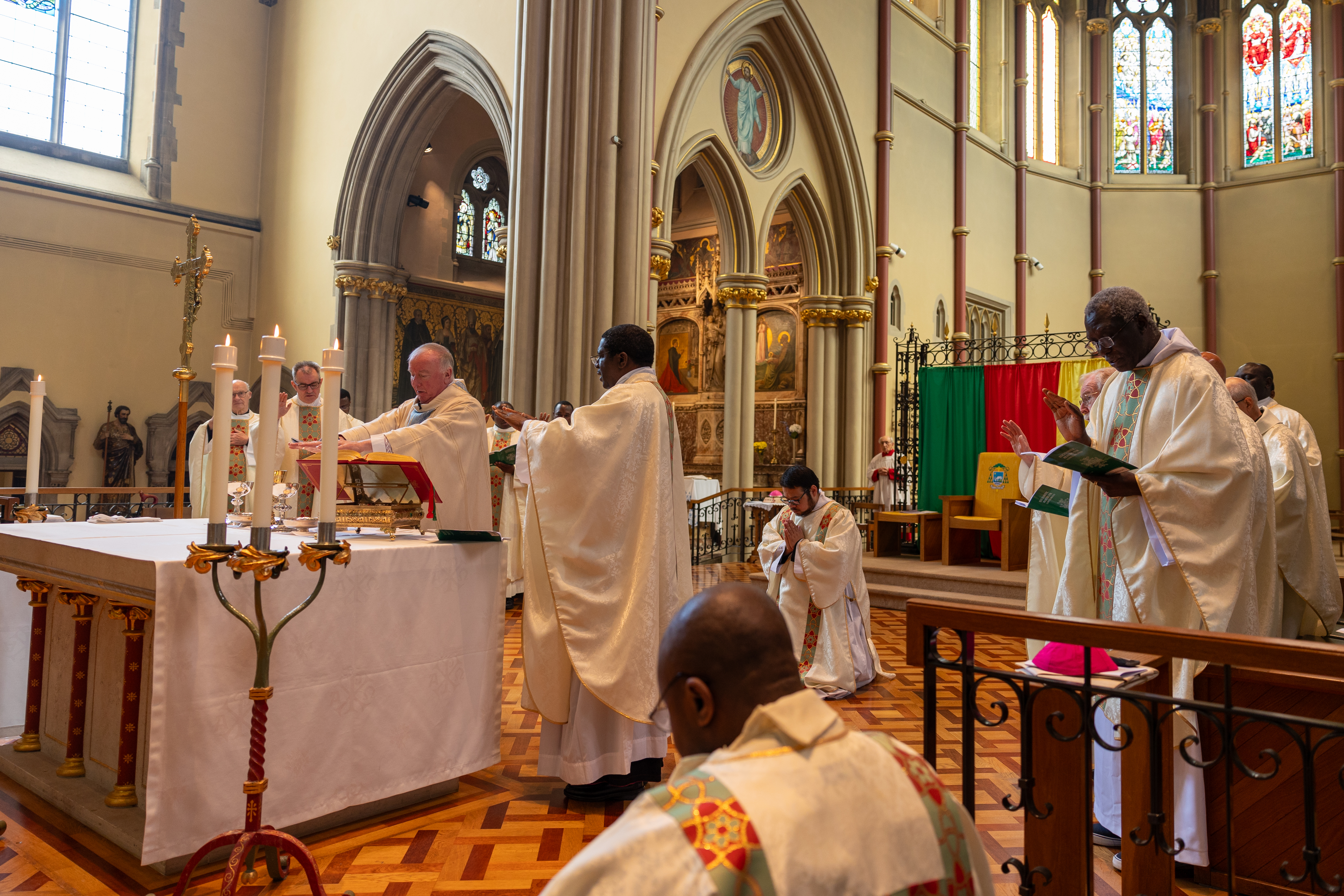 On Saturday, Bishop Philip welcomed Archbishop Andrew Nkea of Bamenda and Fr Bernardine Nsom to celebrate the Golden Jubilee Link between the Diocese of Portsmouth and the Archdiocese of Bamenda. Father Ron Hishon and Father Peter Codd attended the celebrations. They were the first missionary priests from Portsmouth who went out to Bamenda in the 1970's to spread the Gospel along with Father Frank Isherwood (RIP). Many Cameroonians from across the Diocese joined in the joyful and colourful celebration of singing, dancing, drumming whilst enjoying its delicious food.