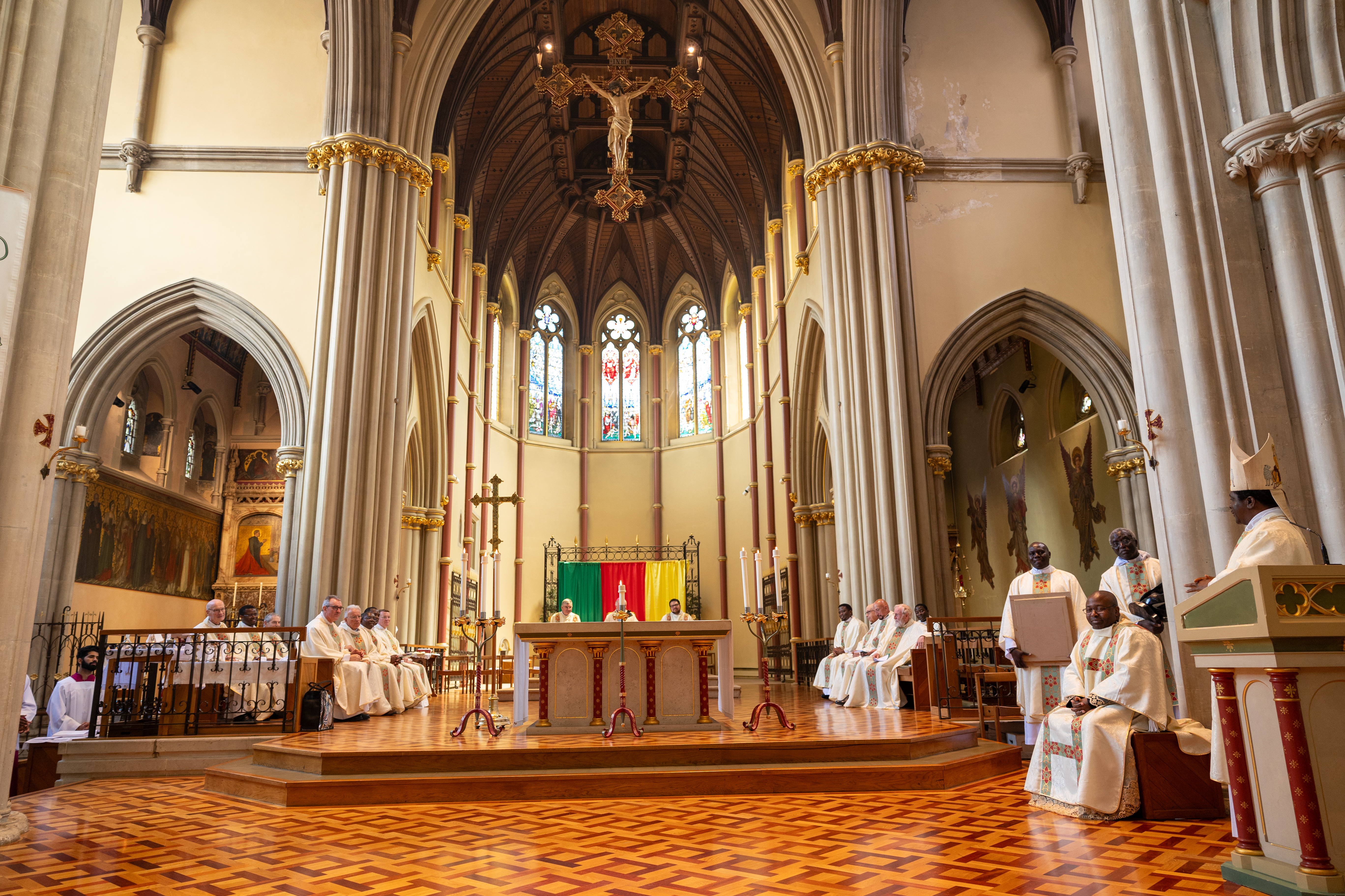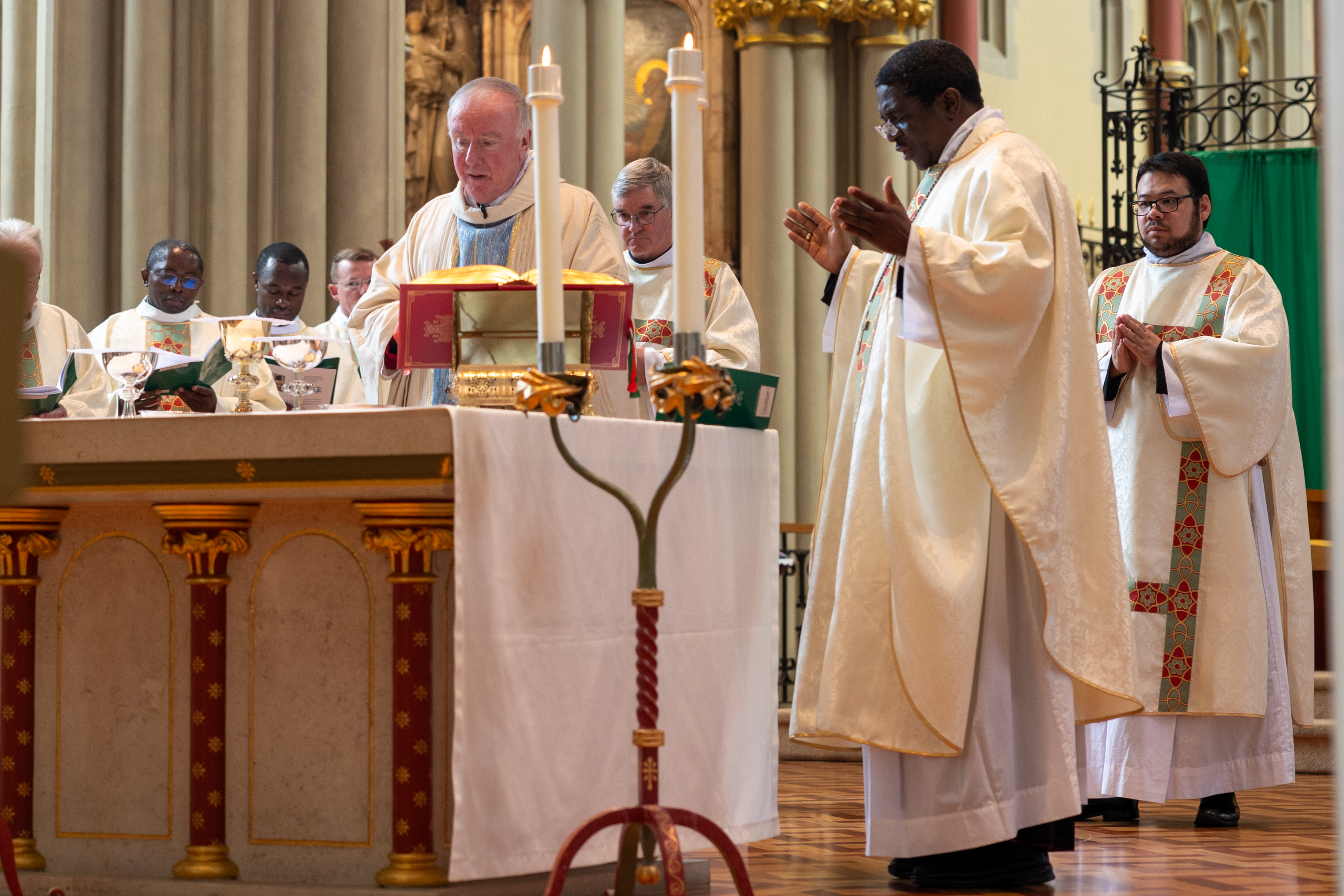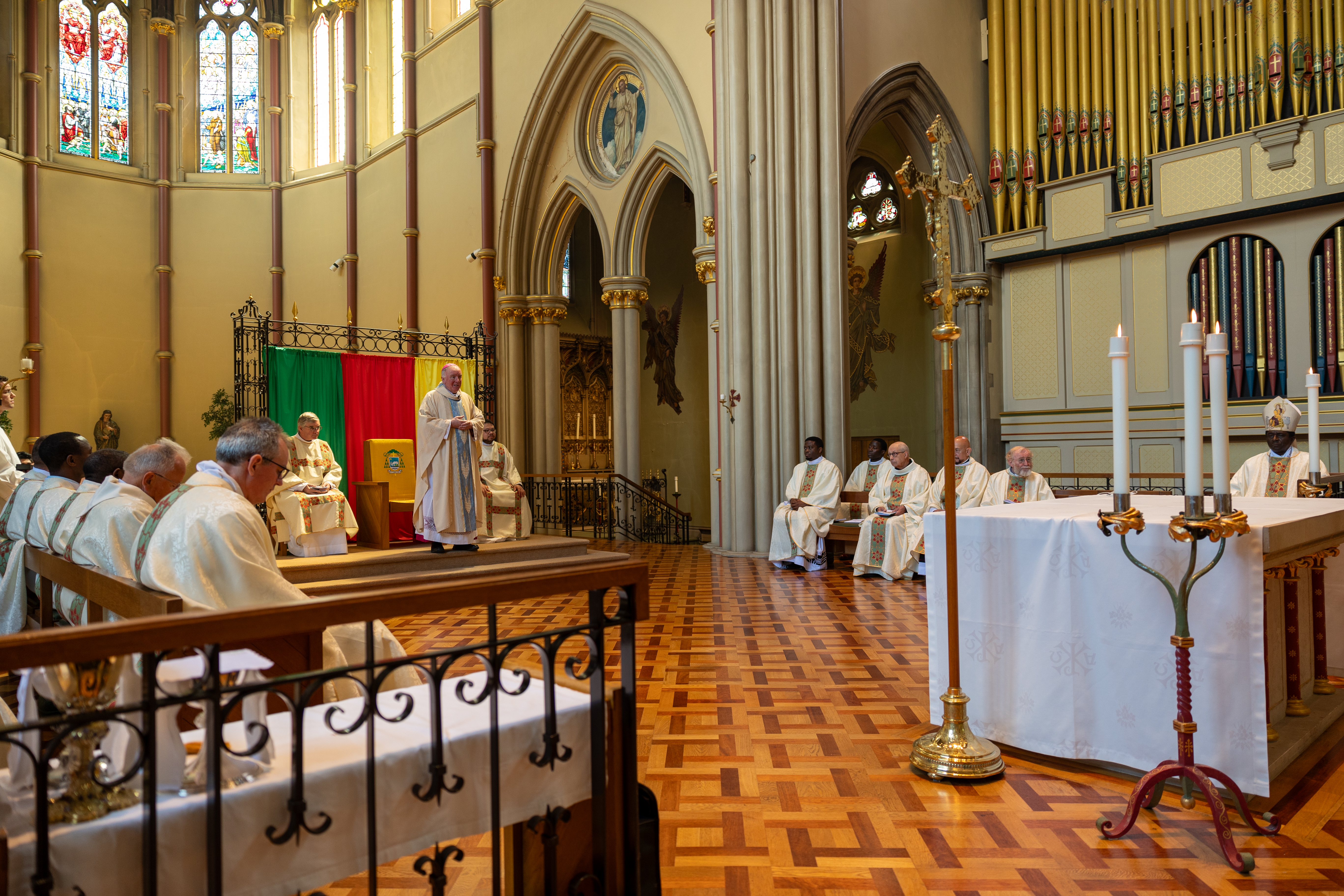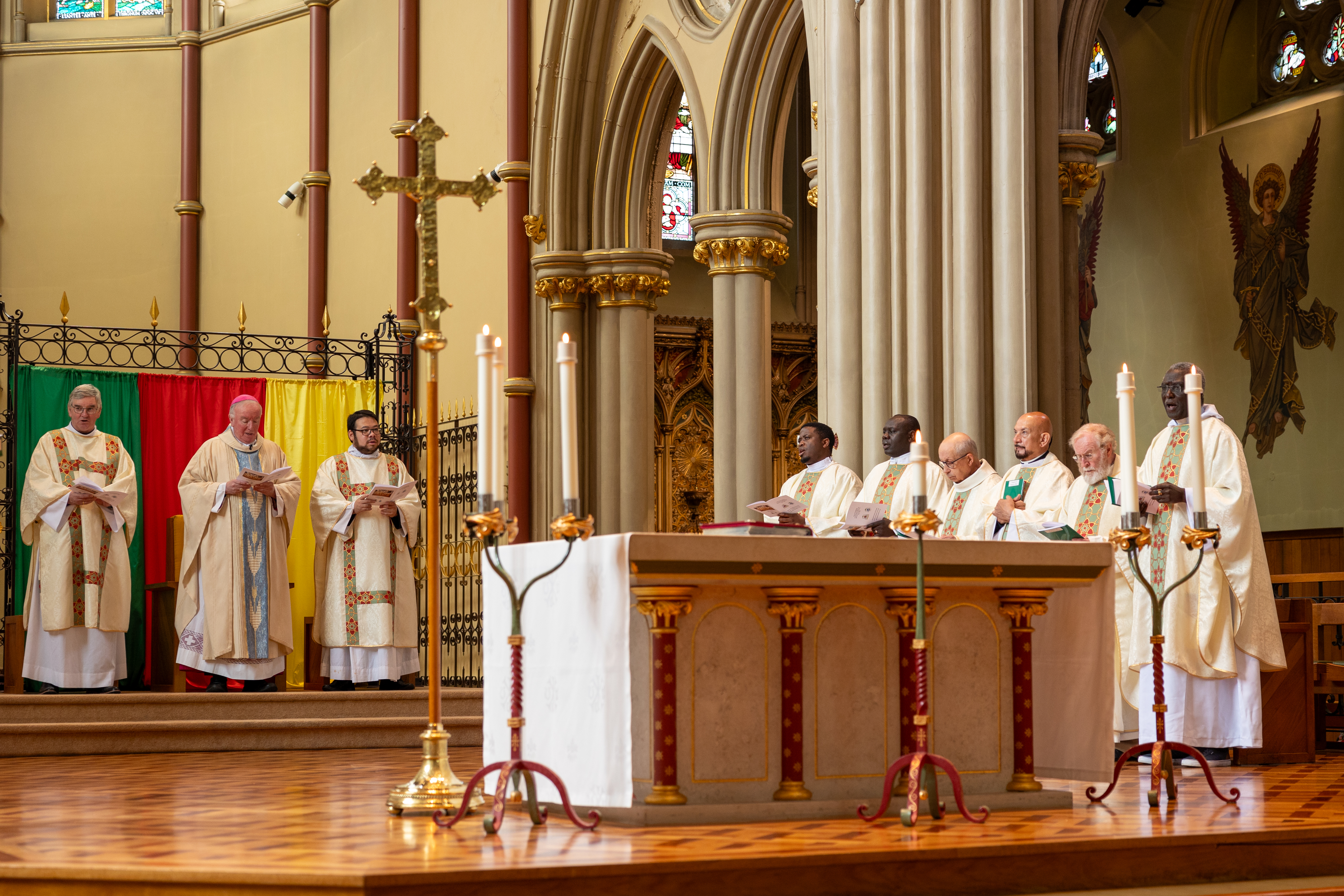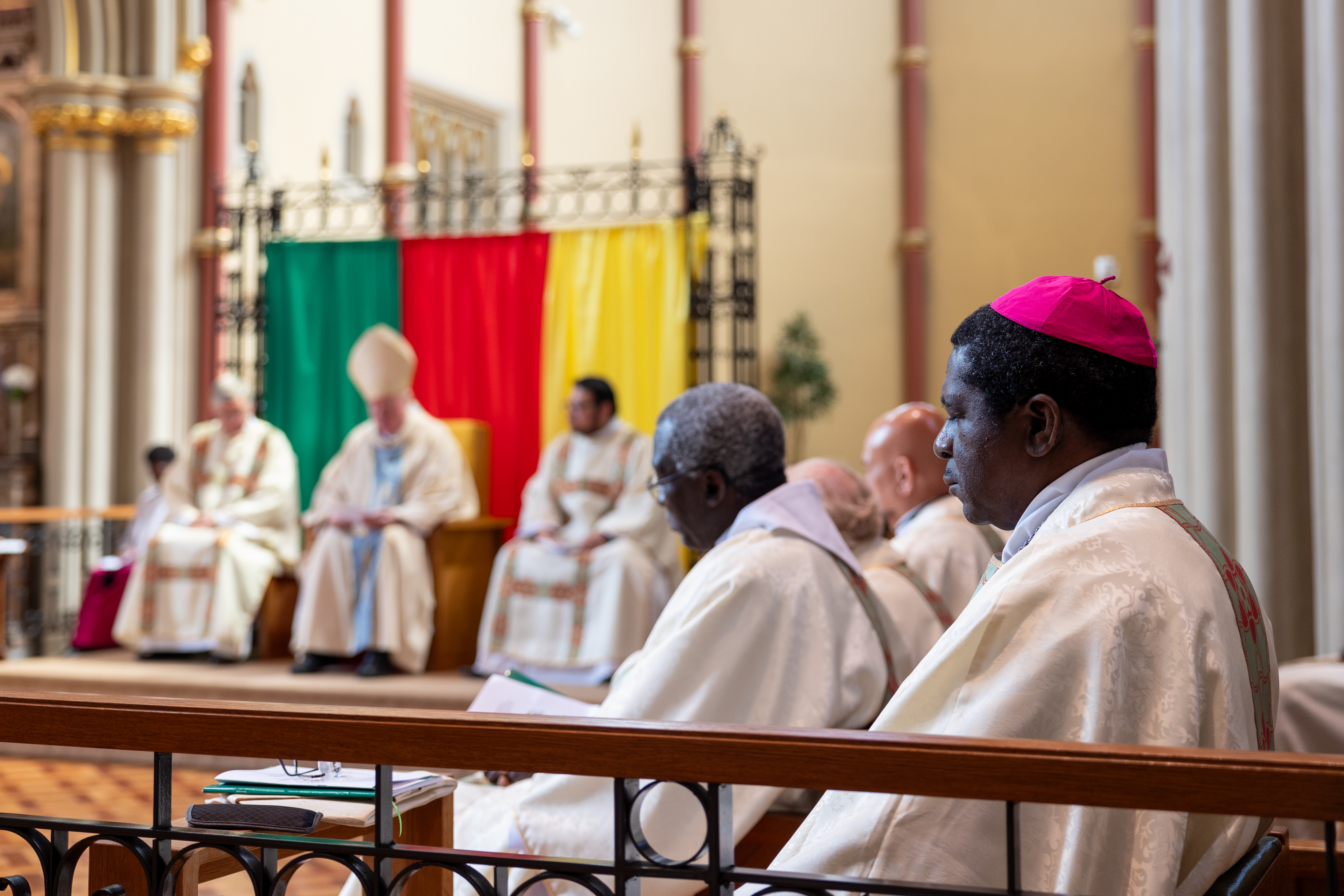 On Saturday, Bishop Philip welcomed Archbishop Andrew Nkea of Bamenda and Fr Bernardine Nsom to celebrate the Golden Jubilee Link between the Diocese of Portsmouth and the Archdiocese of Bamenda. Father Ron Hishon and Father Peter Codd attended the celebrations. They were the first missionary priests from Portsmouth who went out to Bamenda in the 1970's to spread the Gospel along with Father Frank Isherwood (RIP). Many Cameroonians from across the Diocese joined in the joyful and colourful celebration of singing, dancing, drumming whilst enjoying its delicious food.