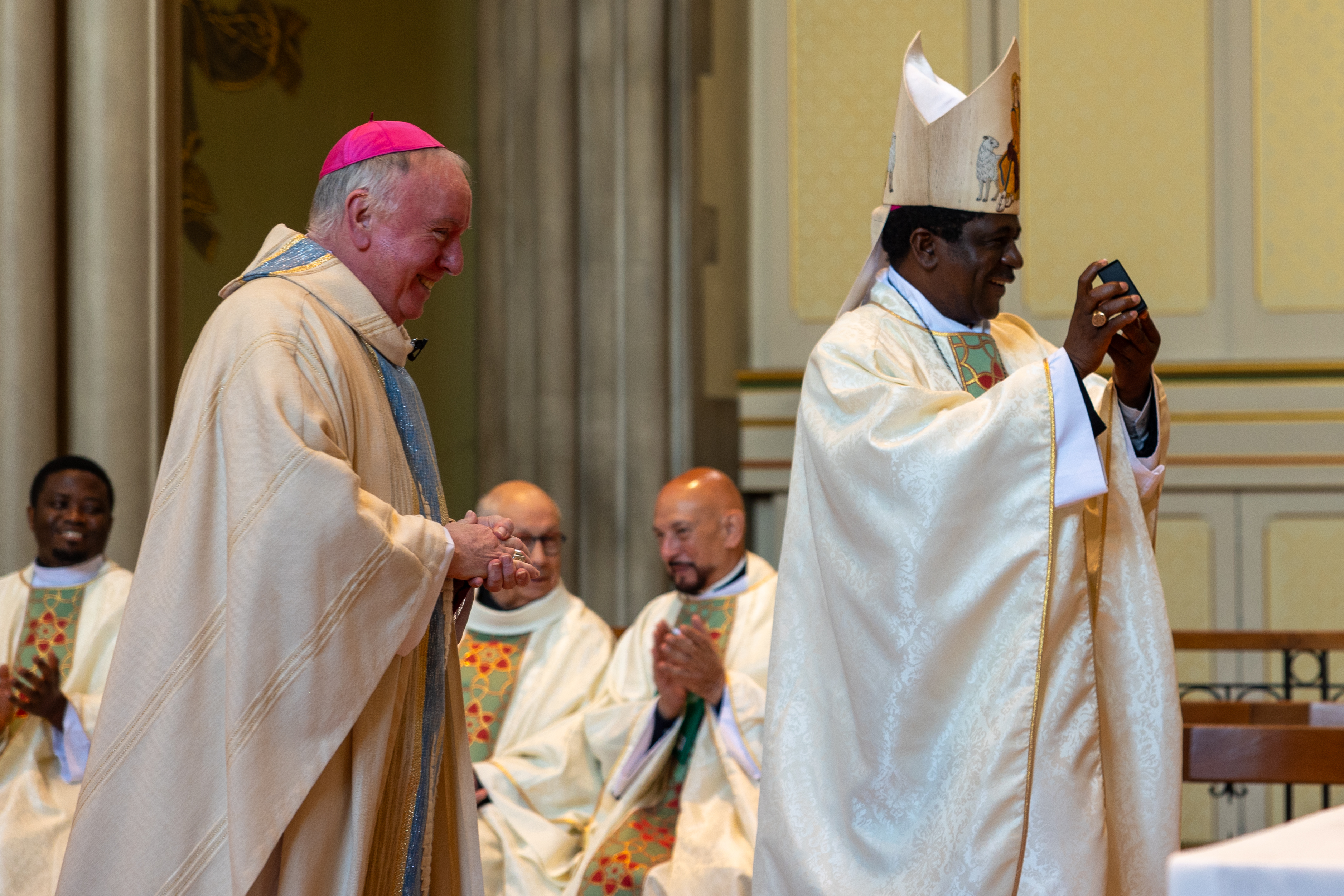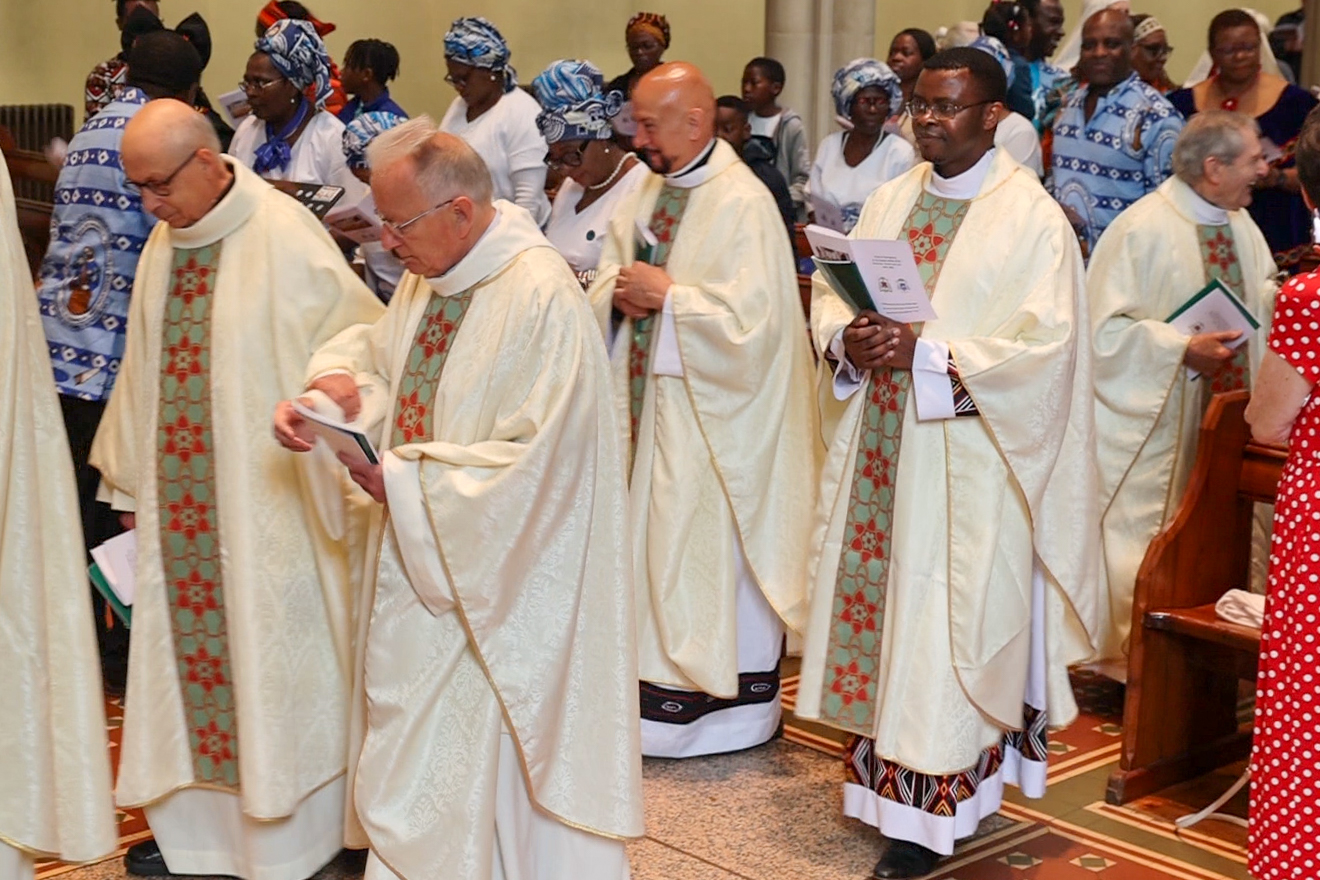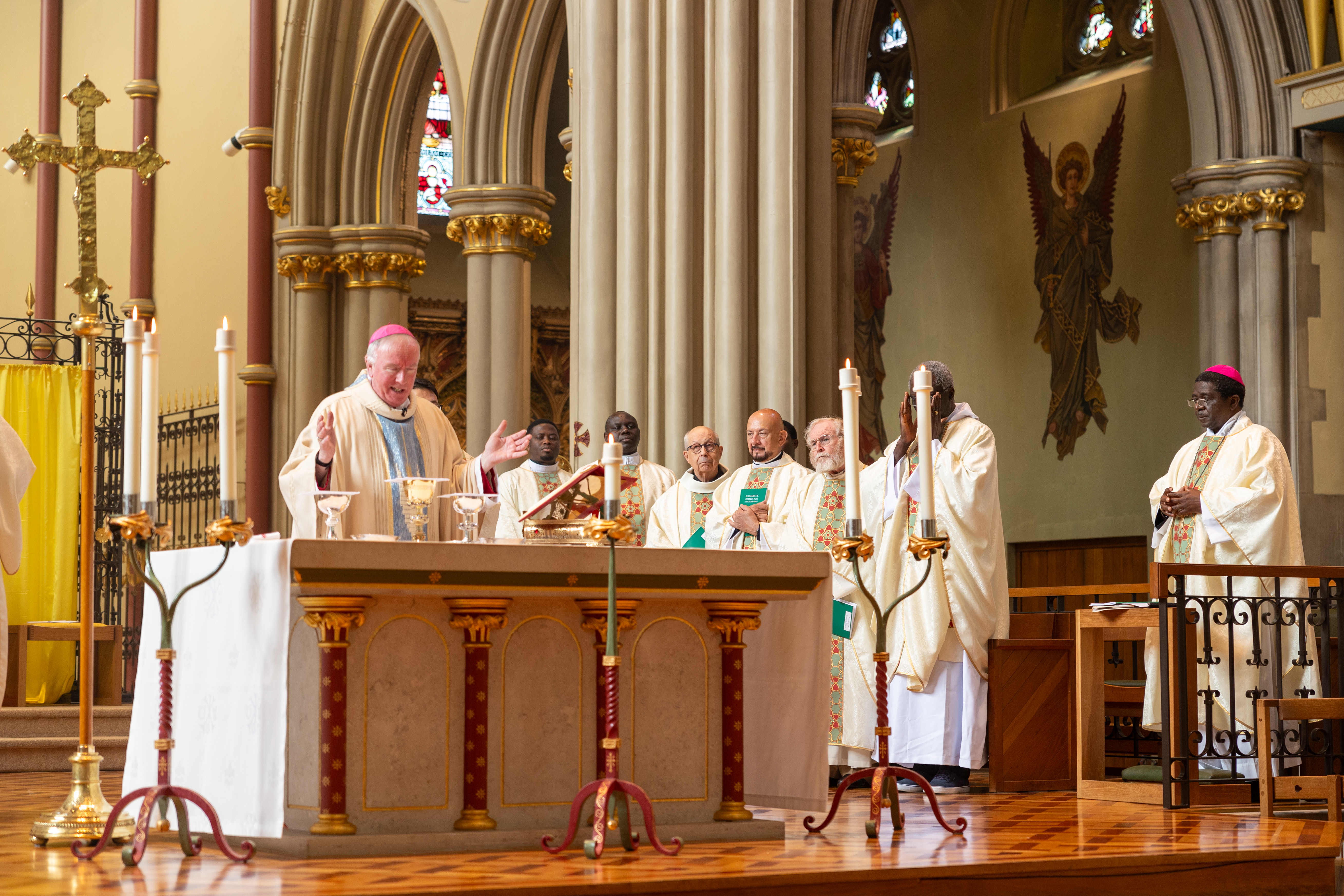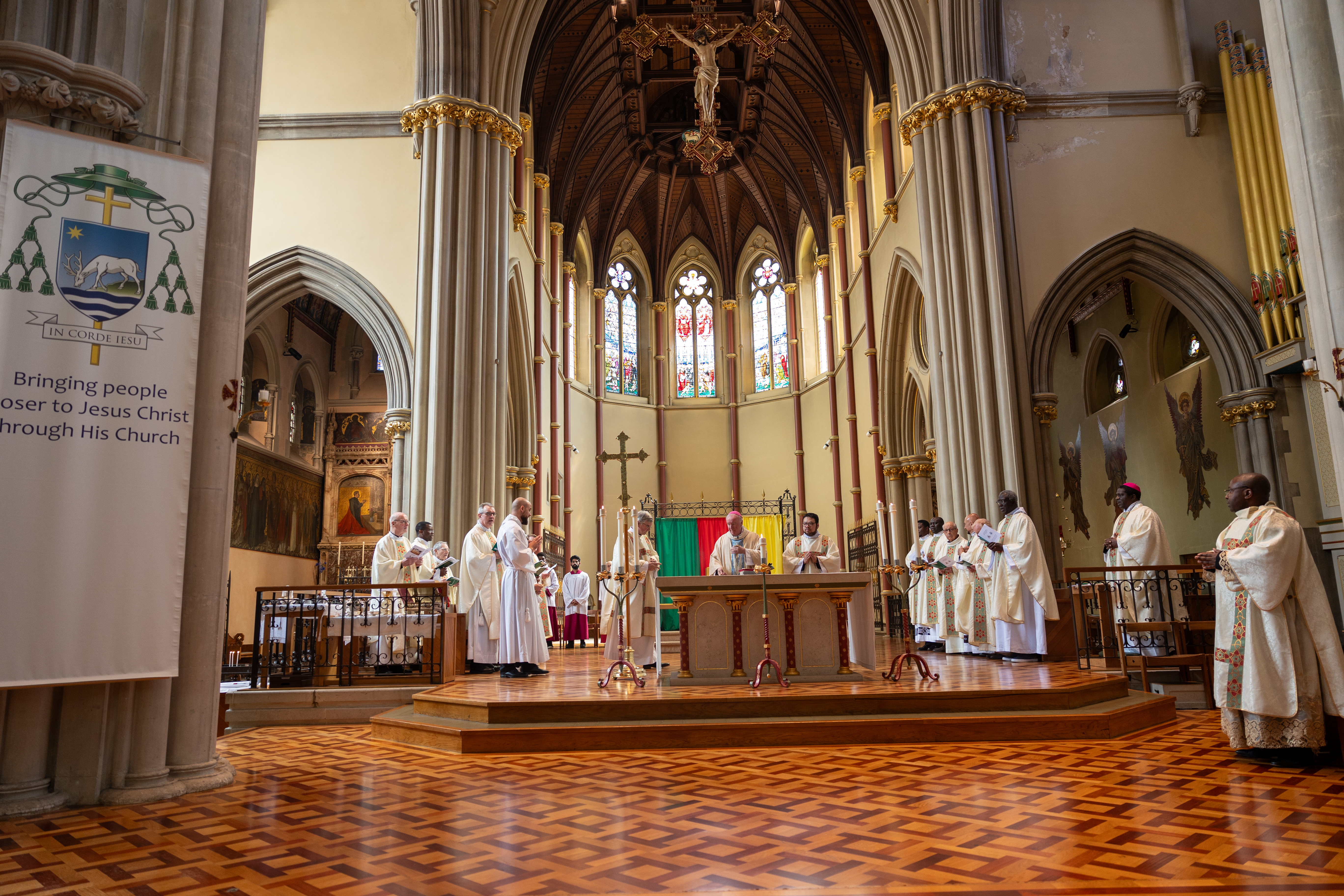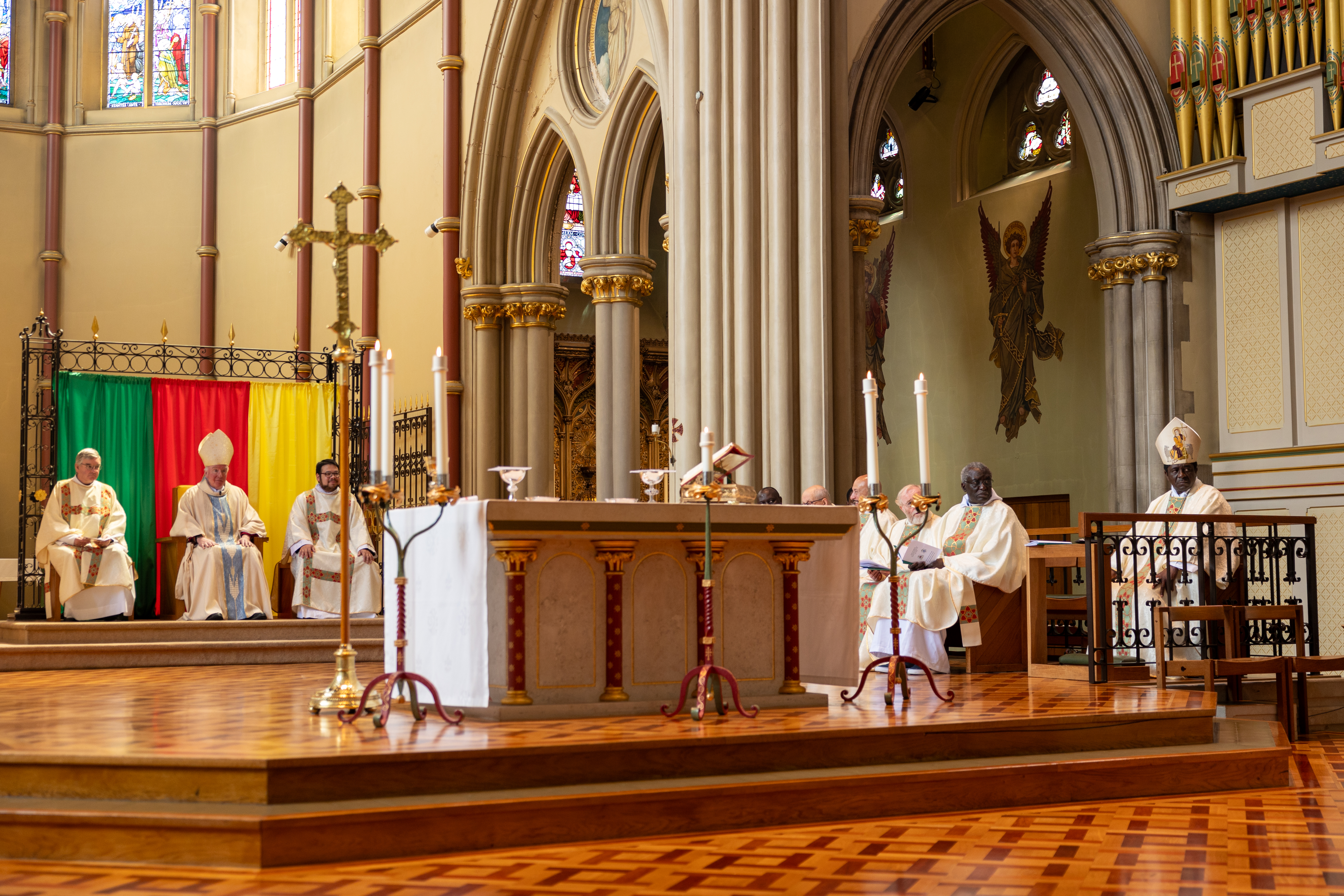 On Saturday, Bishop Philip welcomed Archbishop Andrew Nkea of Bamenda and Fr Bernardine Nsom to celebrate the Golden Jubilee Link between the Diocese of Portsmouth and the Archdiocese of Bamenda. Father Ron Hishon and Father Peter Codd attended the celebrations. They were the first missionary priests from Portsmouth who went out to Bamenda in the 1970's to spread the Gospel along with Father Frank Isherwood (RIP). Many Cameroonians from across the Diocese joined in the joyful and colourful celebration of singing, dancing, drumming whilst enjoying its delicious food.