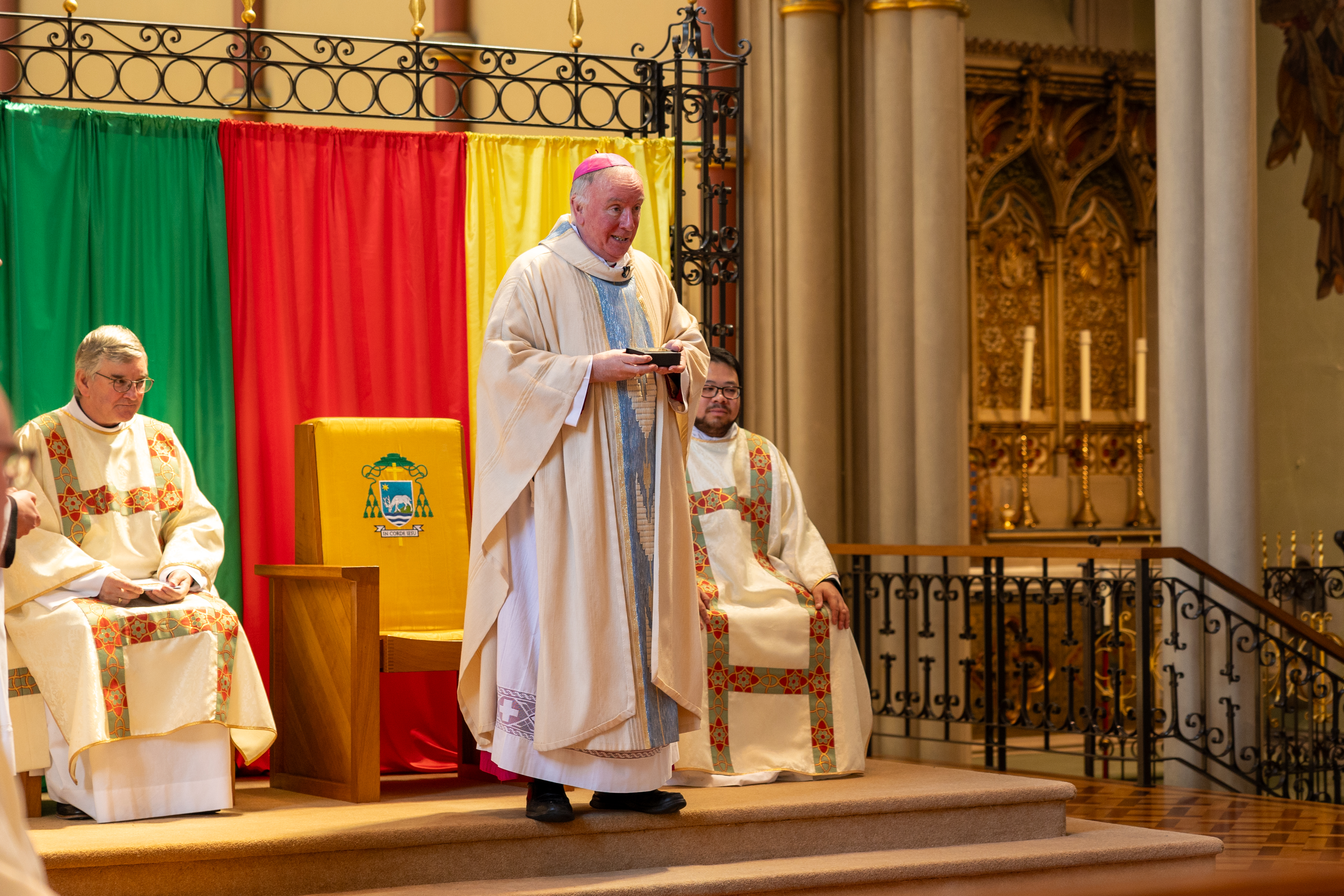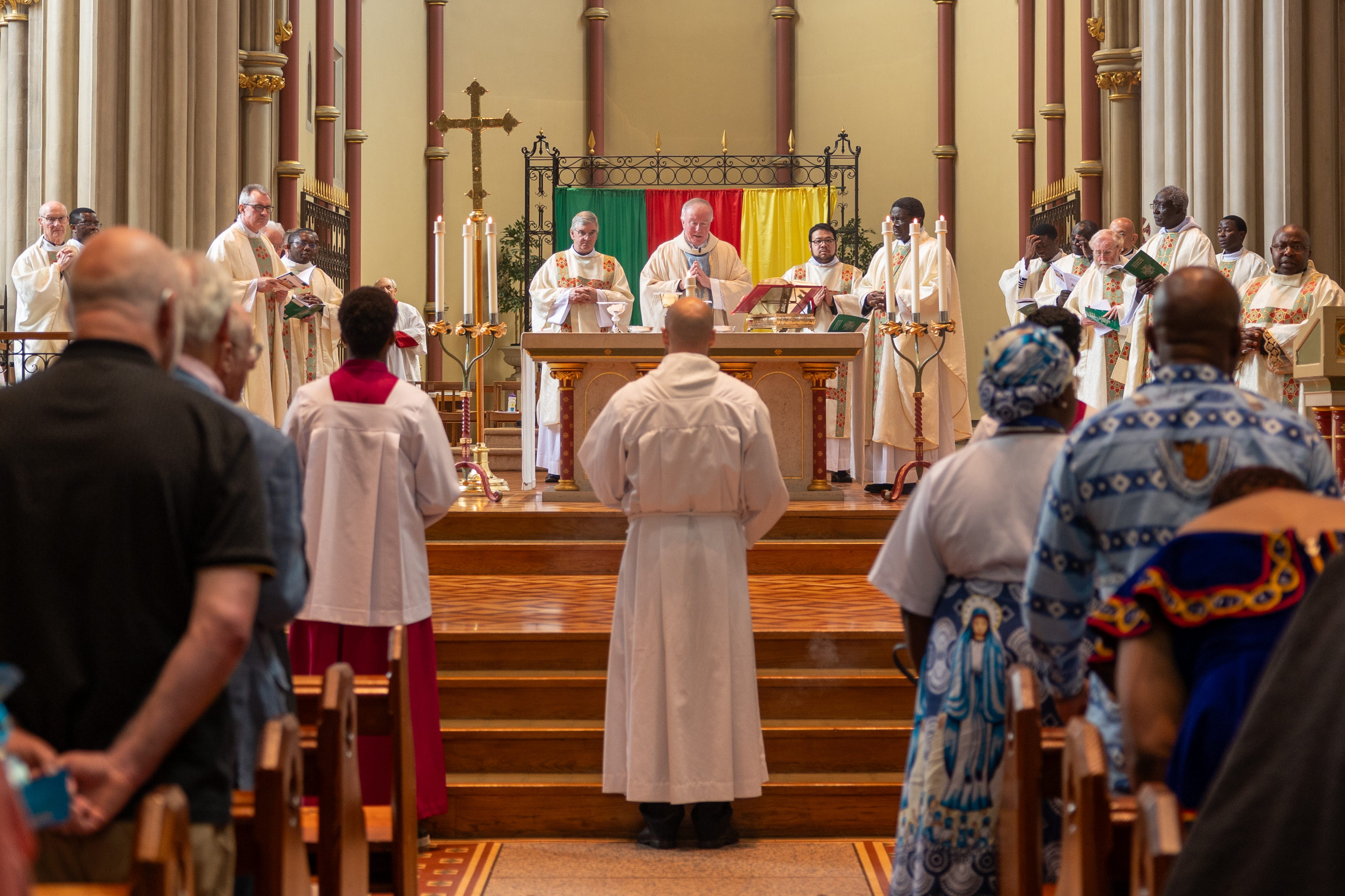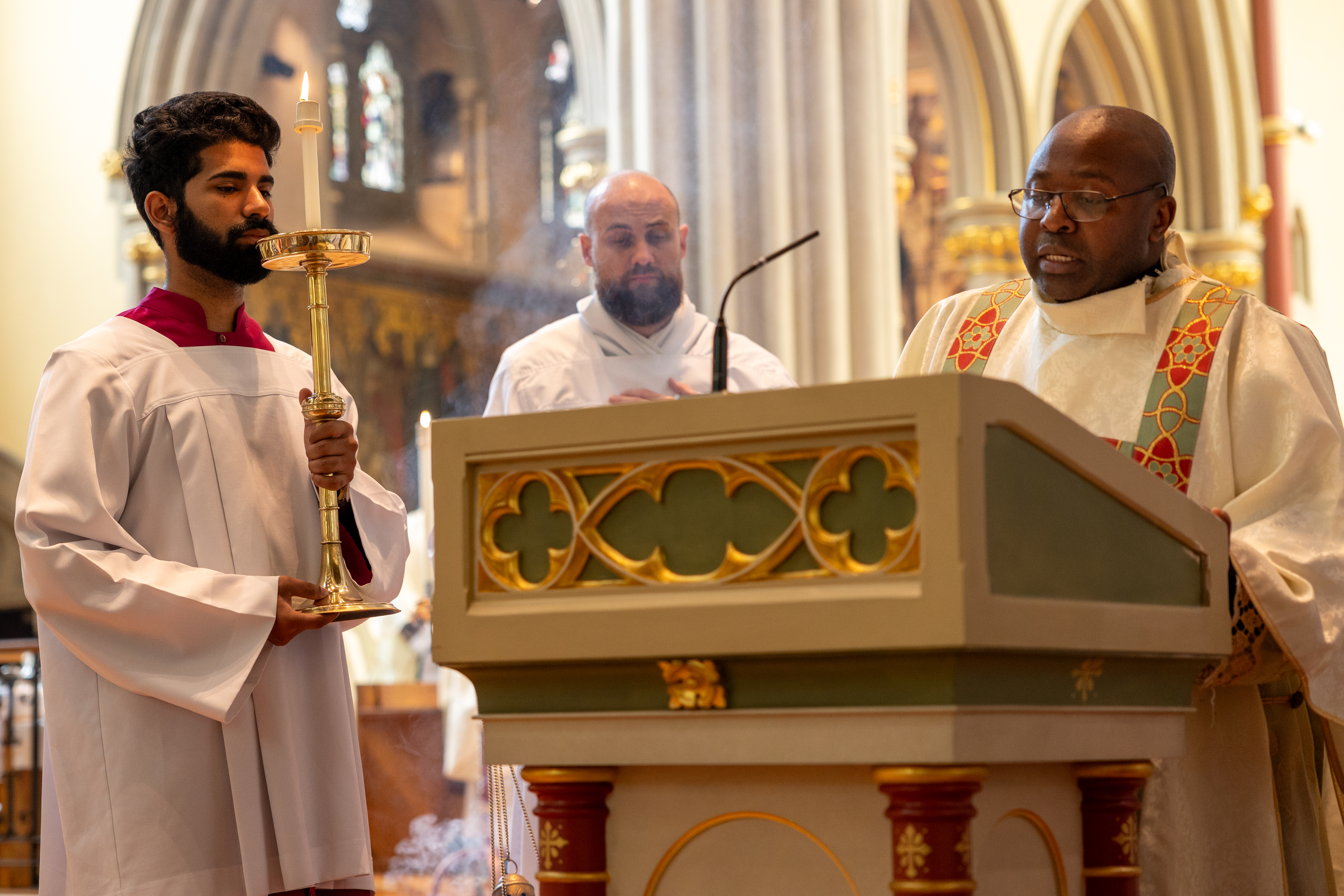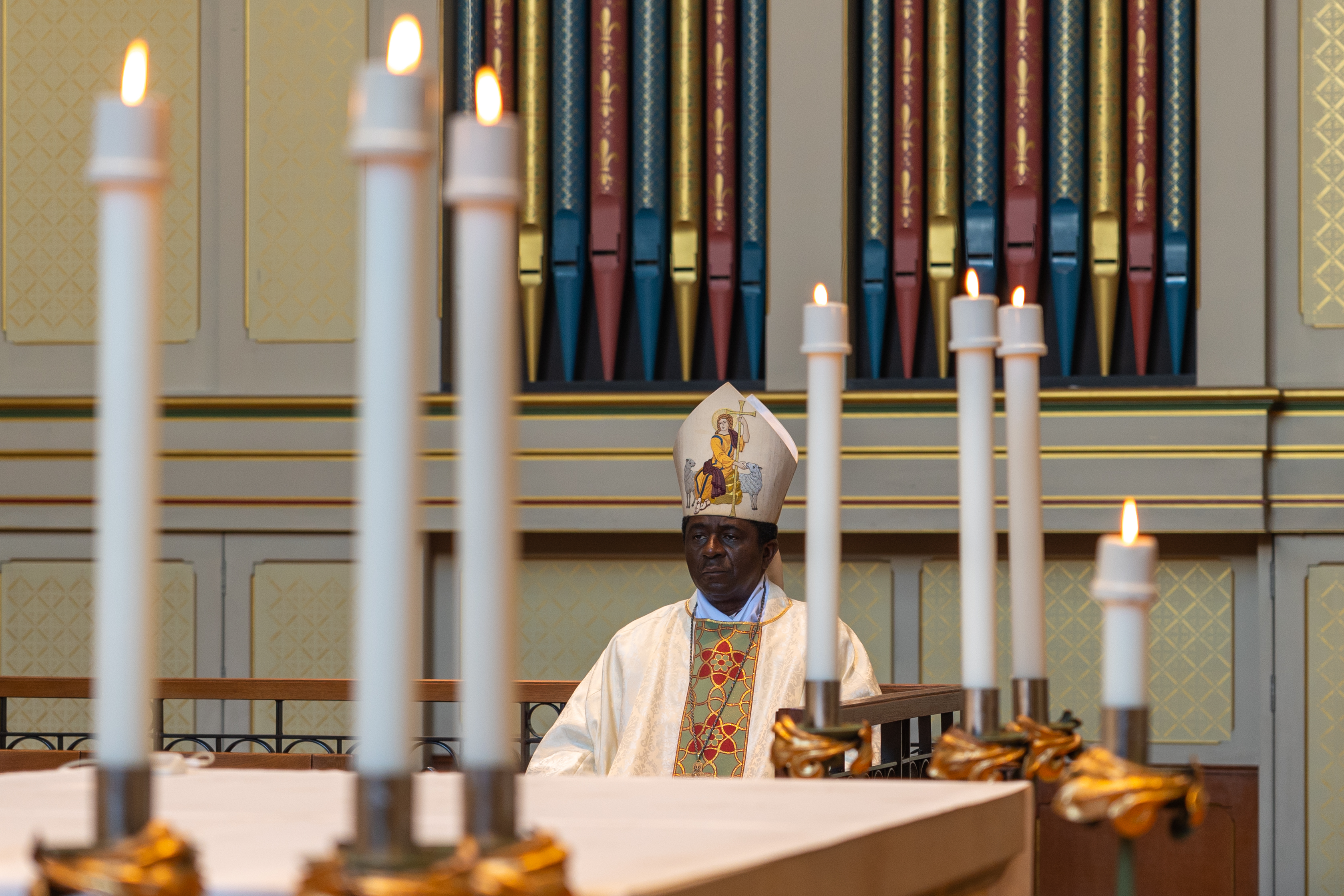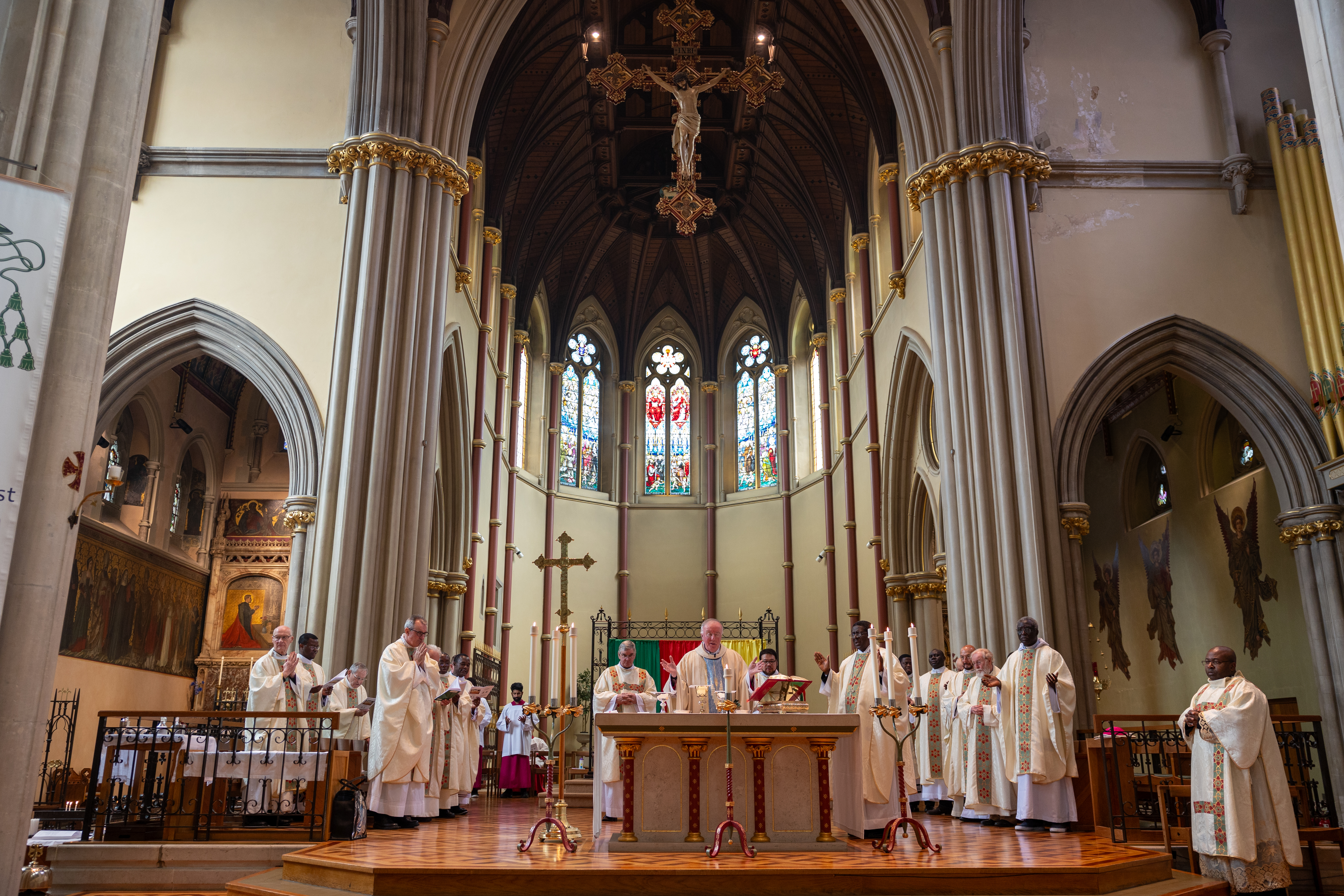 On Saturday, Bishop Philip welcomed Archbishop Andrew Nkea of Bamenda and Fr Bernardine Nsom to celebrate the Golden Jubilee Link between the Diocese of Portsmouth and the Archdiocese of Bamenda. Father Ron Hishon and Father Peter Codd attended the celebrations. They were the first missionary priests from Portsmouth who went out to Bamenda in the 1970's to spread the Gospel along with Father Frank Isherwood (RIP). Many Cameroonians from across the Diocese joined in the joyful and colourful celebration of singing, dancing, drumming whilst enjoying its delicious food.