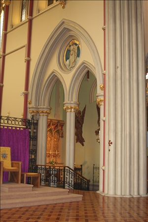 Looking across the Sanctuary to the Blessed Sacrament Chapel